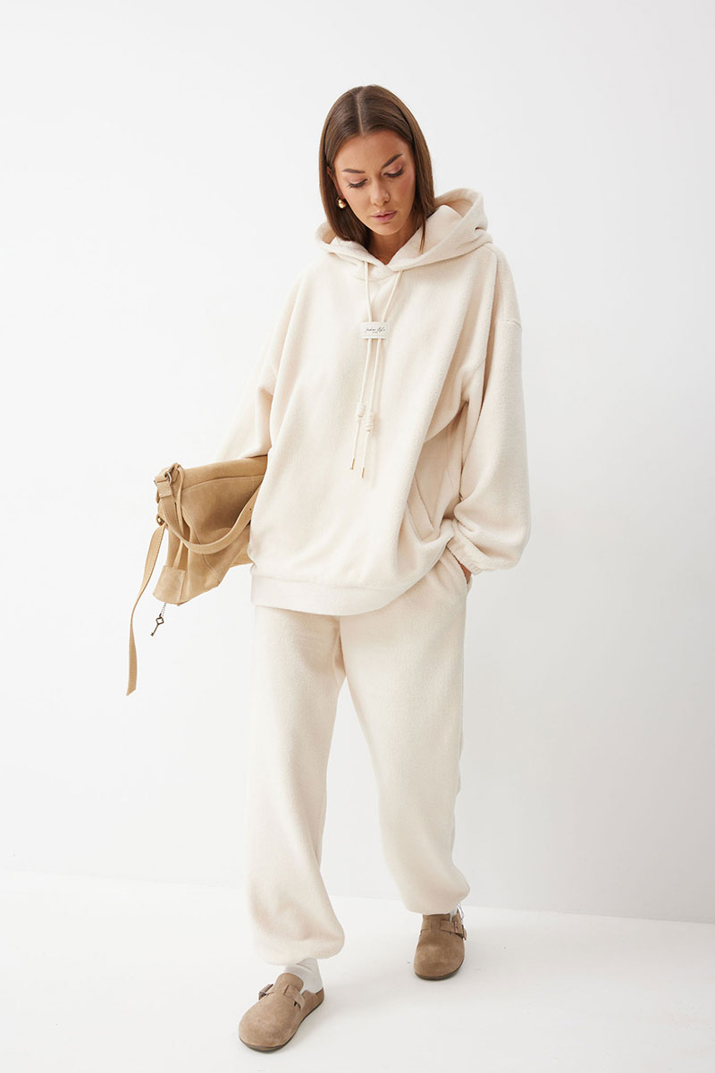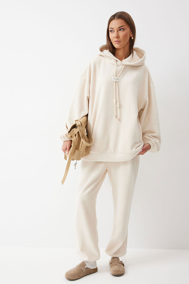 Джемпер прямого силуэта из комфортного трикотажного полотна. Горловина обработана капюшоном. Рукав со спущенной линией плеча, по низу на резинке. По низу джемпера притачной пояс. По переду декоративная нашивка и шнур.