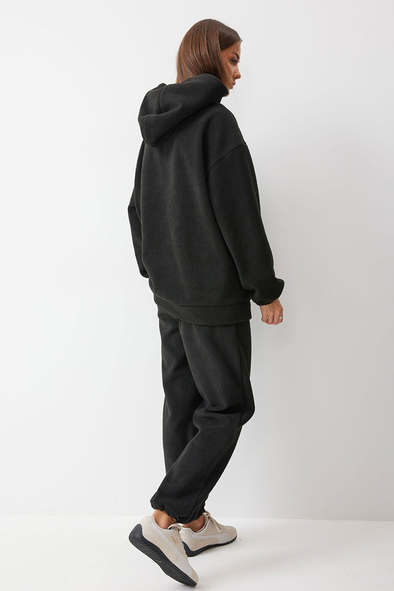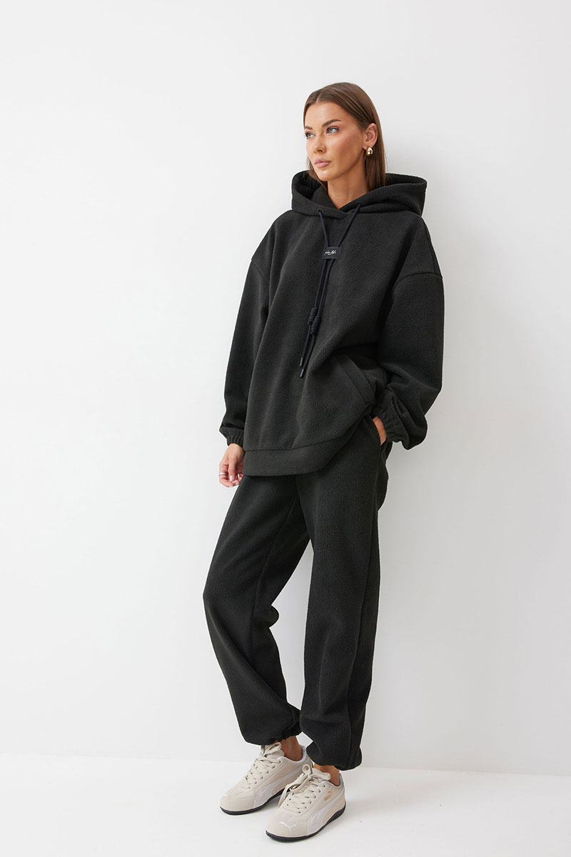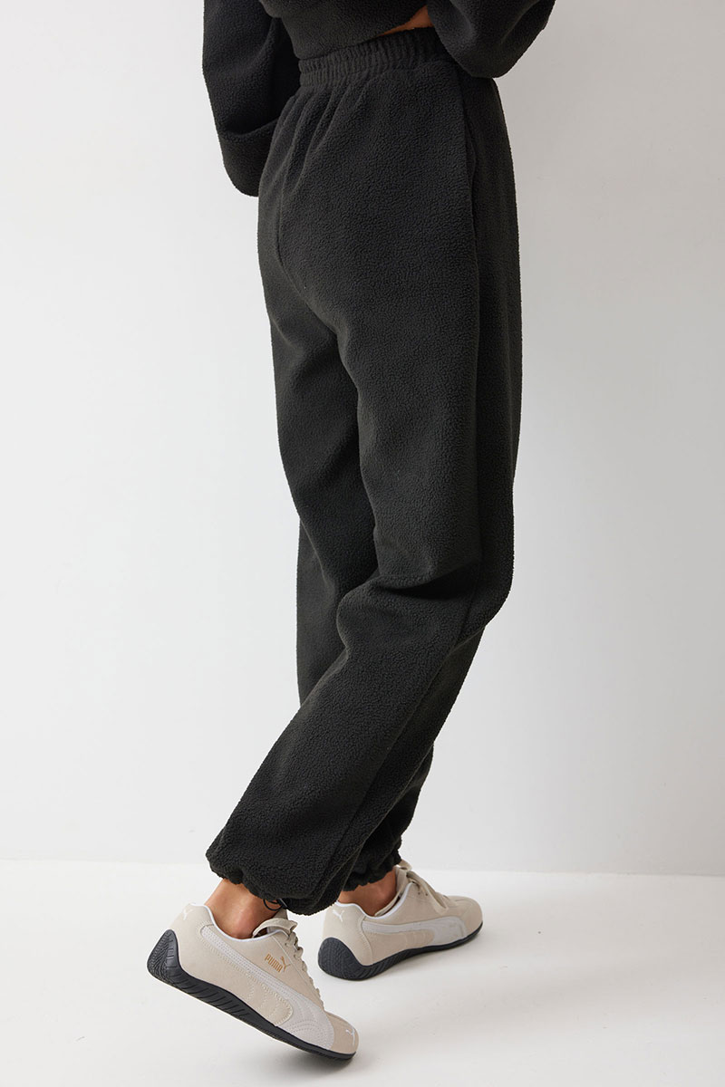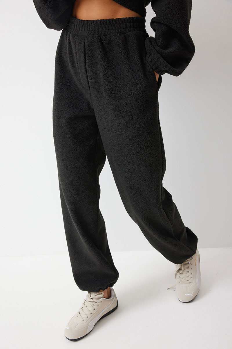 Брюки прямого силуэта из комфортного трикотажного полотна. По верху брюк притачной пояс на резинке. На передних половинках брюк обработаны карманы. Ширина брюк по низу регулируется за счет эластичной тесьмы и фиксаторов.