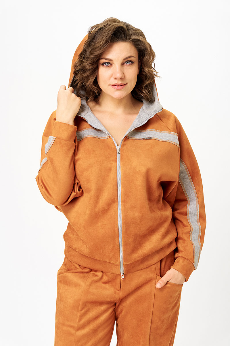Рукав реглан даёт свободу движения, а манжеты по низу изделия и рукавам формируют аккуратный, современный силуэт. Светлые декоративные вставки добавляют графики и делают модель узнаваемой.