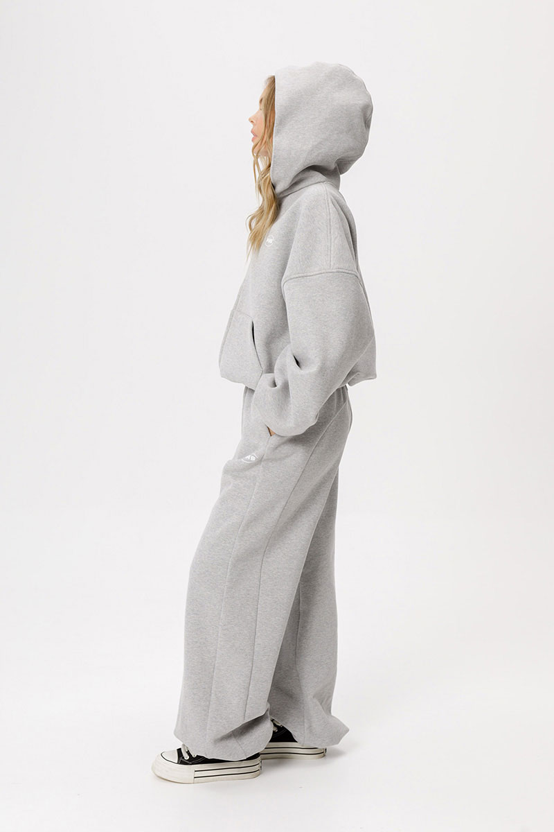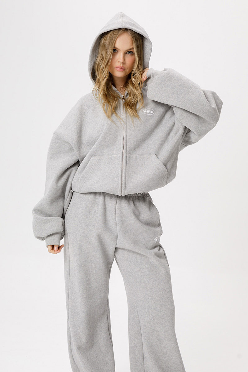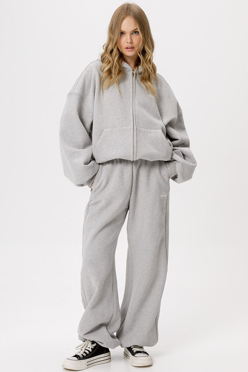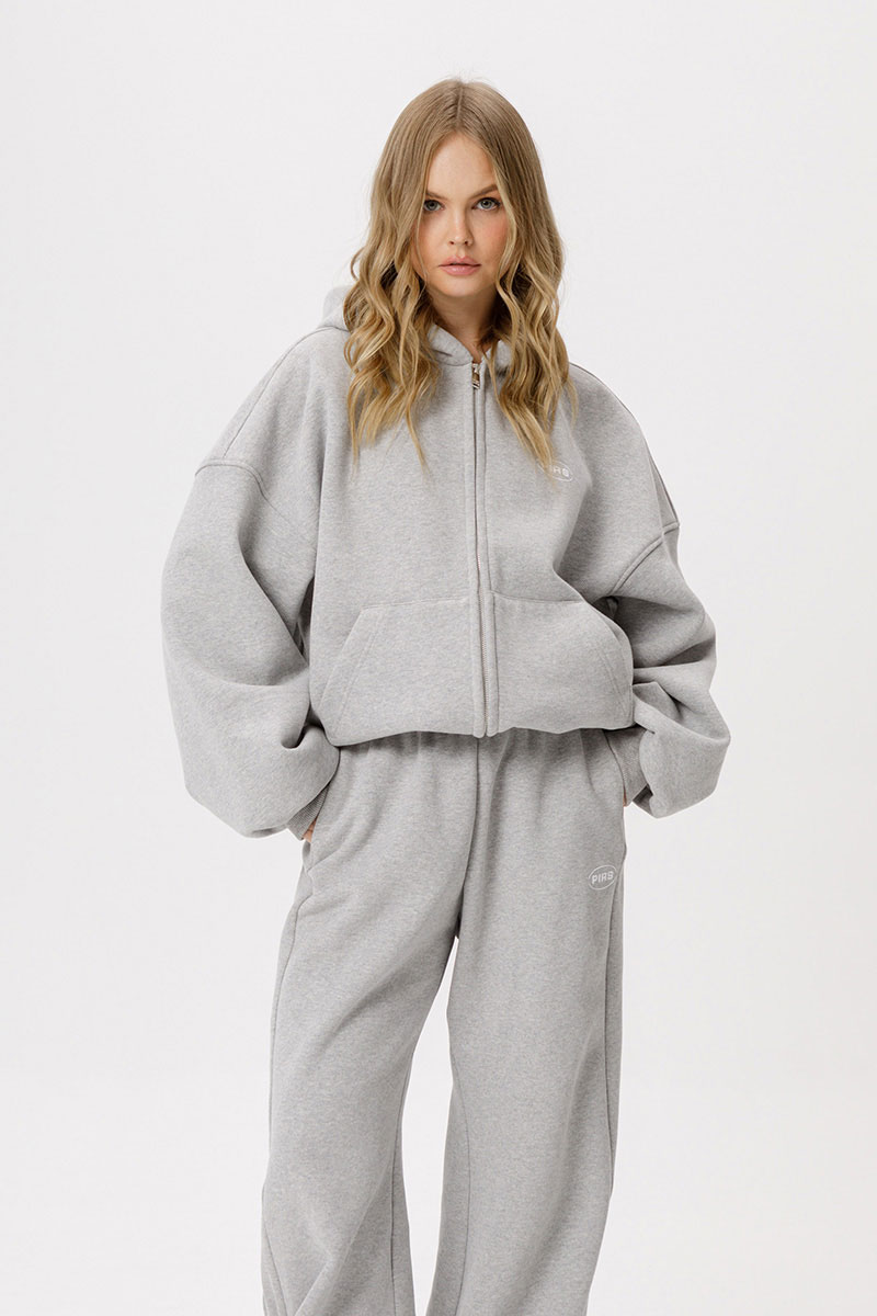 Спортивный костюм-двойка из оверсайз зип-худи и свободных брюк из трехнитки с начесом.