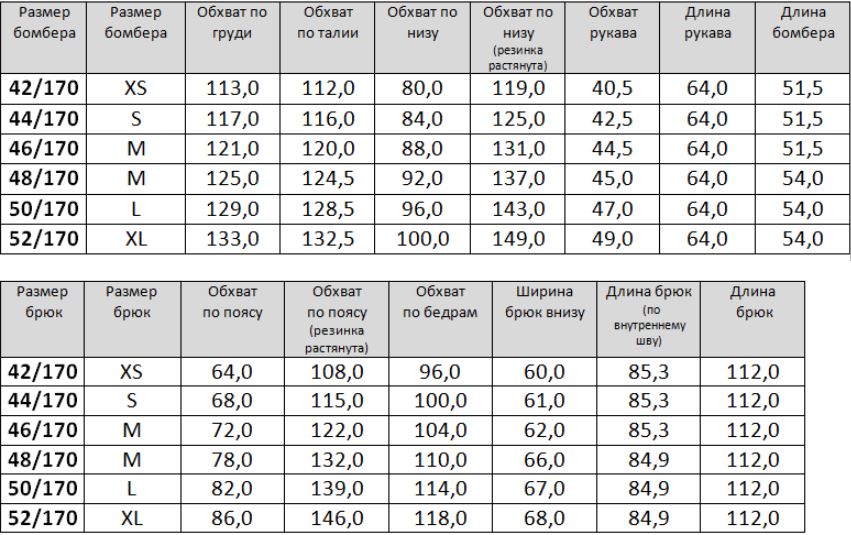 Размеры Обхват бюста (см) Обхват талии (см) Обхват бедер (см)