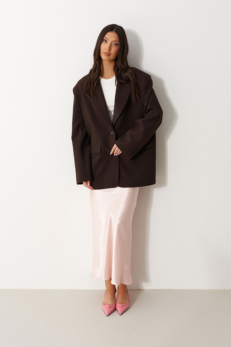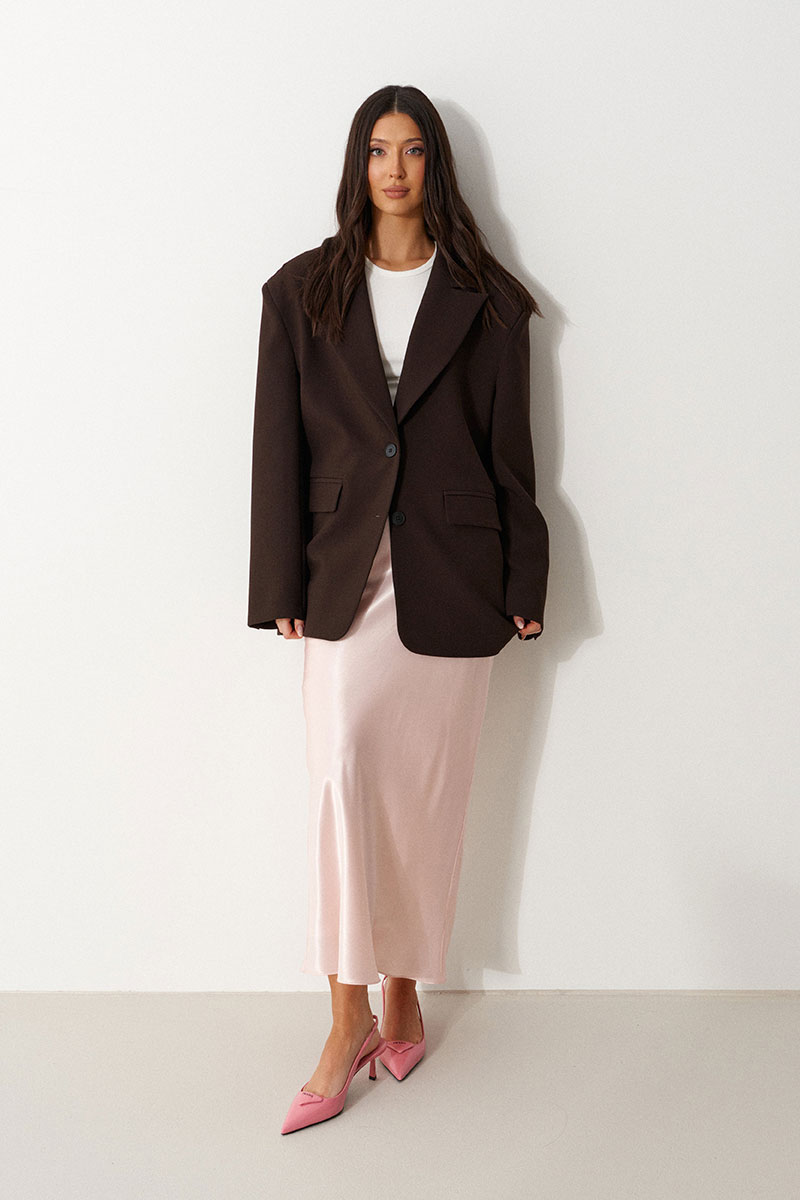 Юбка женская, длинная, покроена по косой. Выполнена из тонкого атласа в розовом оттенке. Характеристика: юбка на подкладке. Пояс цельнокроеный присборен на резинку. Низ обработан в подгибку с открытым срезом.