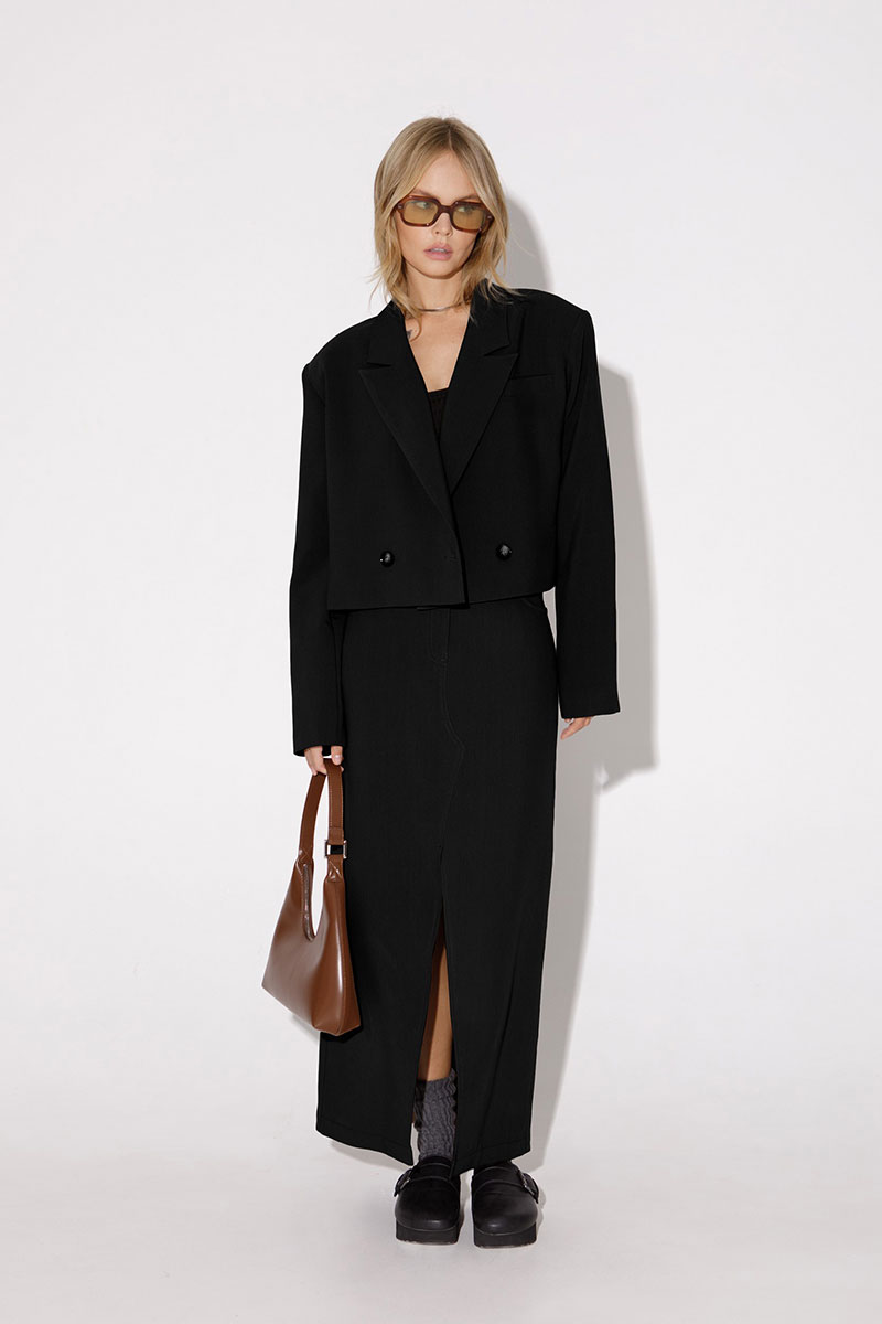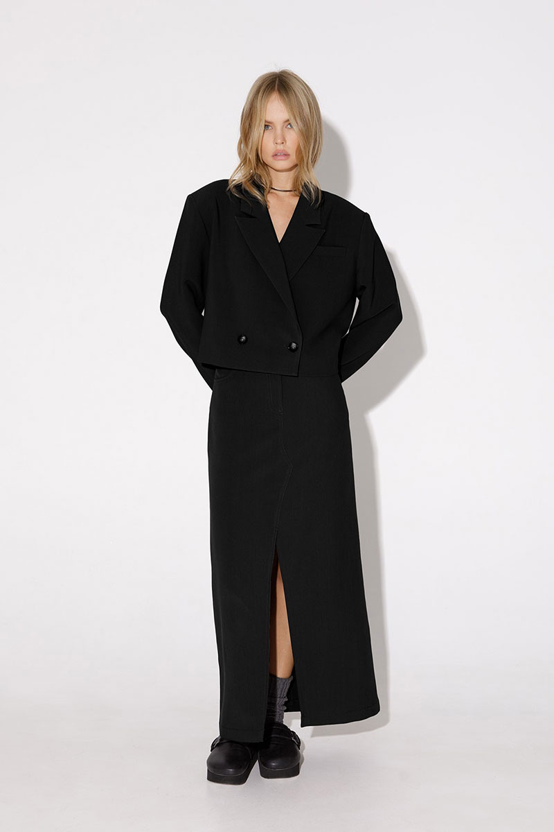 Асимметричная миди-юбка с разрезом. Детали: юбка асимметричного кроя с высоким разрезом по переду, притачной пояс со шлевками, застежка на молнию и пуговицу, боковые карманы.