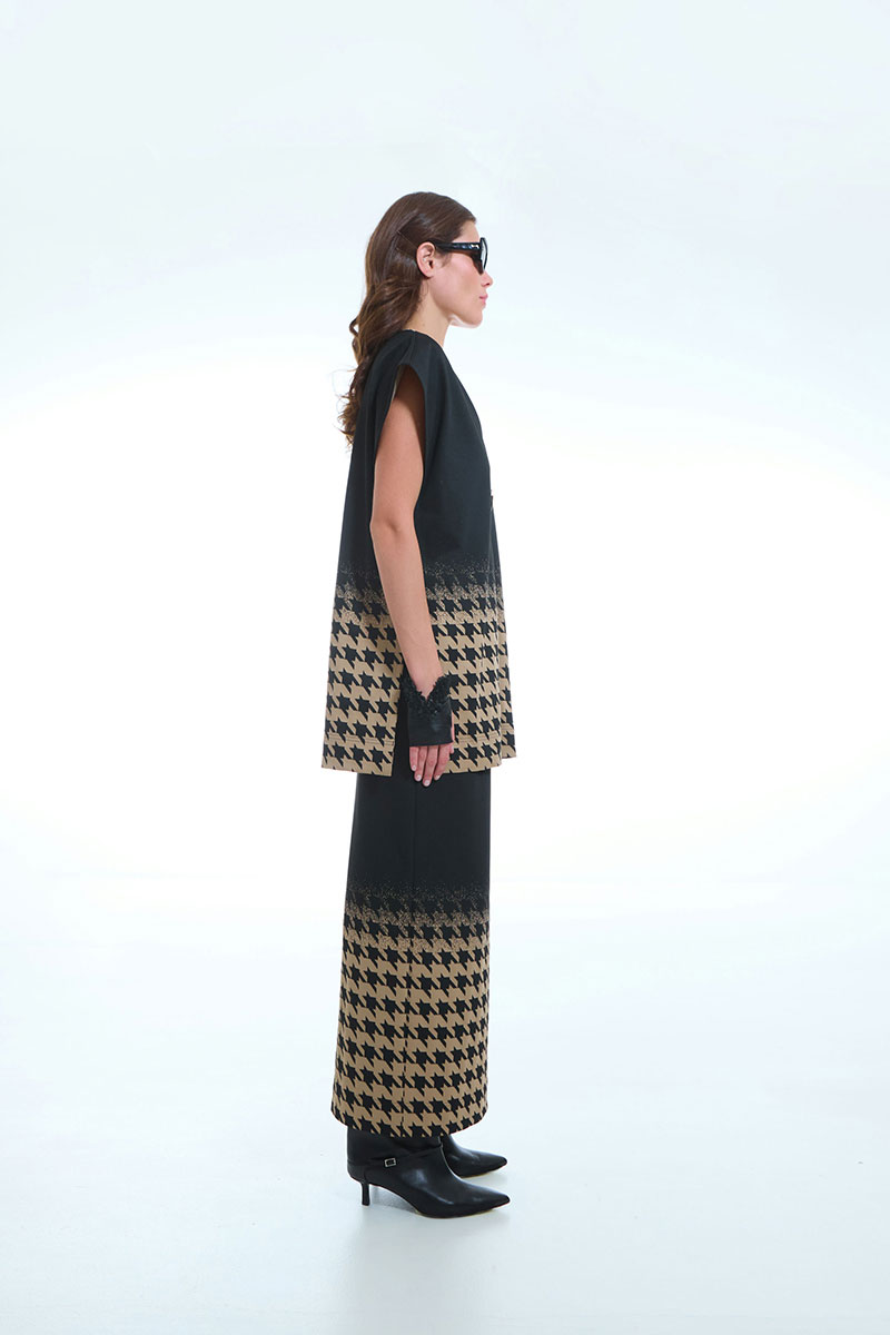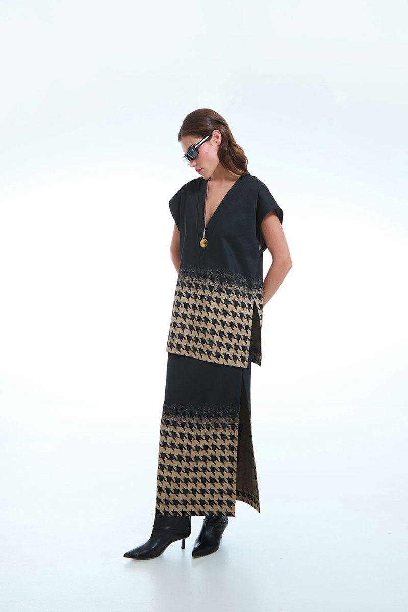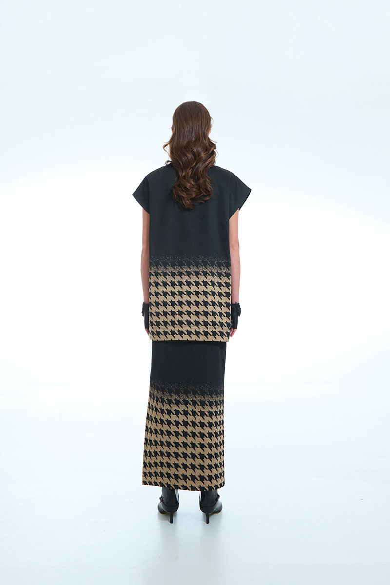 Юбка женская, прямого силуэта из трикотажного полотна, длиной миди, по поясу резинка. Разрез в левом боковом шве.