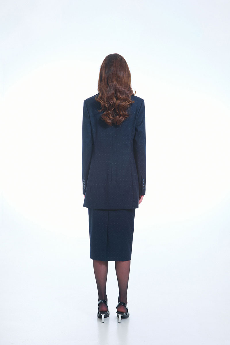 Юбка женская зауженная к низу на подкладке. В среднем шве спинки застежка – потайная молния, в нижней части спинки отлетная шлица.