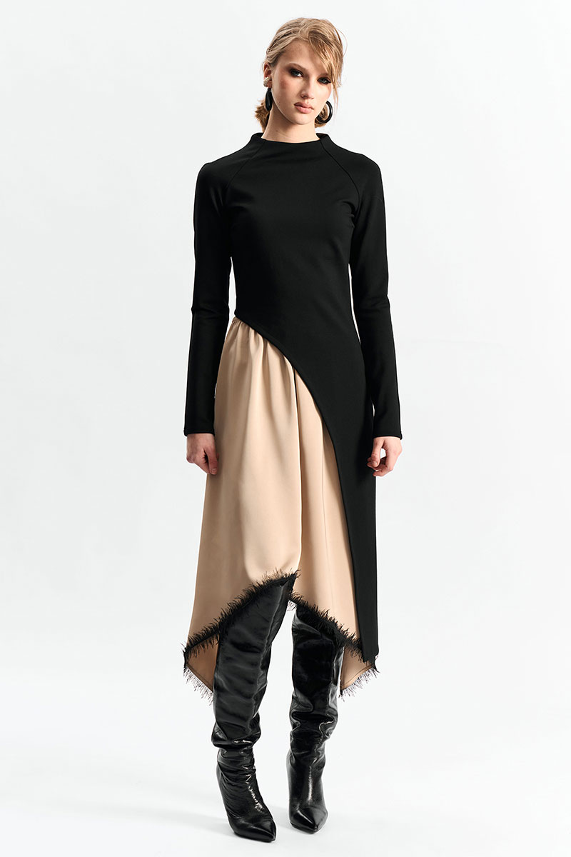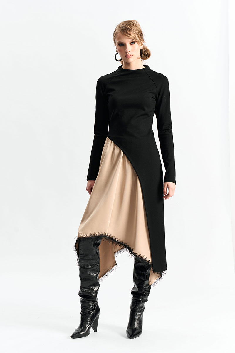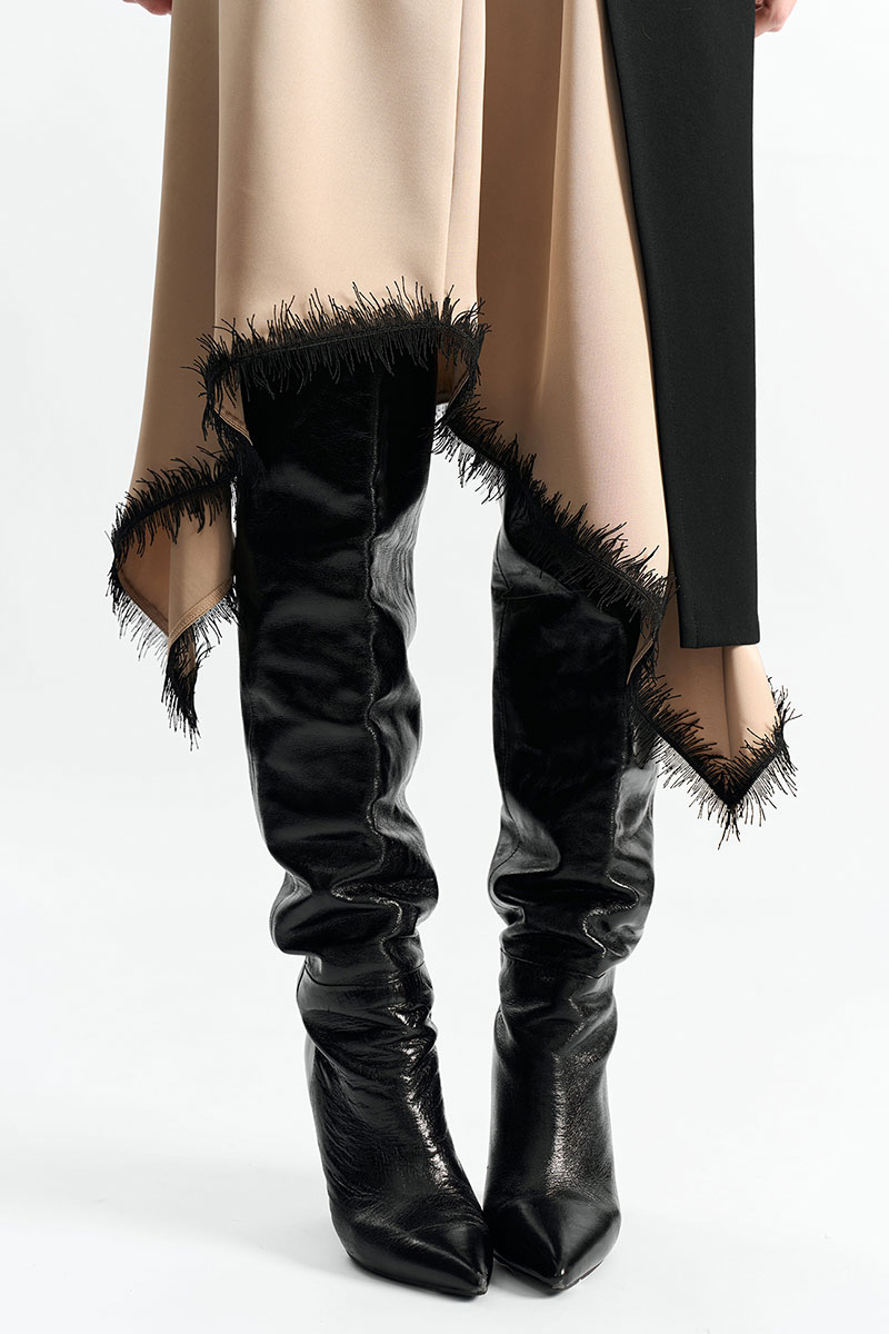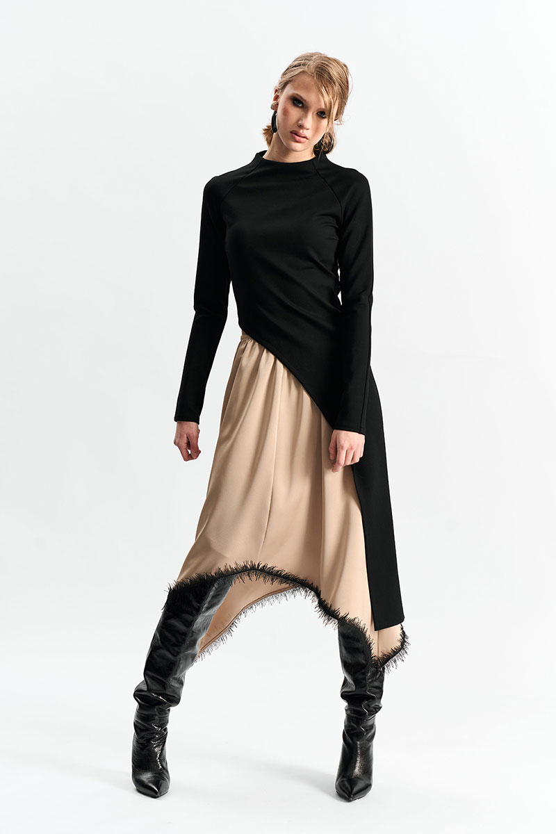 Юбка с резинкой по талии А-силуэта и фигурной линией низа отделанной французским кружевом.