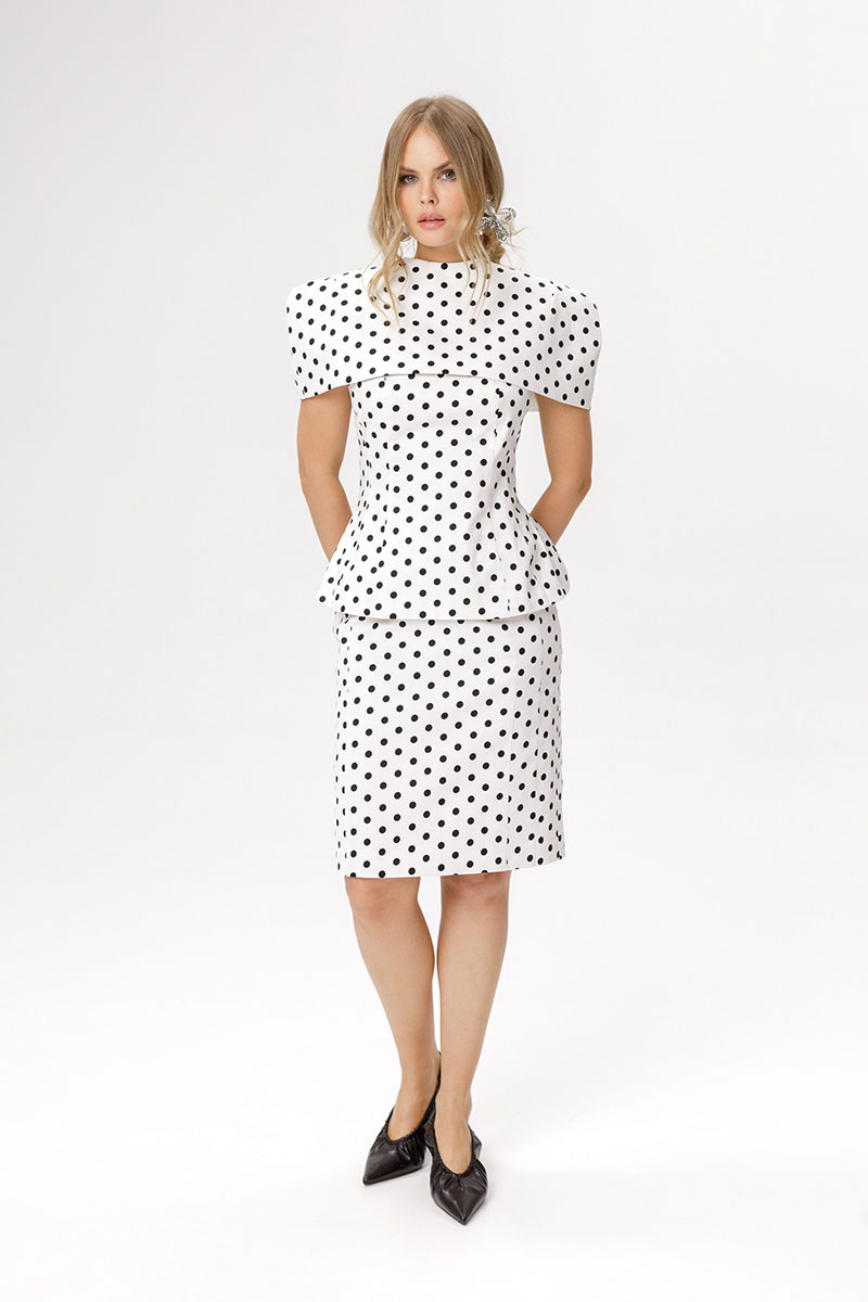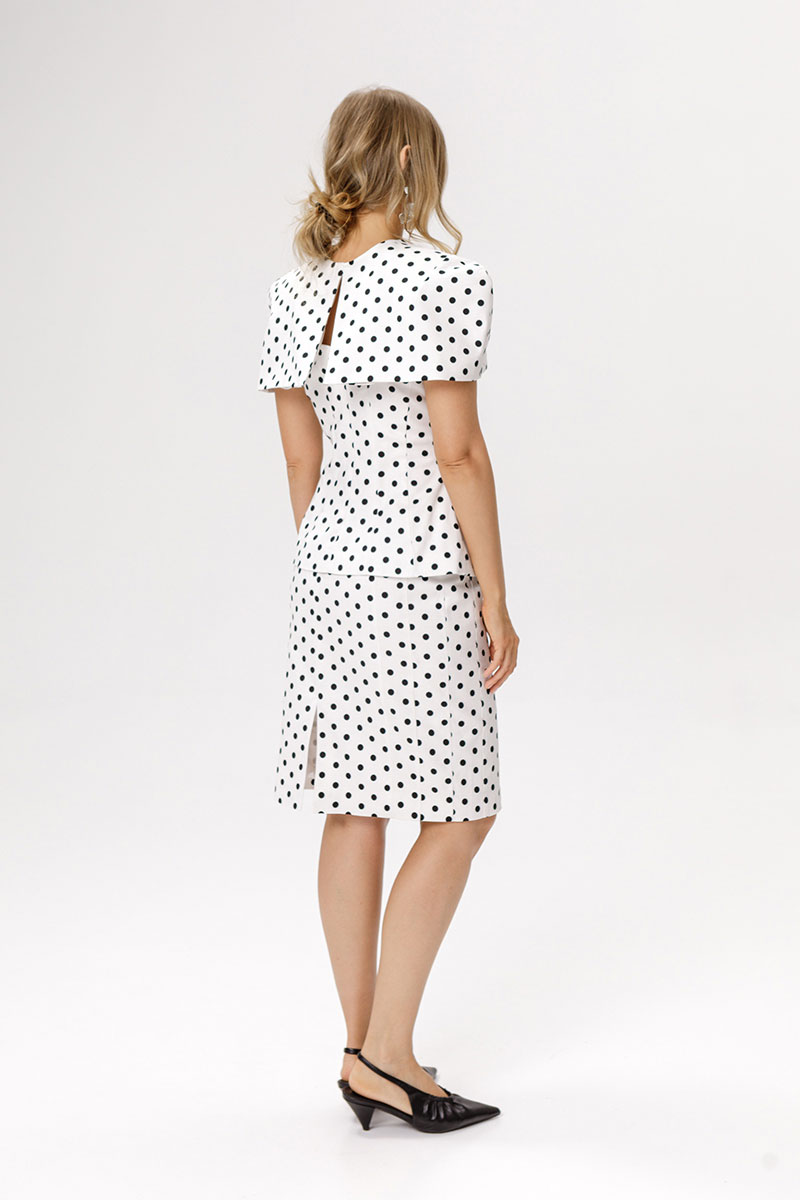 Прямая юбка выше колена с рельефами и разрезом (приобрести топ с фото можно по арт. 6643, приобрести кейп с фото можно по арт. 6640).