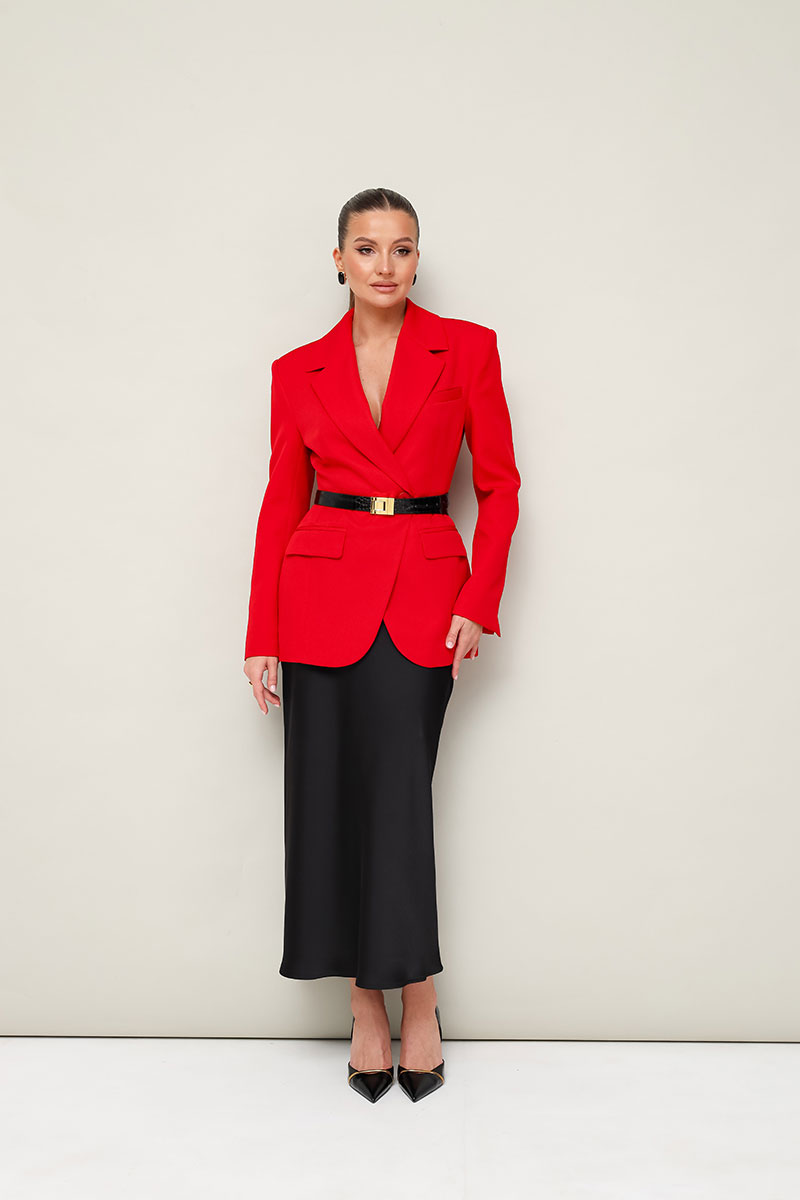 Юбка с кроем «по косой» в длине миди, пояс на обтачке, застежка в боковом шве на потайную тесьму молнию.