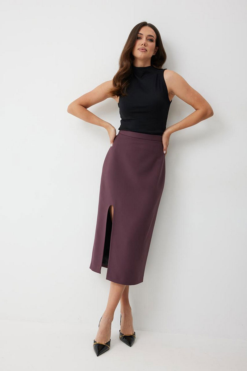 Женская юбка полуприлегающего силуэта длины миди, которая идеально подходит для создания как делового, так и вечернего образа. Юбка выполнена из качественной костюмной ткани и посажена на поливискозную подкладку, обеспечивающую безупречную посадку. Притачной пояс идеально фиксирует модель, подчеркивая талию. Главная изюминка модели — это изысканный округлый вырез длиной 40 см, расположенный с правой стороны переднего полотнища. Юбка застегивается на потайную молнию в среднем шве спинки/ Сочетайте эту юбку с элегантным жакетом М665 для статусного образа или с шелковым топом для вечернего выхода. Будьте в центре внимания, сохраняя безупречный стиль.
