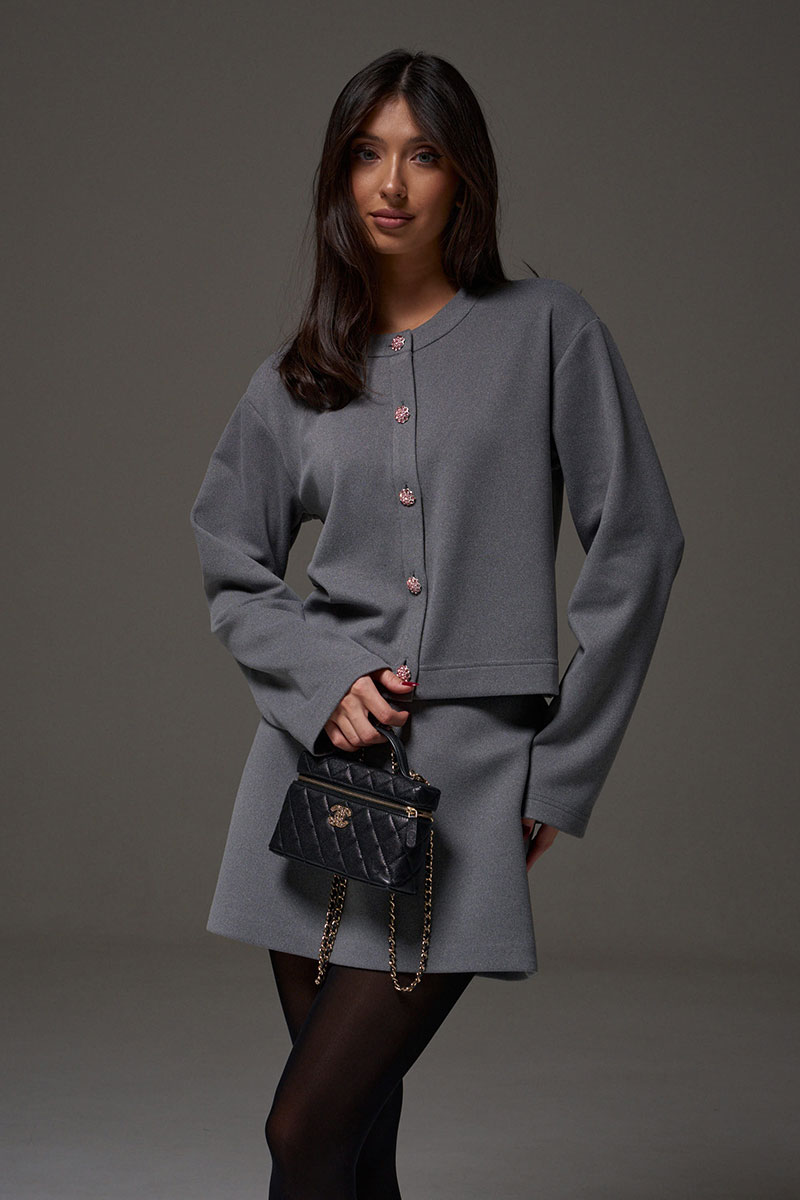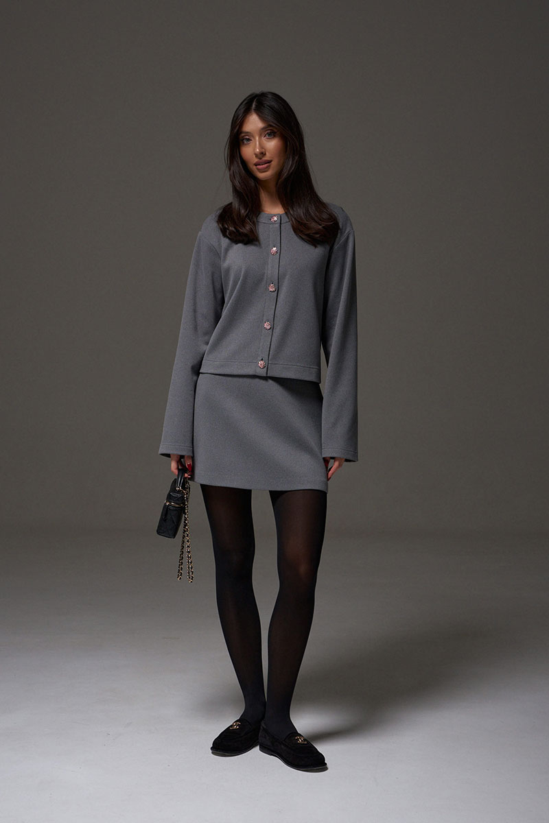Юбка-мини. Выполнена из мягкого трикотажного полотна. Трапецевидный крой. Пояс стабильный. Брендированная подкладка. Застежка потайная молния в боковом шве.