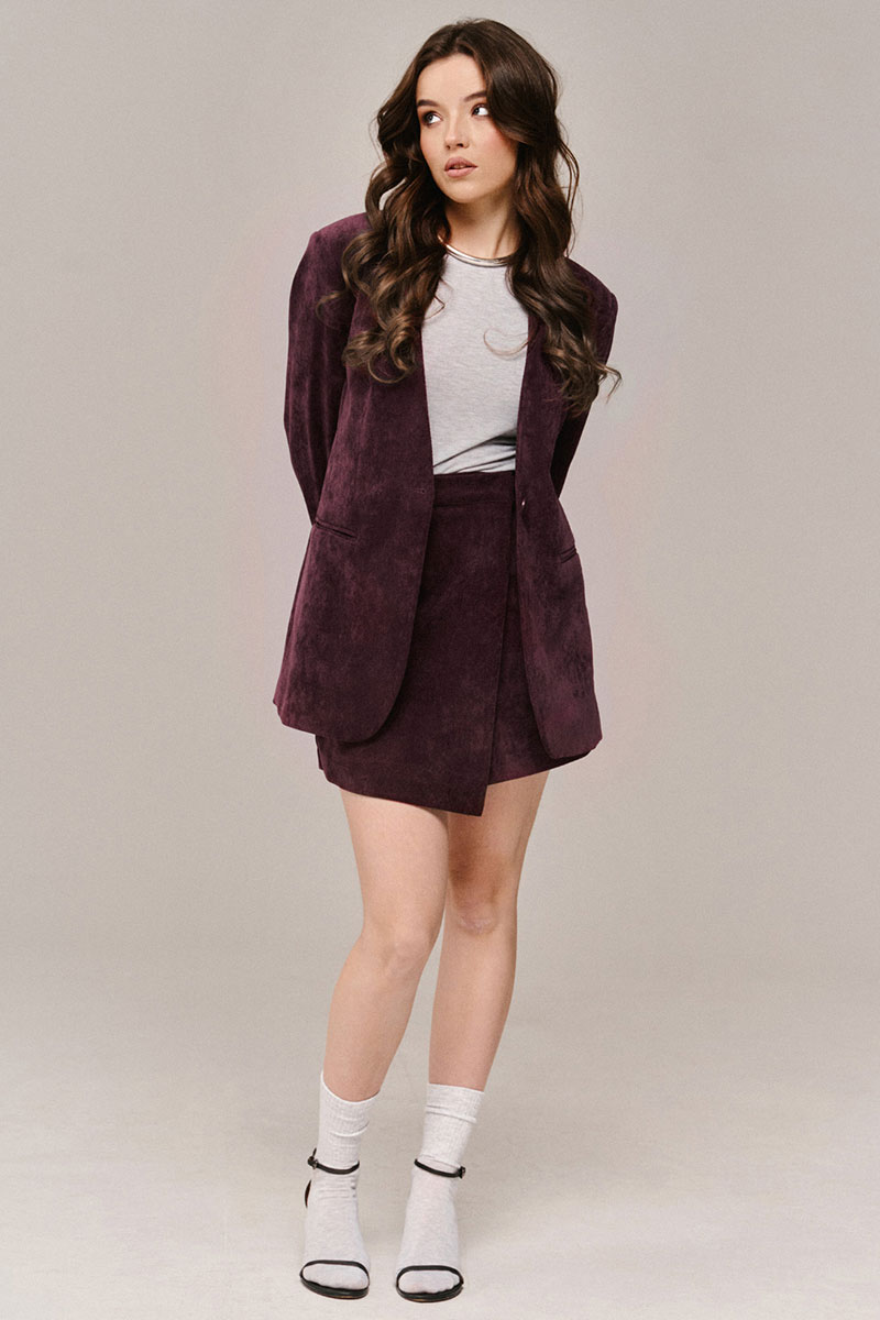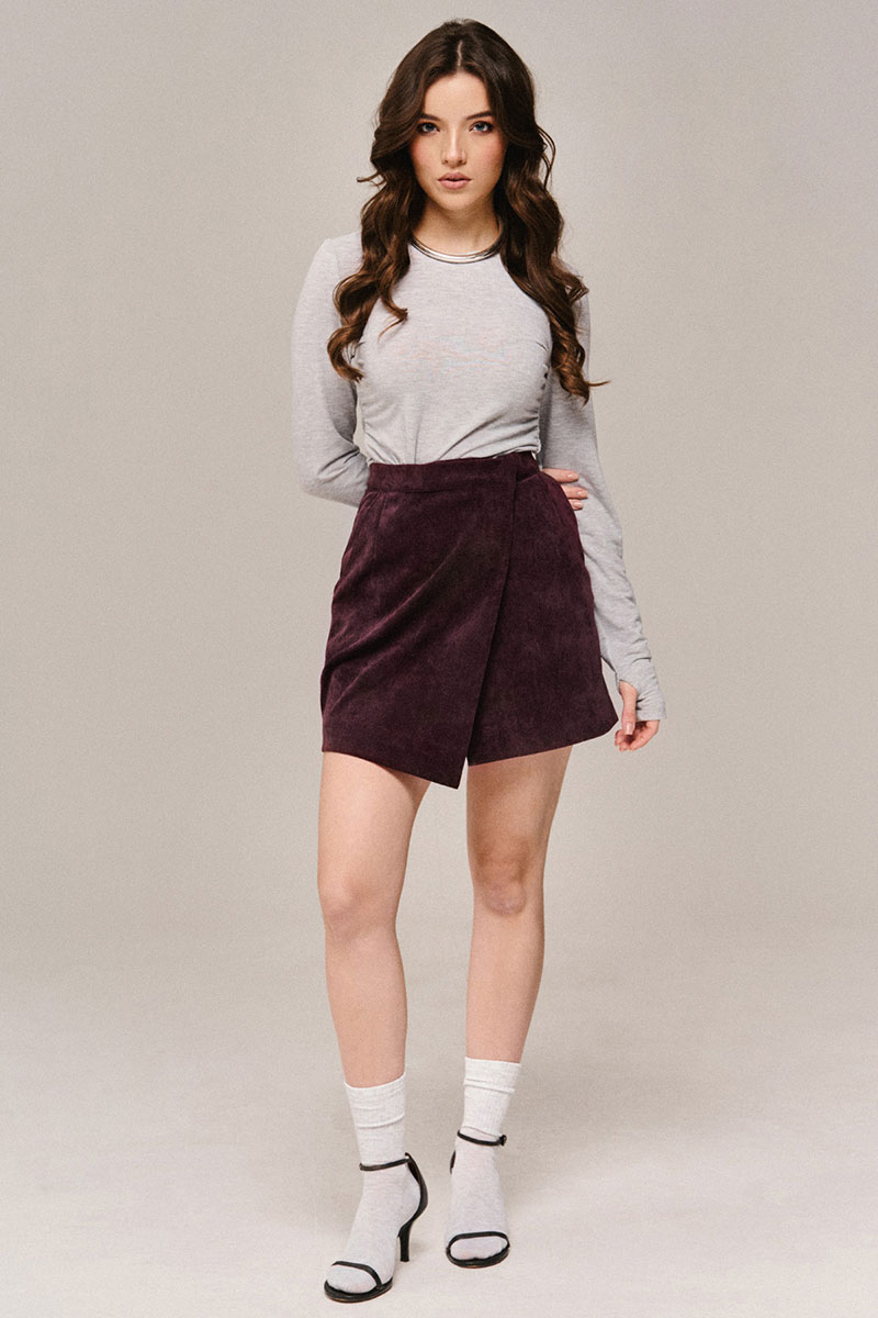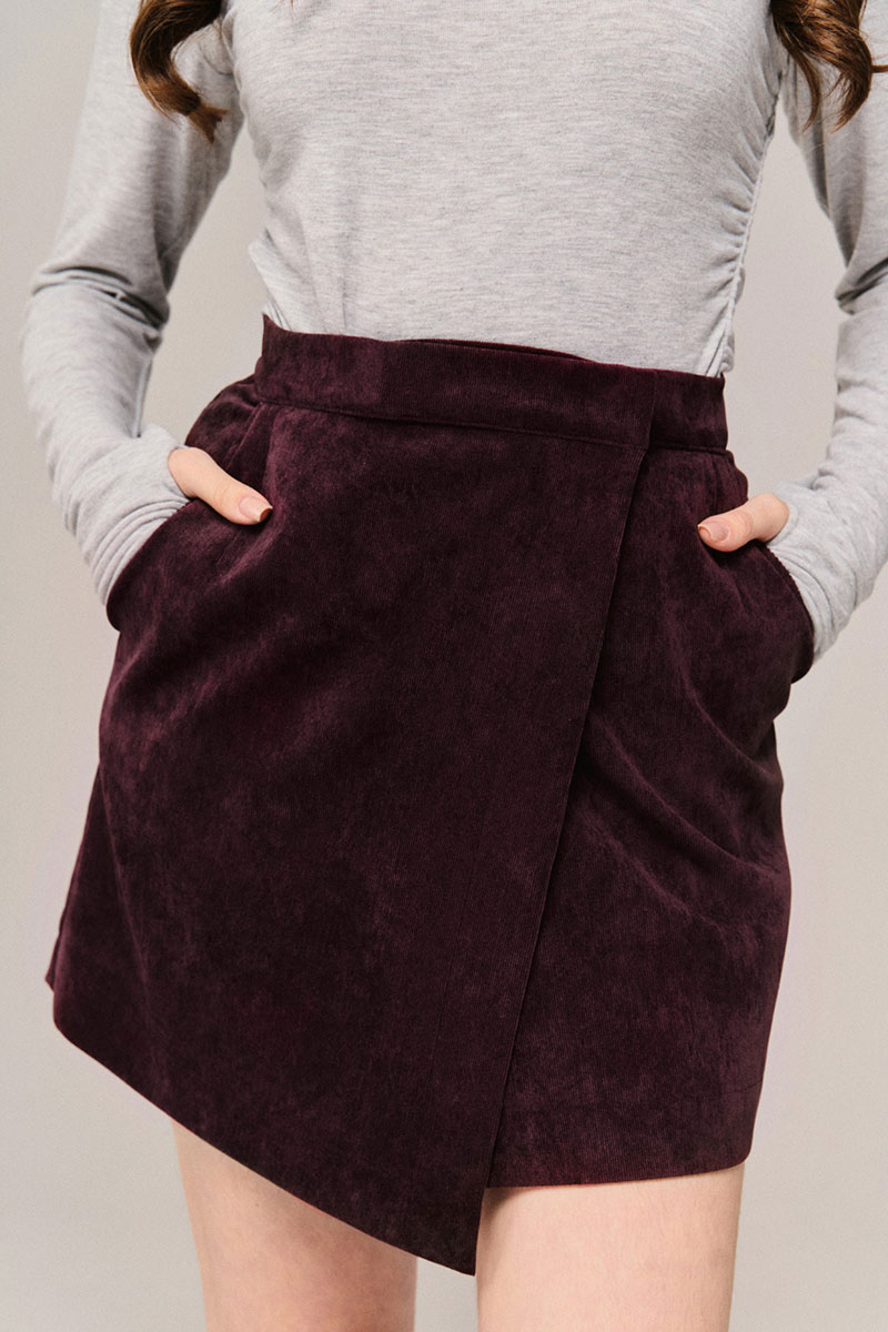Юбка молодежная из ткани микровельвет на подкладке с запахом и застежкой на 2 кнопки на поясе.