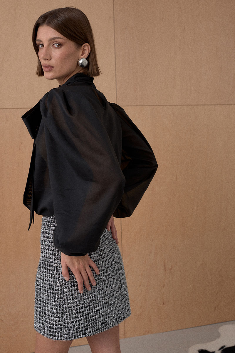 Юбка из жаккардового полотна с добавлением люрексной нити. Дизайн ткани выполнен по индивидуальному заказу нашего бренда на европейских текстильных фабриках.