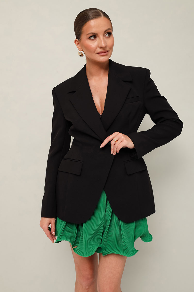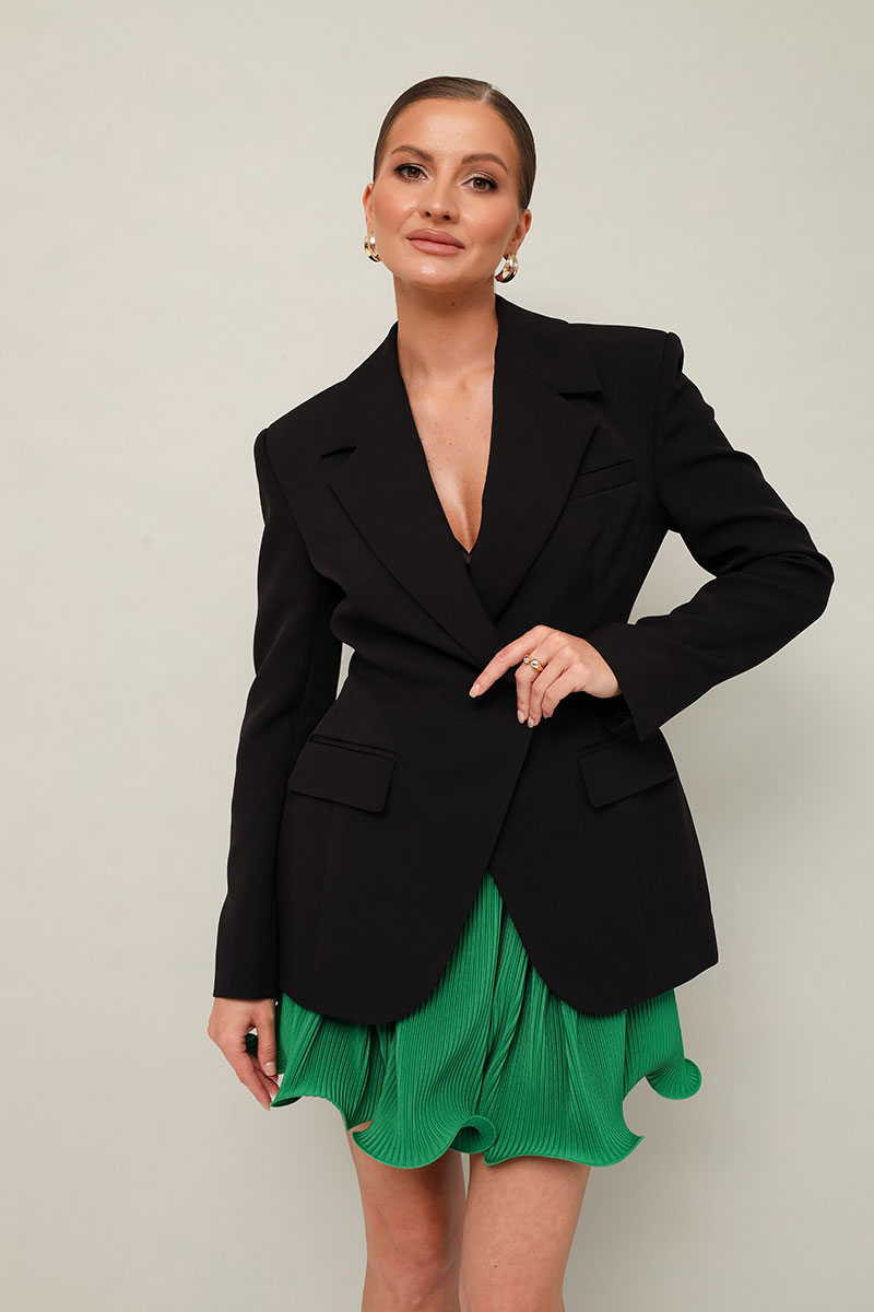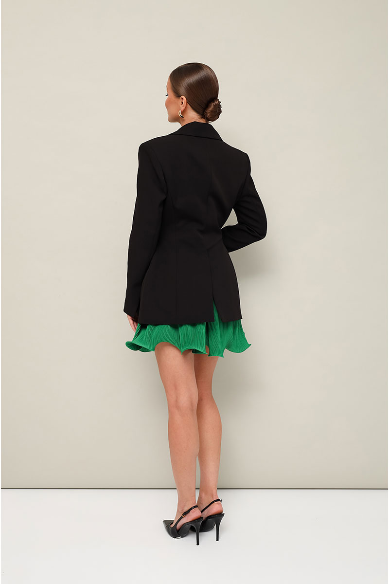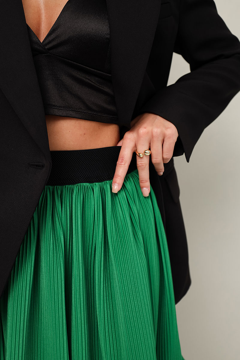 Юбка в длине мини, выполнена из ткани с мелкой плиссировкой. Притачной пояс на резинке. Низ юбки обработан с использованием лески для создания эффектного края.