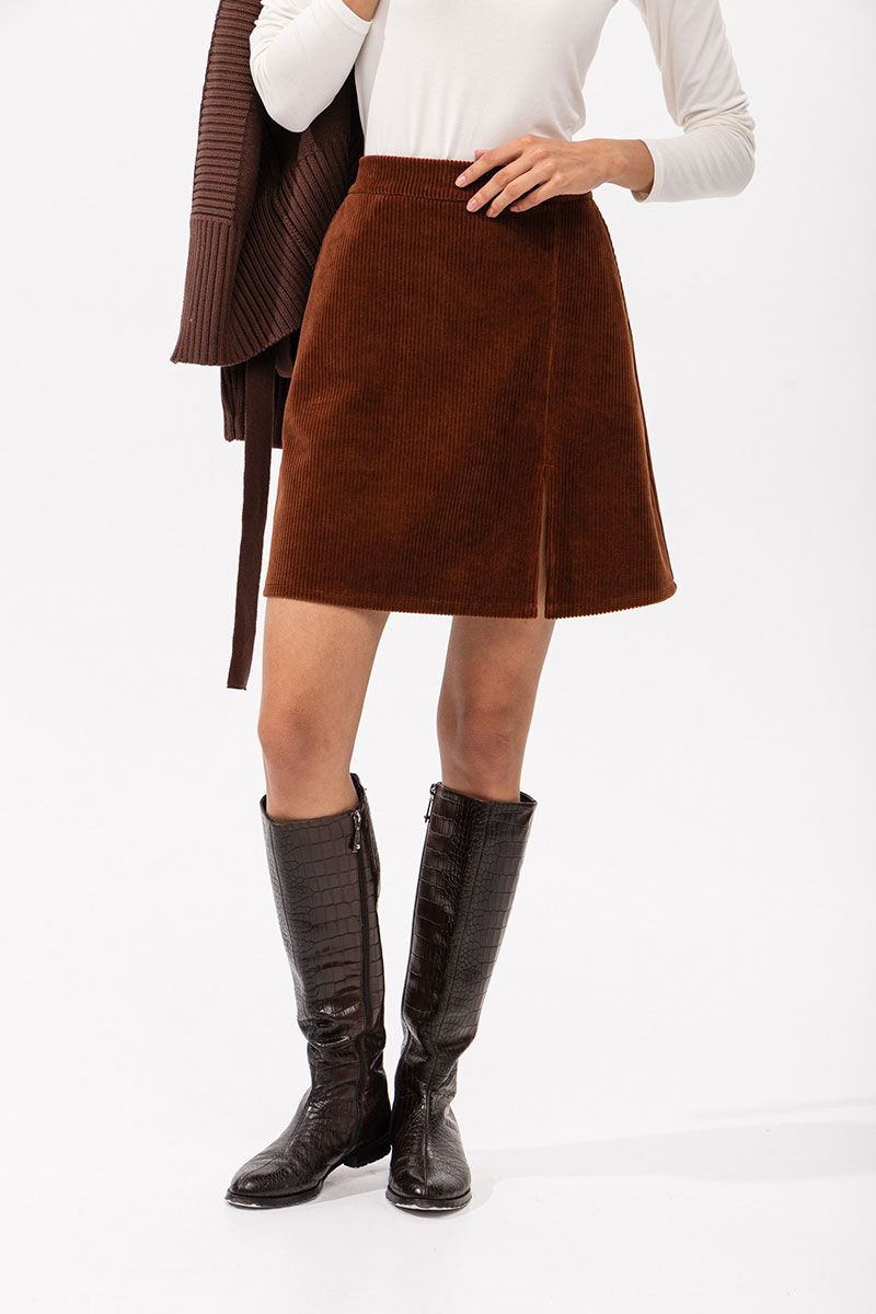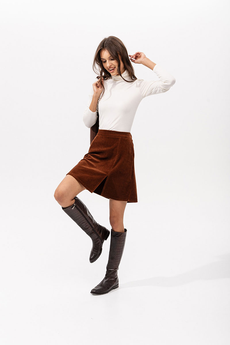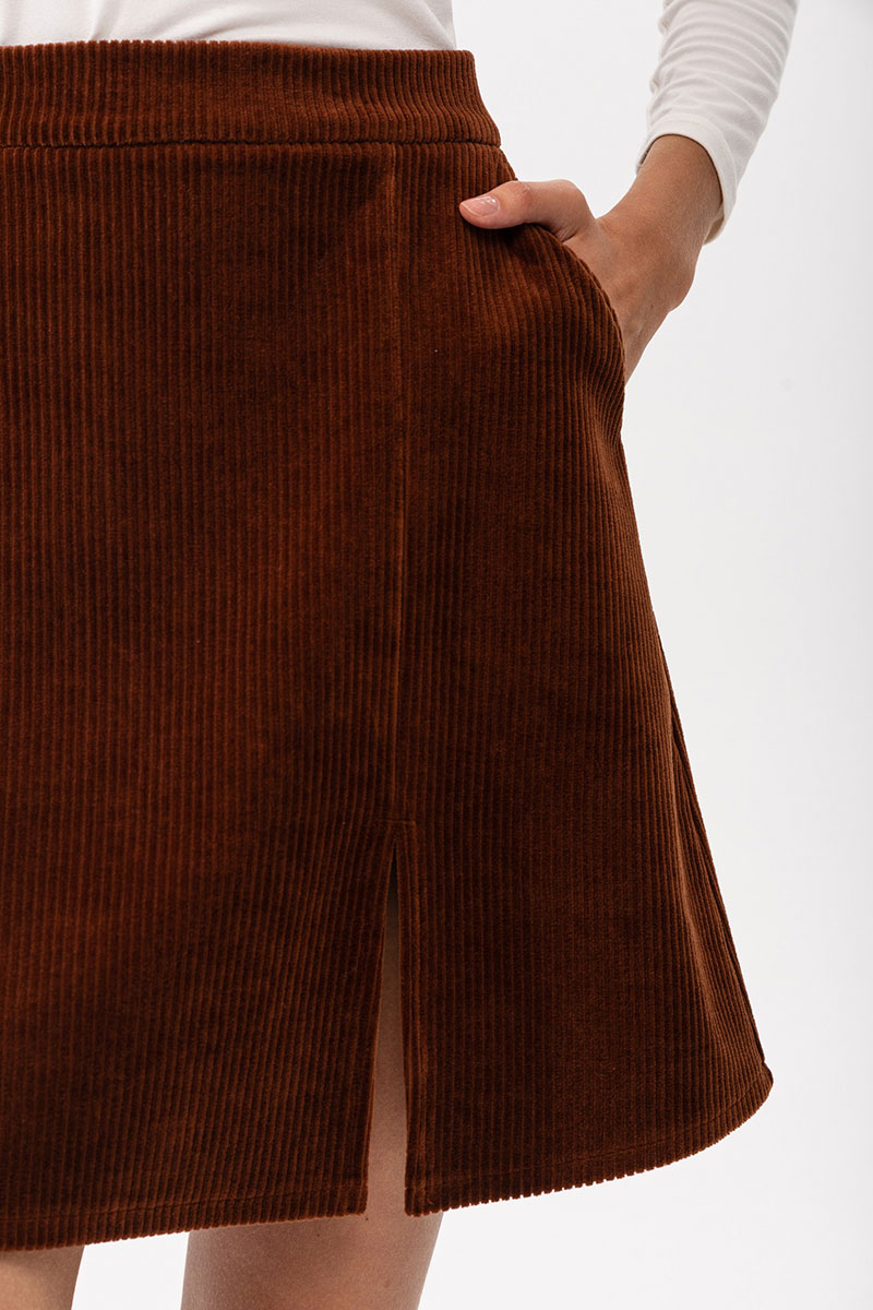 Эта стильная терракотовая юбка-обманка станет настоящей находкой для вашего гардероба! Изготовленная из плотного корда, она подчеркнёт вашу индивидуальность и добавит образу нотки элегантности и современности.