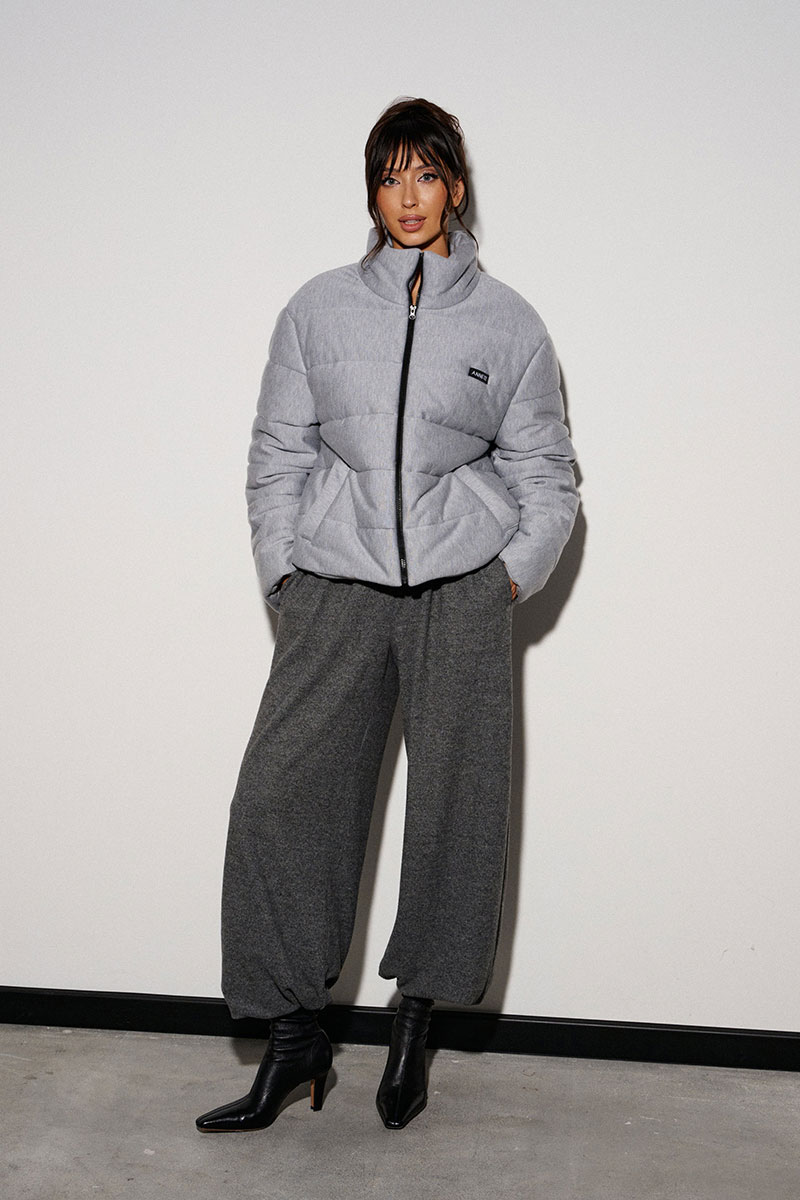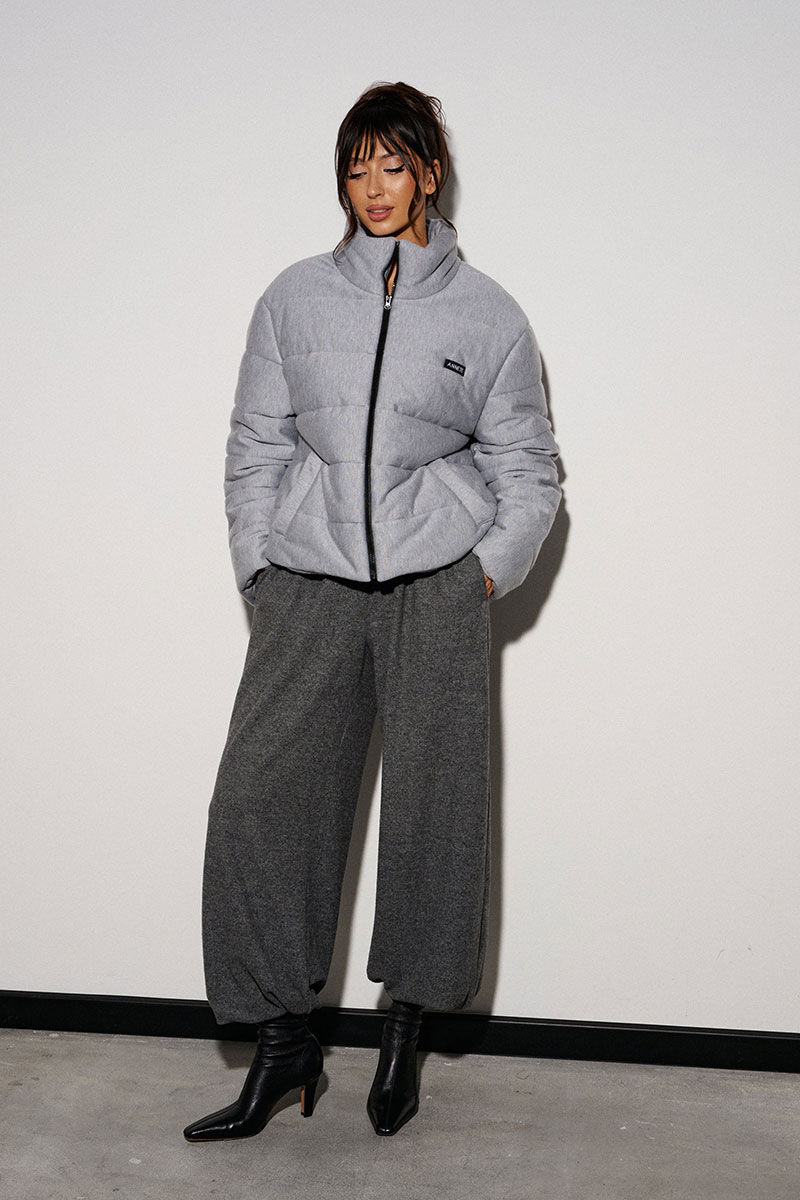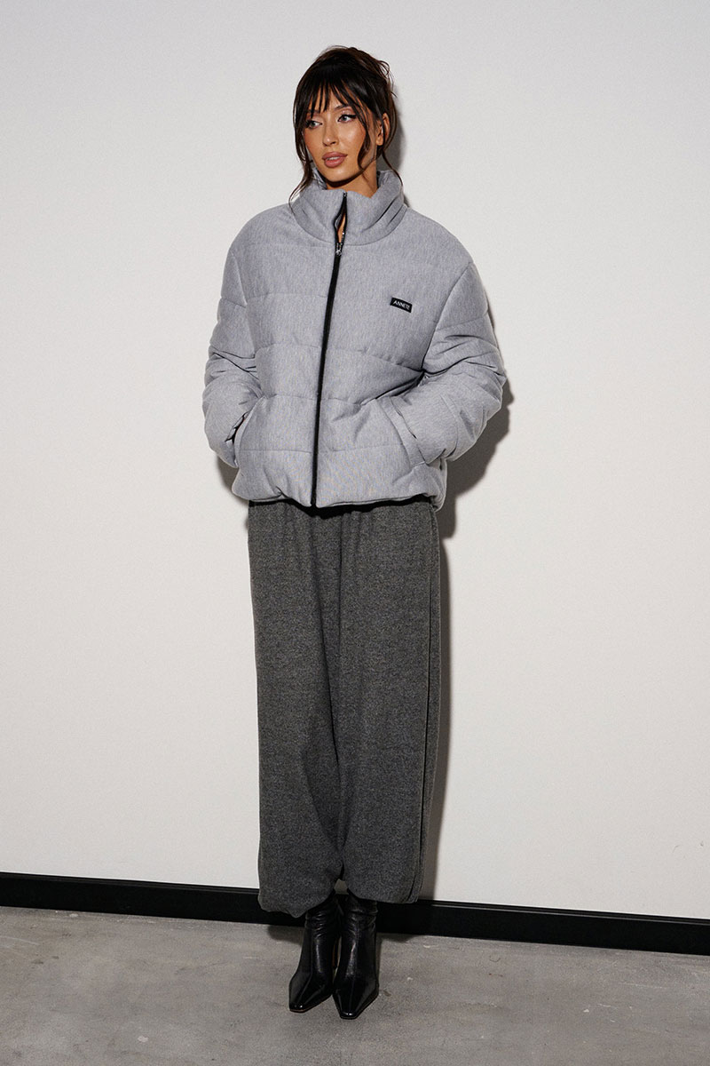 Куртка укороченная, утепленная, выполнена из трикотажного стегонного полотна. Характеристика: прямой крой, горловина стойка, брендированная подкладка на утеплении. Застежка центральная на молнии. Рукав спущен. По переду изделия функциональные карманы.