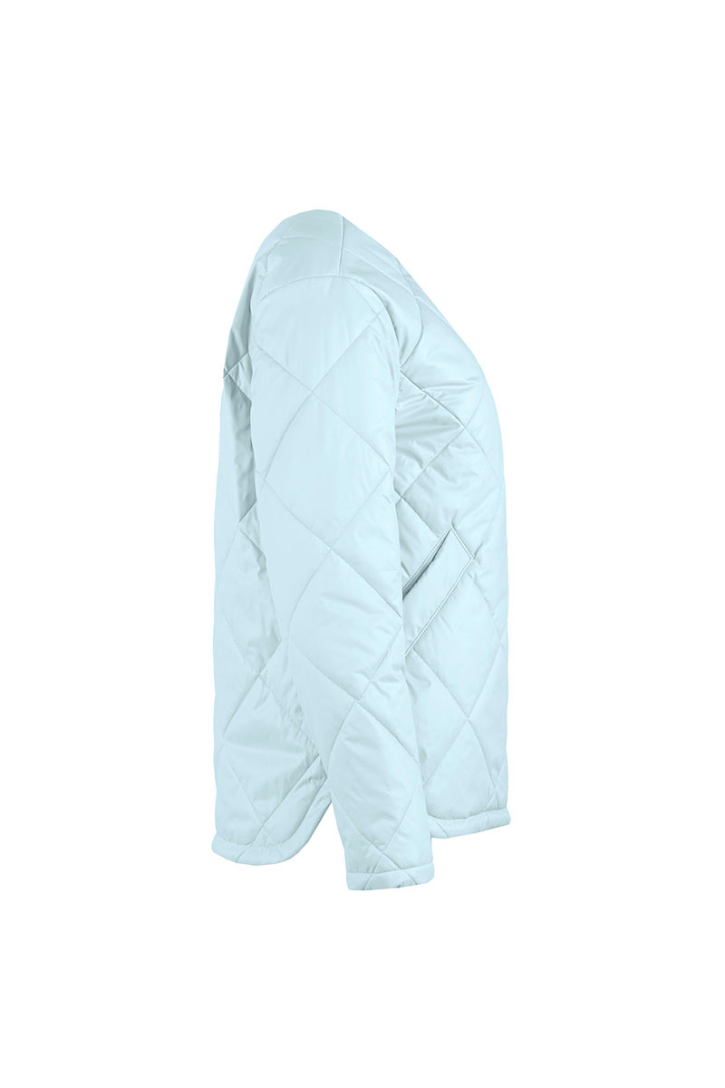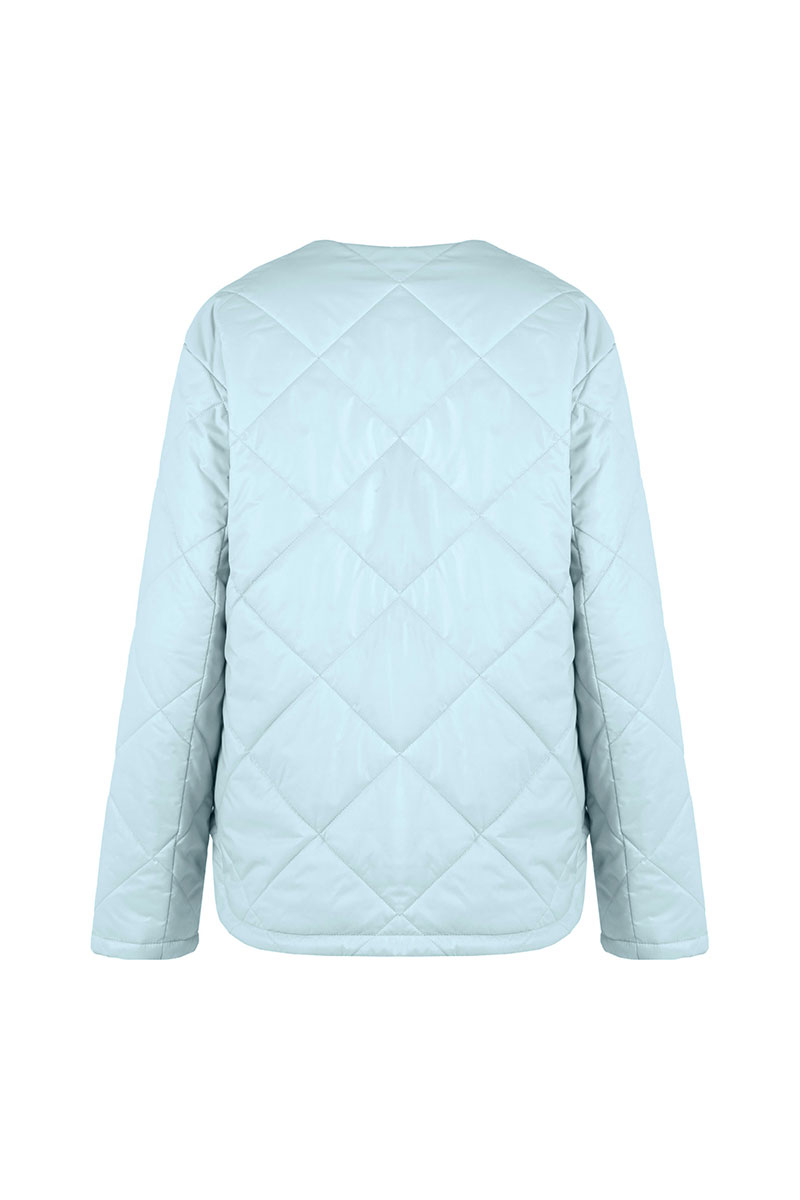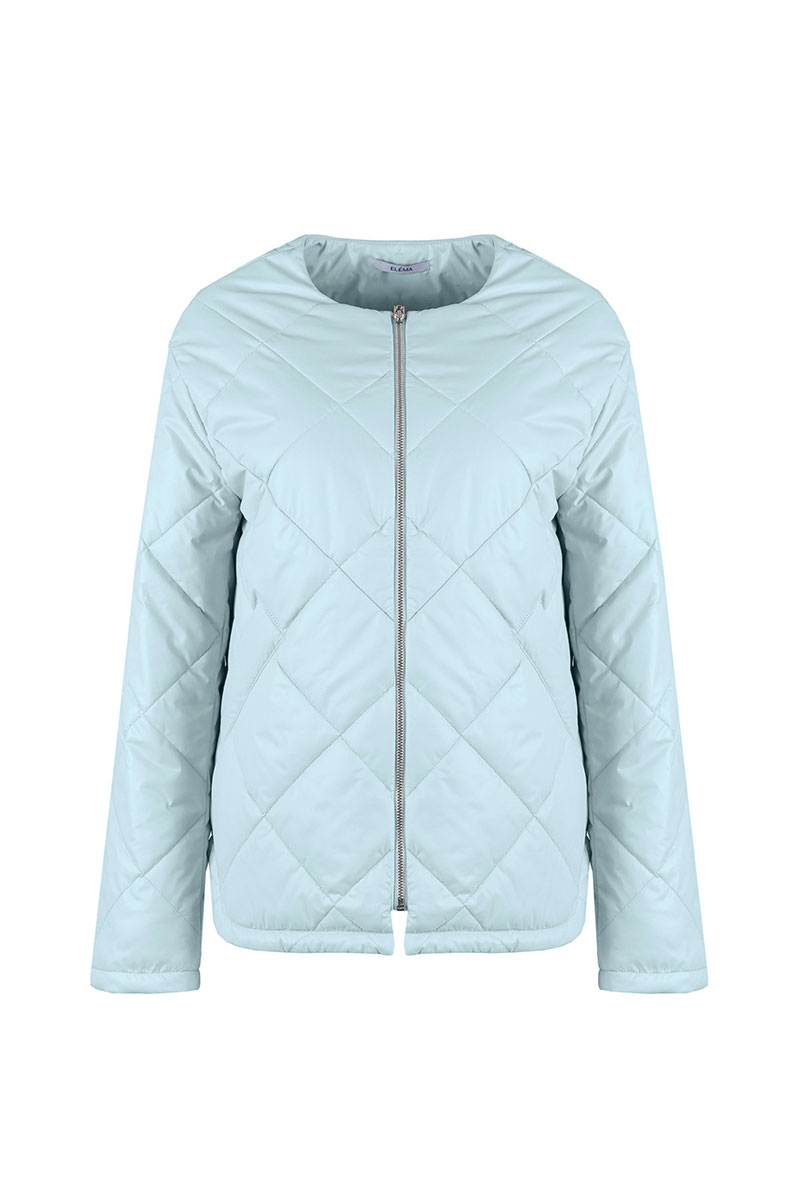 Куртка женская плащевая утепленная, однобортная, прямого силуэта, длиной до середины бедра. Застежка на молнию. По переду карман-листочка с втачными концами, застегивающаяся на потайную кнопку. Куртка из плащевой ткани стеганой на утеплителе ISOSOFT 100 гр., на подкладке, без воротника.