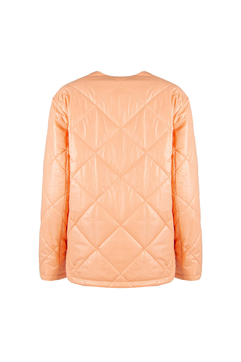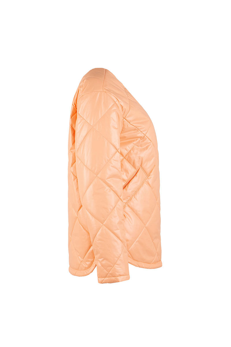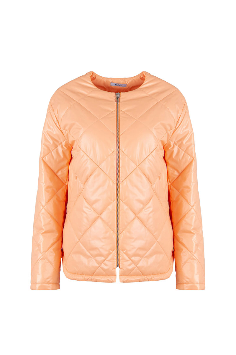 Куртка женская плащевая утепленная, однобортная, прямого силуэта, длиной до середины бедра. Застежка на молнию. По переду карман-листочка с втачными концами, застегивающаяся на потайную кнопку. Куртка из плащевой ткани стеганой на утеплителе ISOSOFT 100 гр., на подкладке, без воротника.