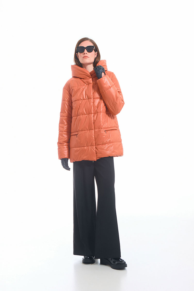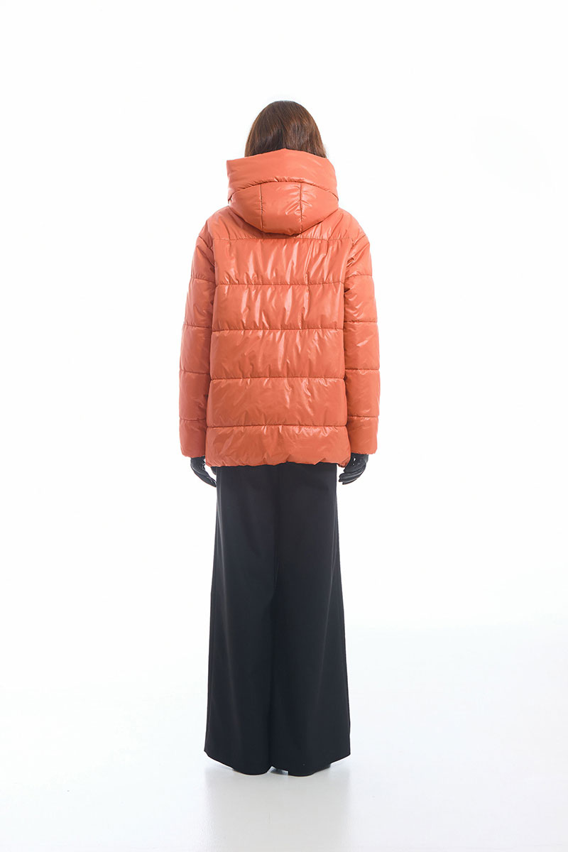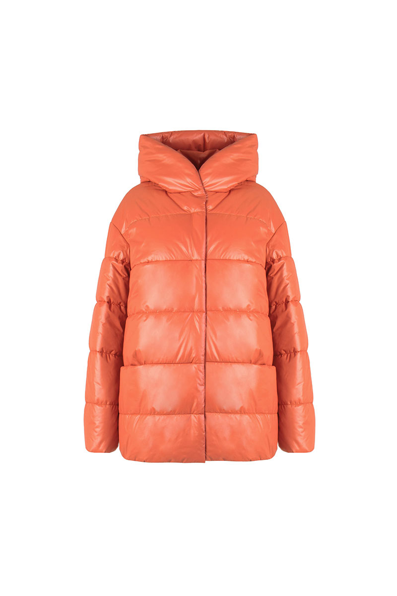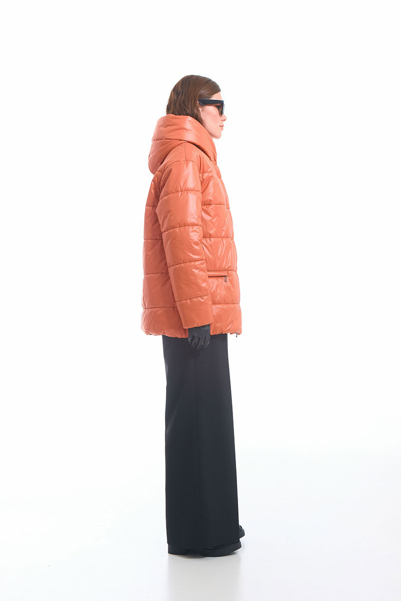 Куртка женская плащевая, утепленная, стеганая на утеплителе ISOSFT 150 гр, прямого силуэта, длиной до середины бедра, с капюшоном, на подкладке. Застежка на потайные пробивные кнопки. На переде карманы в рельефе. Рукав длинный. Низ рукава и изделия собраны на резинку.