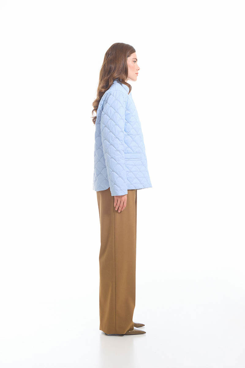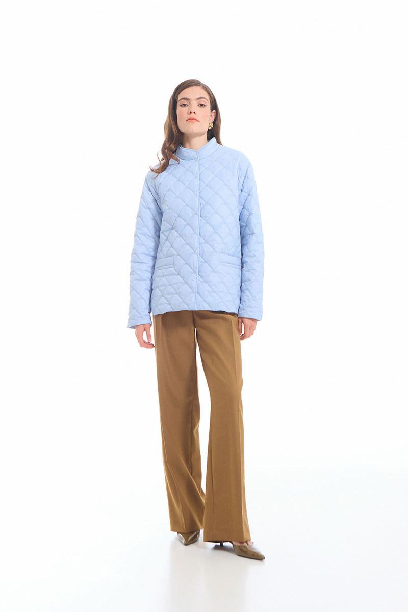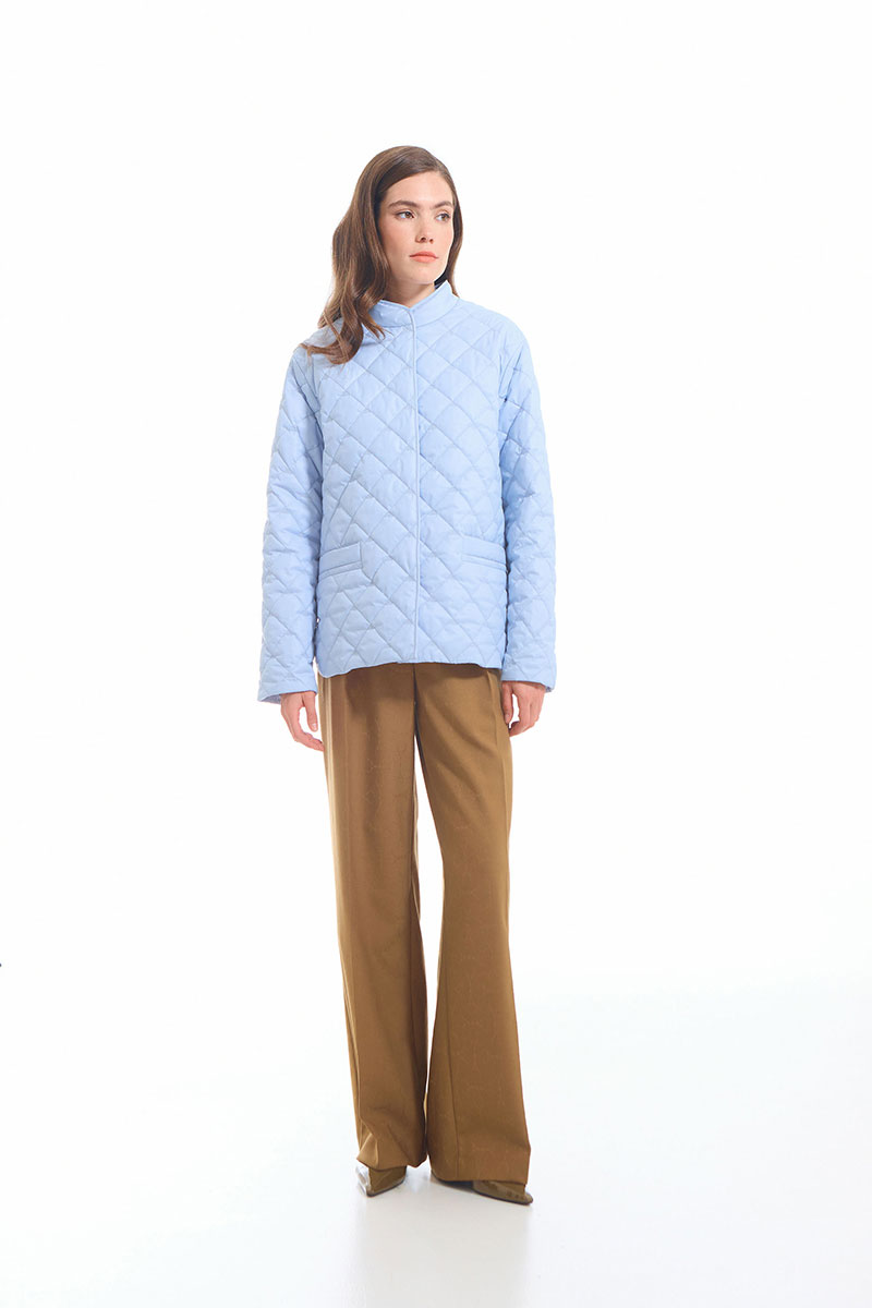Куртка женская плащевая, утепленная, стеганая на утеплителе ISOSFT 120 гр. Прямого силуэта, на подкладке, длиной до середины бедра. Застежка на потайные пробивные кнопки. По переду карман с листочкой, с потайной кнопкой. Рукав длинный, одношовный. Воротник стойка.
