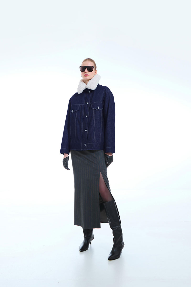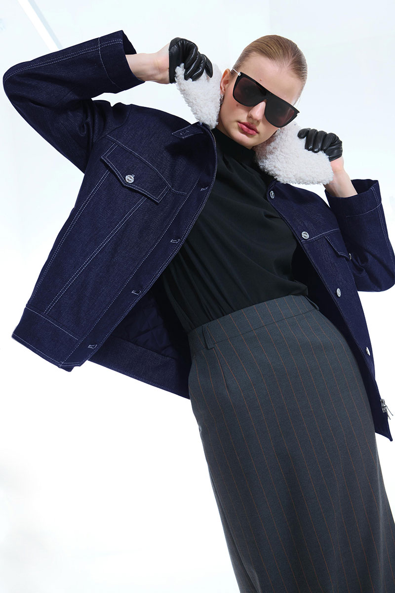 Куртка женская прямого силуэта, однобортная, длиной до бедра, на утепленной подкладке. На переде карманы с листочкой и клапана в шве кокетки, застегивающиеся на кнопки, центральная застежка на молнию и кнопки. Рукава длинные двухшовные. Воротник стояче-отложной. В комплекте съемный воротник из искусственного меха.
