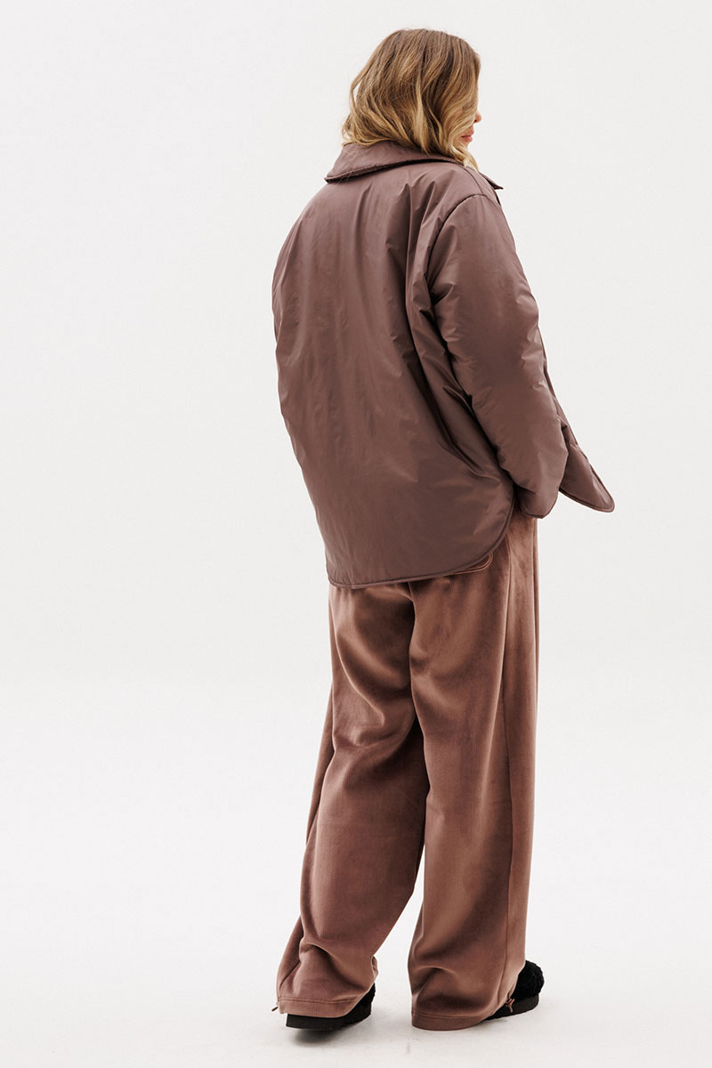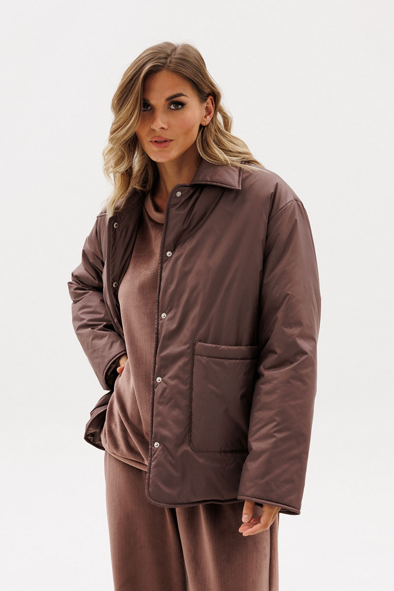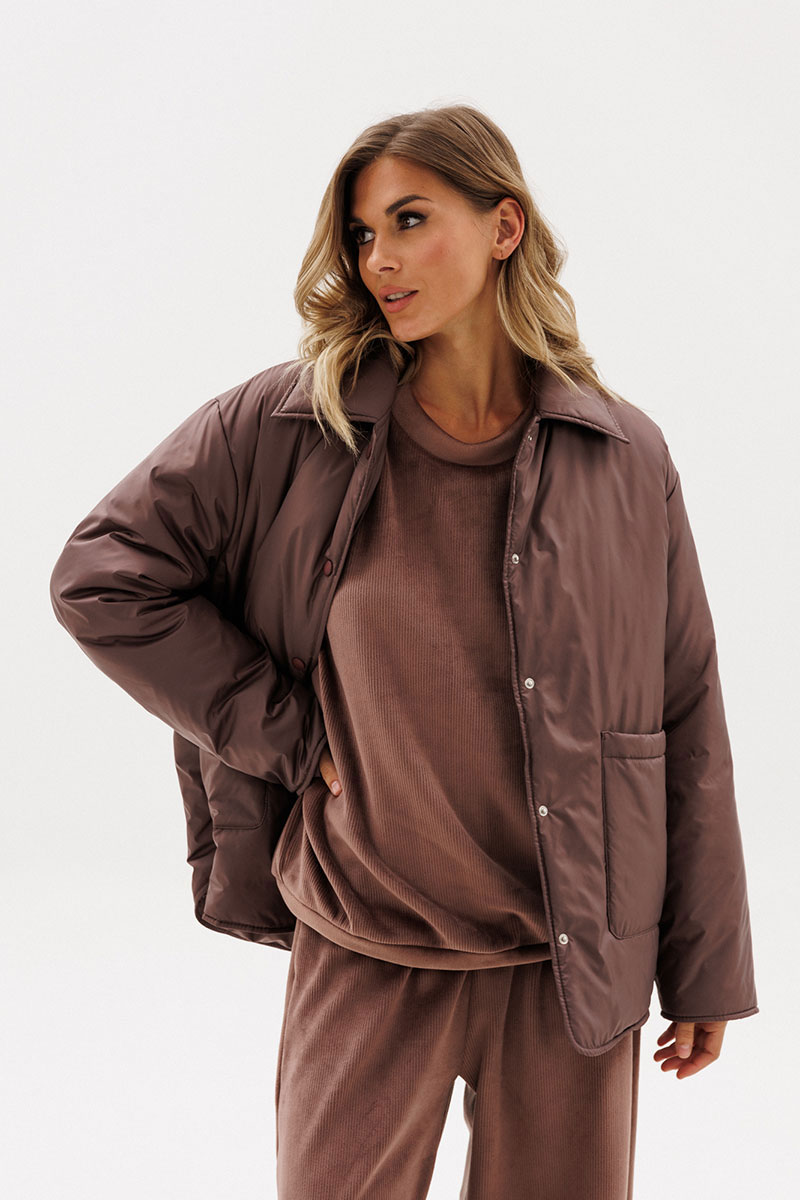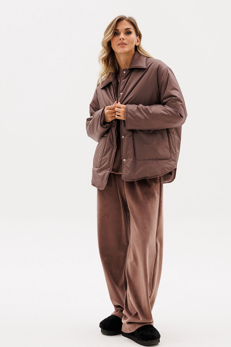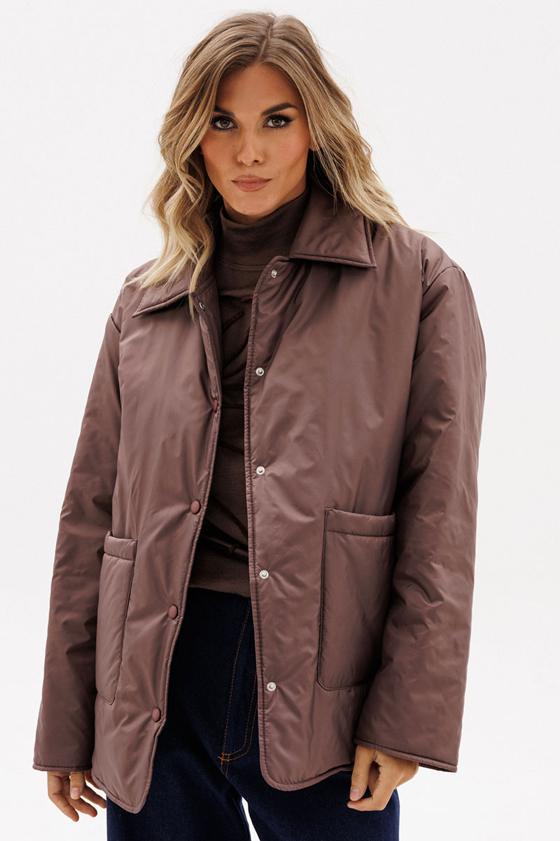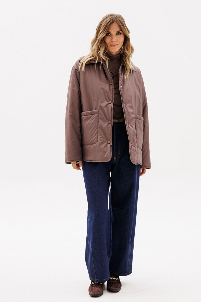 Куртка выполнена из плащевой ткани с утеплителем Isosoft. Куртка прямого силуэта, длиной до линии бедер. Спереди прорезные карманы и центральная бортовая застежка на кнопки. Спинка цельная. Воротник стояче-отложной. Плечевой шов удлинен. Рукав рубашечного покроя , одношовный. Низ куртки фигурной формы. Спинка чуть длинее. Куртка на притачной по низу подкладке.