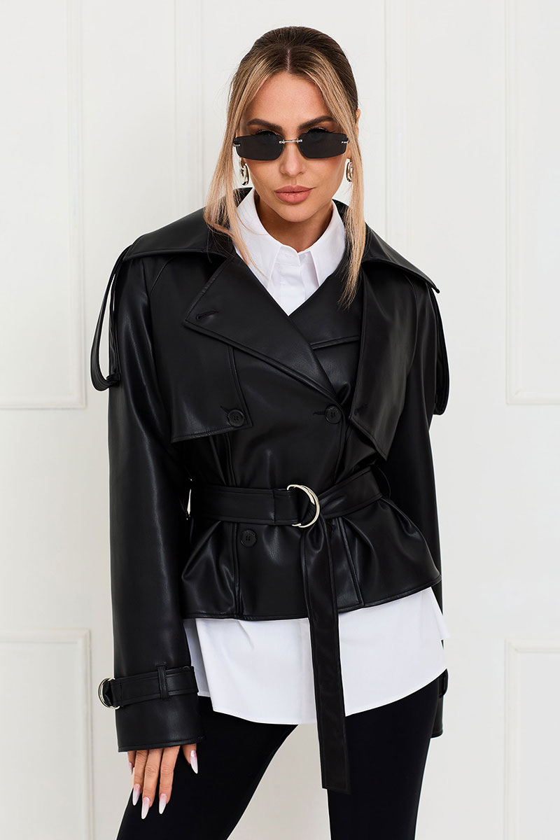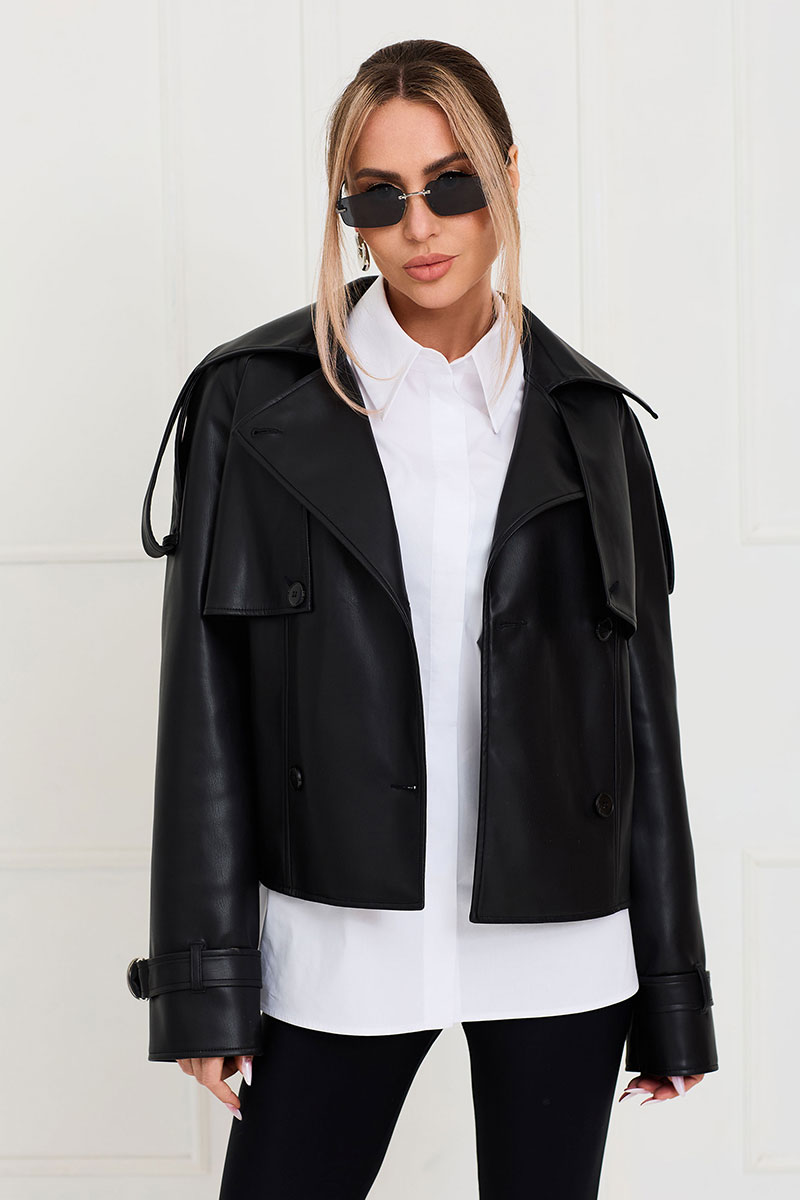 Цветовая гамма для верха, подкладки, фурнитуры, отделки: куртка выполнена из ткани-кожзам