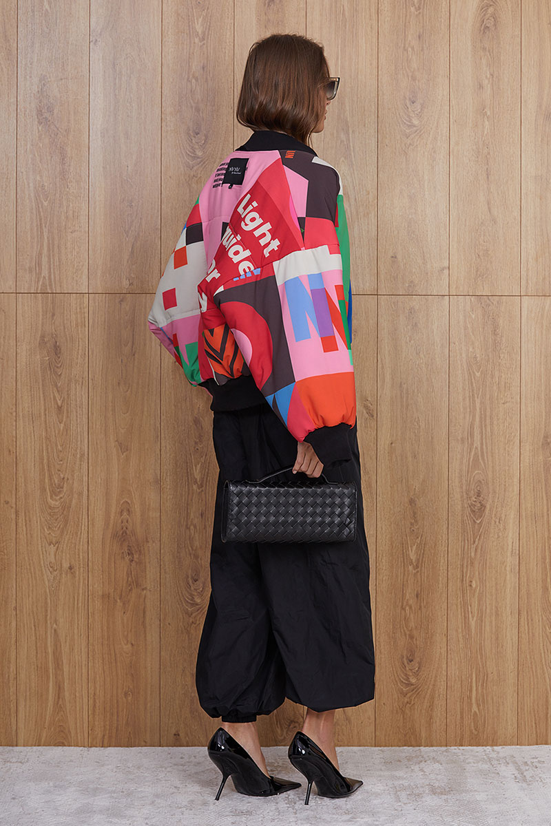 Мегастильная, объемная, укороченная куртка в стиле Casual, выполнена из мягкой экокожи, прямого силуэта, на вискозной авторской подкладке. Изделие на молнии, которая закрывается притачной планкой. По переду прорезные карманы с листочками. По плечу фигурные кокетки, переходящие на спинку. Спинка с фигурной кокеткой. Низ изделия на планке, в которую вставлена плотная резинка. Рукав спущенный, комбинированный, длинный. Низ рукава на плотной манжете, в которую вставлена резинка. Воротник-стойка.