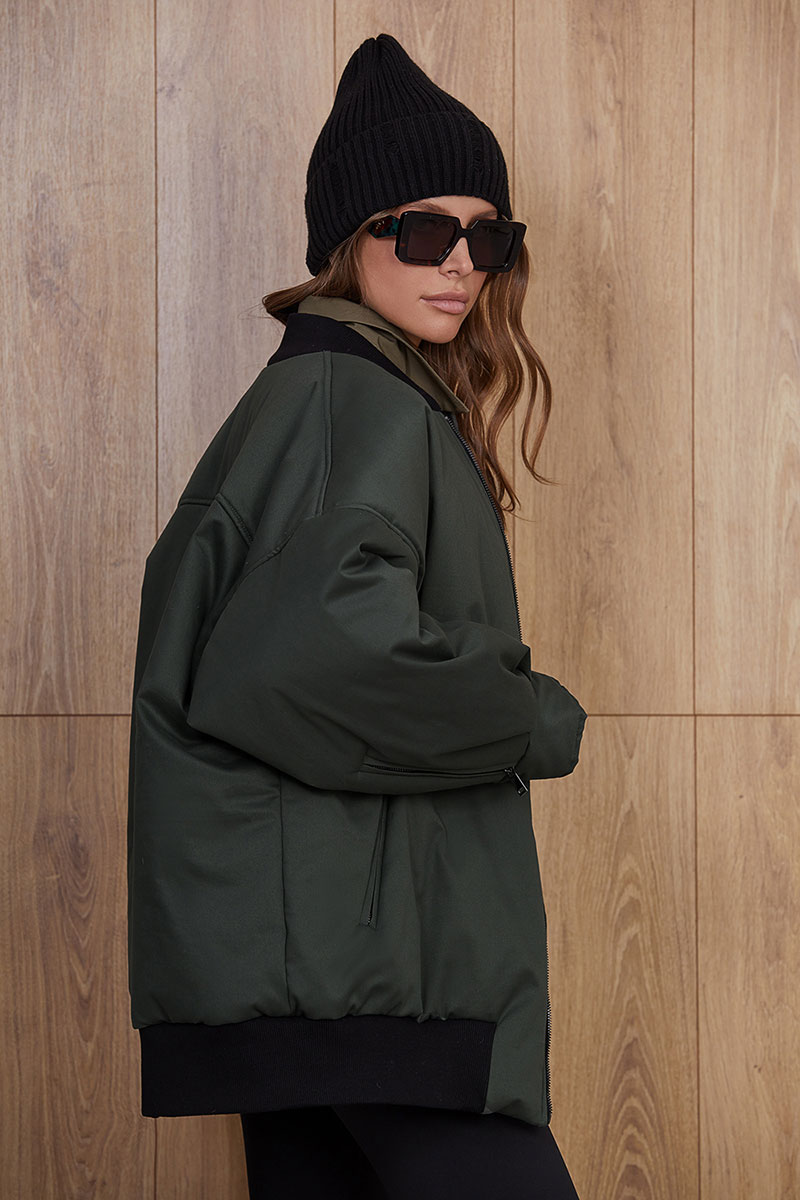Стильная, объемная, удлиненная куртка в стиле Casual, выполнена из плотной курточной ткани OXFORD, прямого силуэта, на вискозной авторской подкладке. Изделие на молнии. По переду прорезные карманы в рамку на молнии. Спинка с фигурной кокеткой. Низ изделия на плотной притачной планке из отделочной ткани, в которую дополнительно вставлена резинка. Рукав спущенный, комбинированный, длинный. Низ рукава на манжете, по локтевому шву внизу вставлена декоративная молния. На левом рукаве декоративный накладной карман с молнией. Воротник- стойка, выполнен из отделочной ткани.