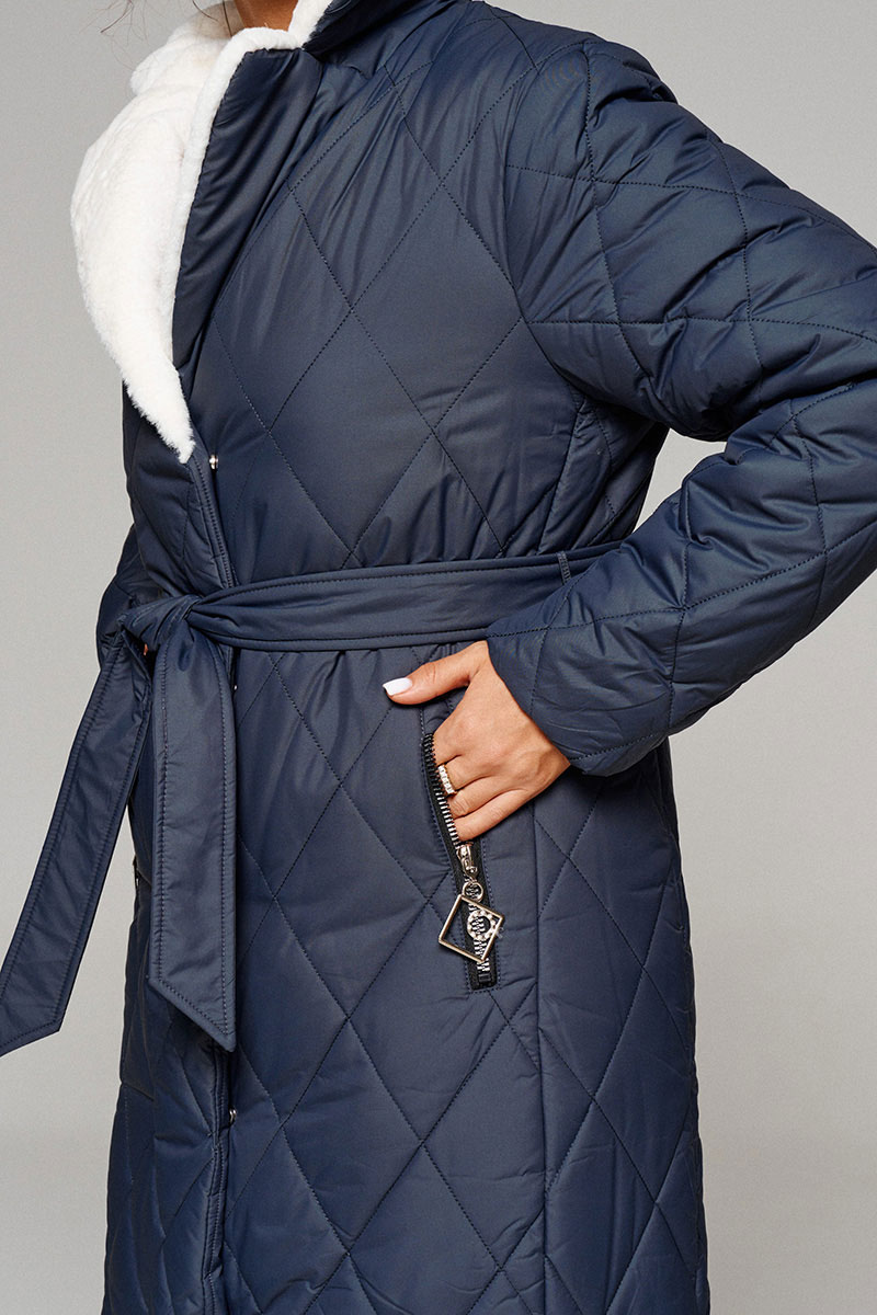 Пальто выполнено из стёганой, достаточно прочной и приятной на ощупь влагостойкой, полиэфирной ткани; на синтетической подкладке. Утеплитель из холлофайбера 200 г/м.кв., подходит для холодной осени и зимы. Изделие рассчитано на температурный режим от -10 до -20 градусов.