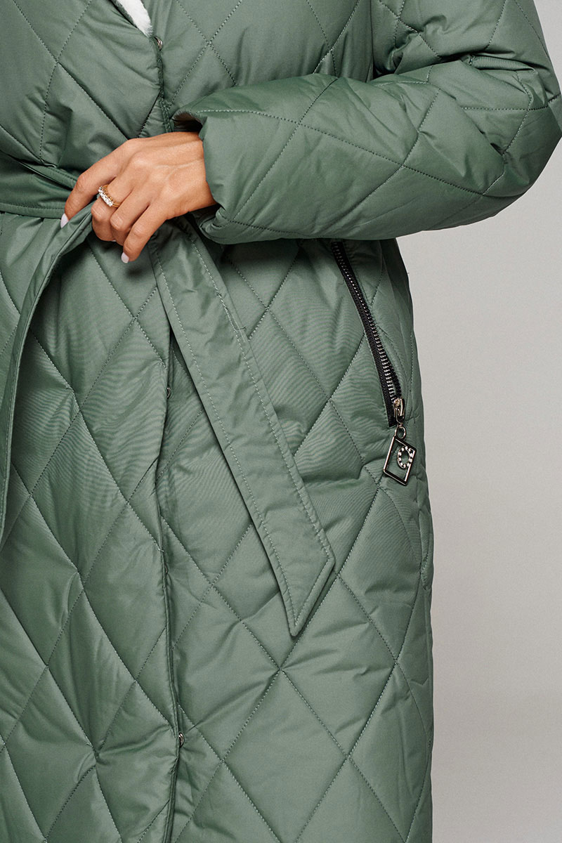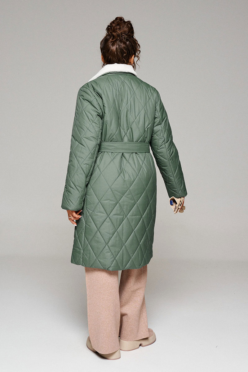 Пальто выполнено из стёганой, достаточно прочной и приятной на ощупь влагостойкой, полиэфирной ткани; на синтетической подкладке. Утеплитель из холлофайбера 200 г/м.кв., подходит для холодной осени и зимы. Изделие рассчитано на температурный режим от -10 до -20 градусов.