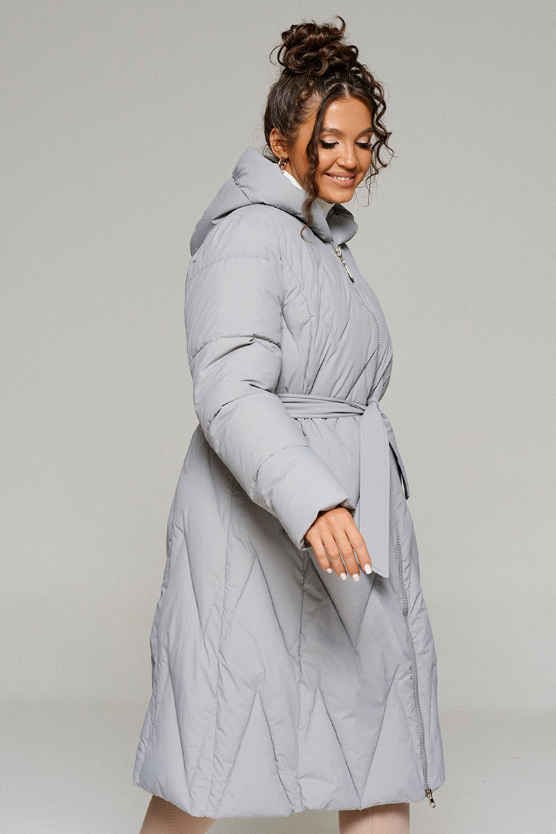Пальто выполнено из стёганной, достаточно прочной и приятной на ощупь влагостойкой, полиэфирной ткани; на синтетической подкладке. Утеплитель из холлофайбера 250 г/м.кв., подходит для холодной осени и зимы. Изделие рассчитано на температурный режим от -10 до -25 градусов.