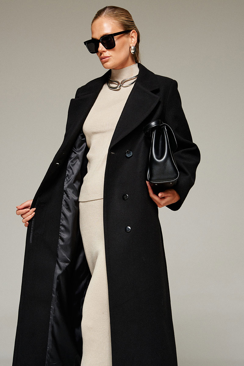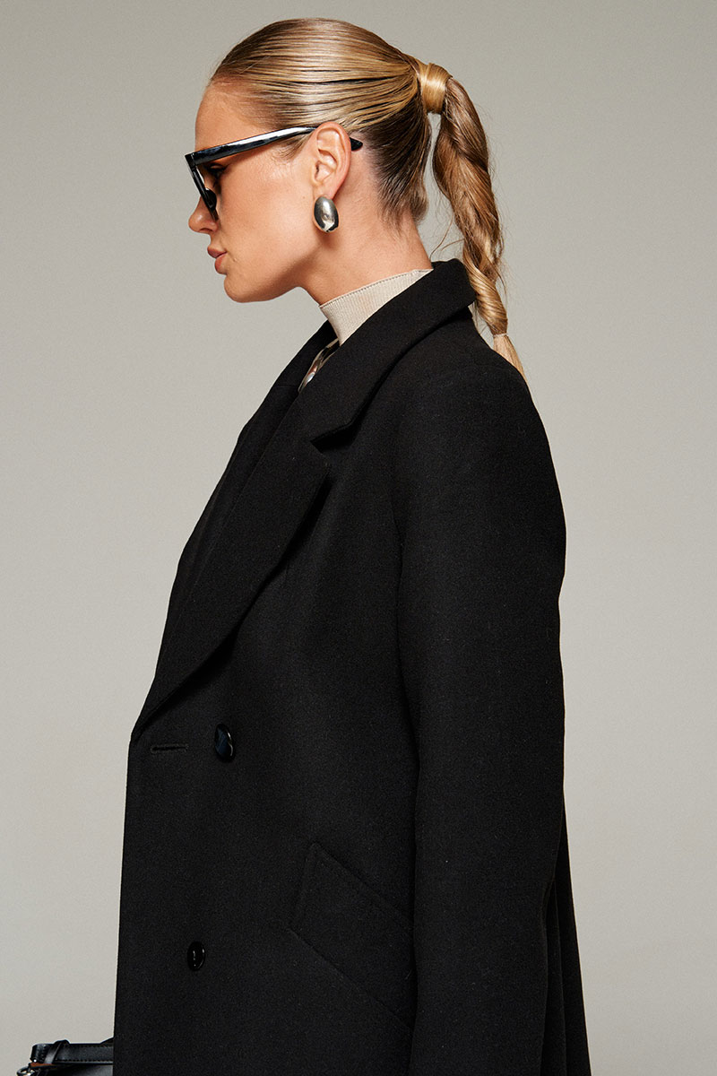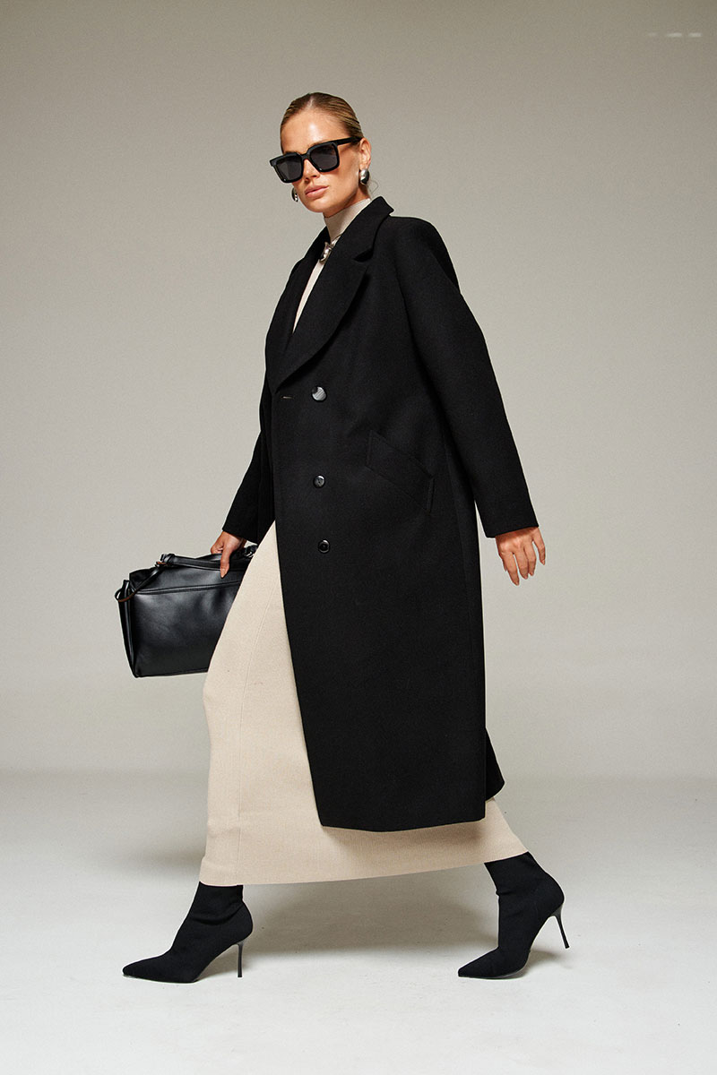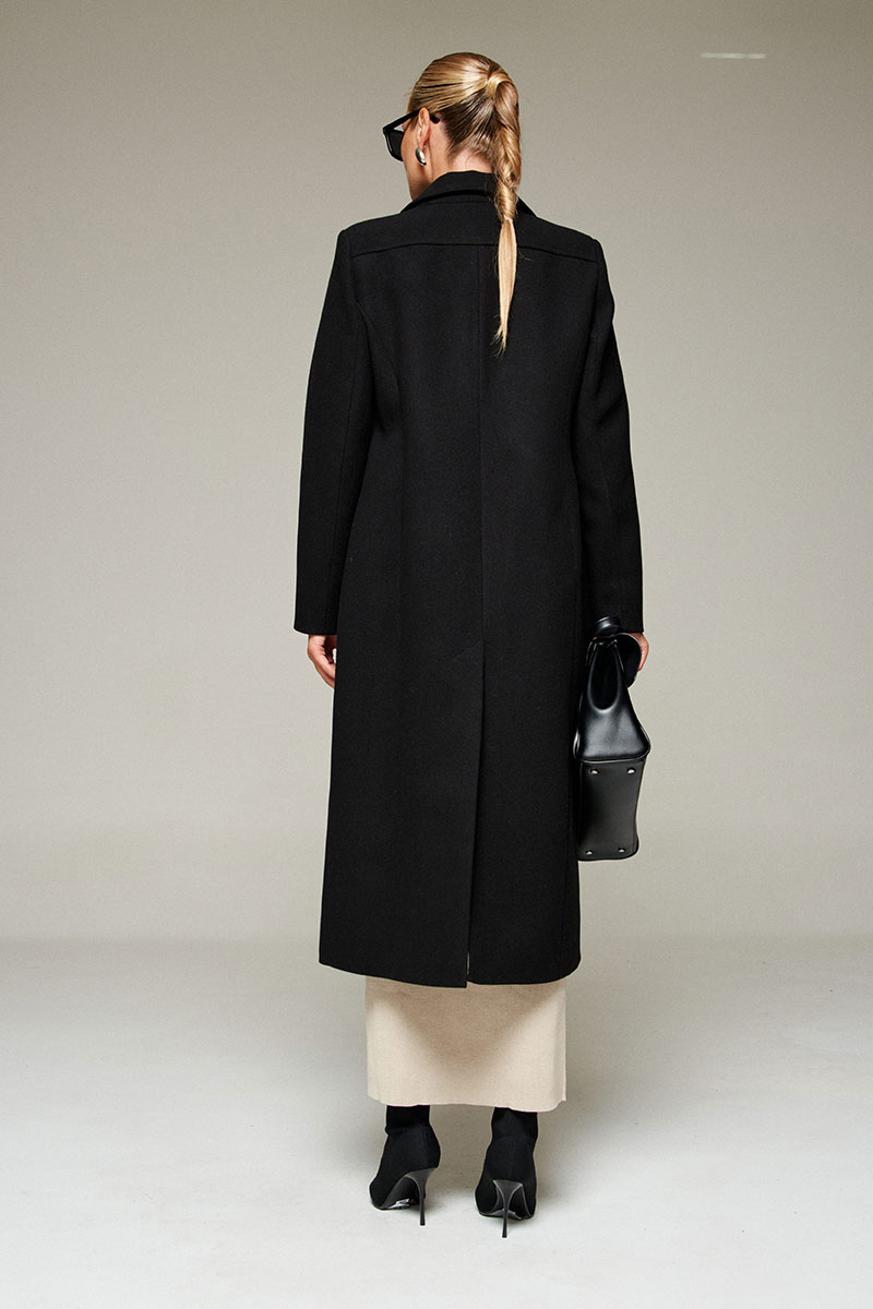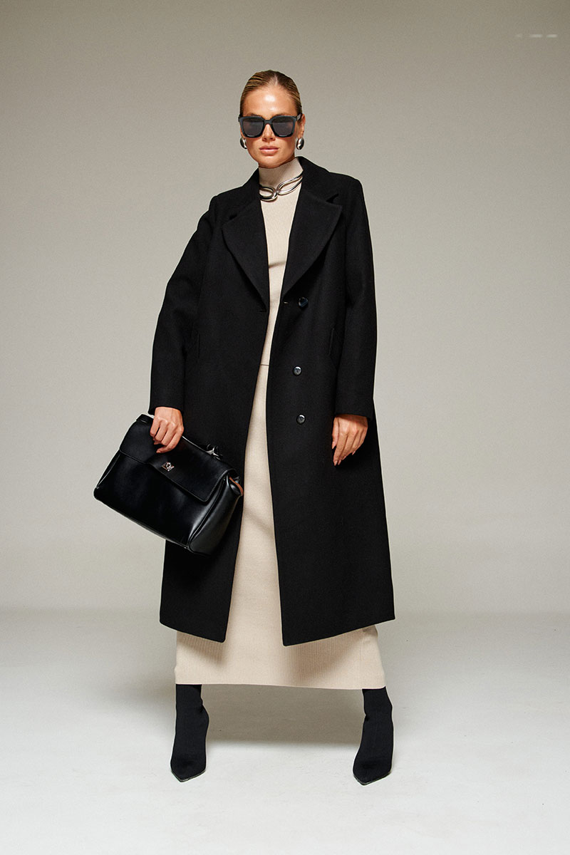 Пальто выполнено из шерстяной ткани, которая обеспечивает теплоизоляцию и защиту от ветра и влаги, подходит для межсезонья и теплой зимы. Двубортное, на подкладке. Изделие рассчитано на температурный режим от +10 до -5 градусов. Модель прямого силуэта, базового кроя; предназначена для повседневного использования.