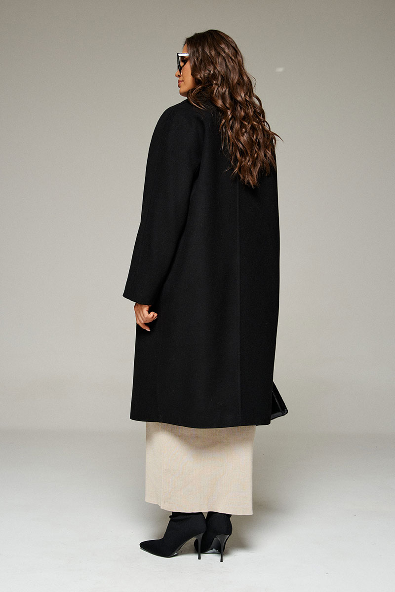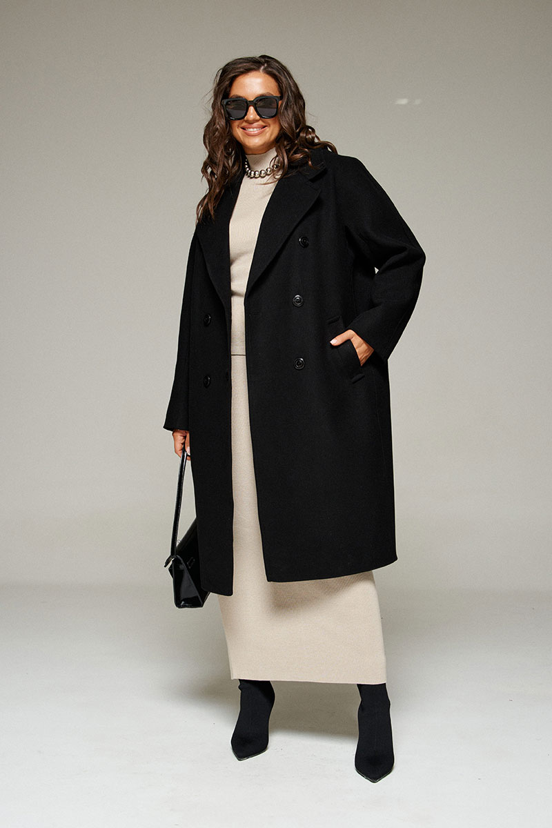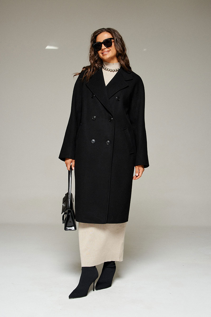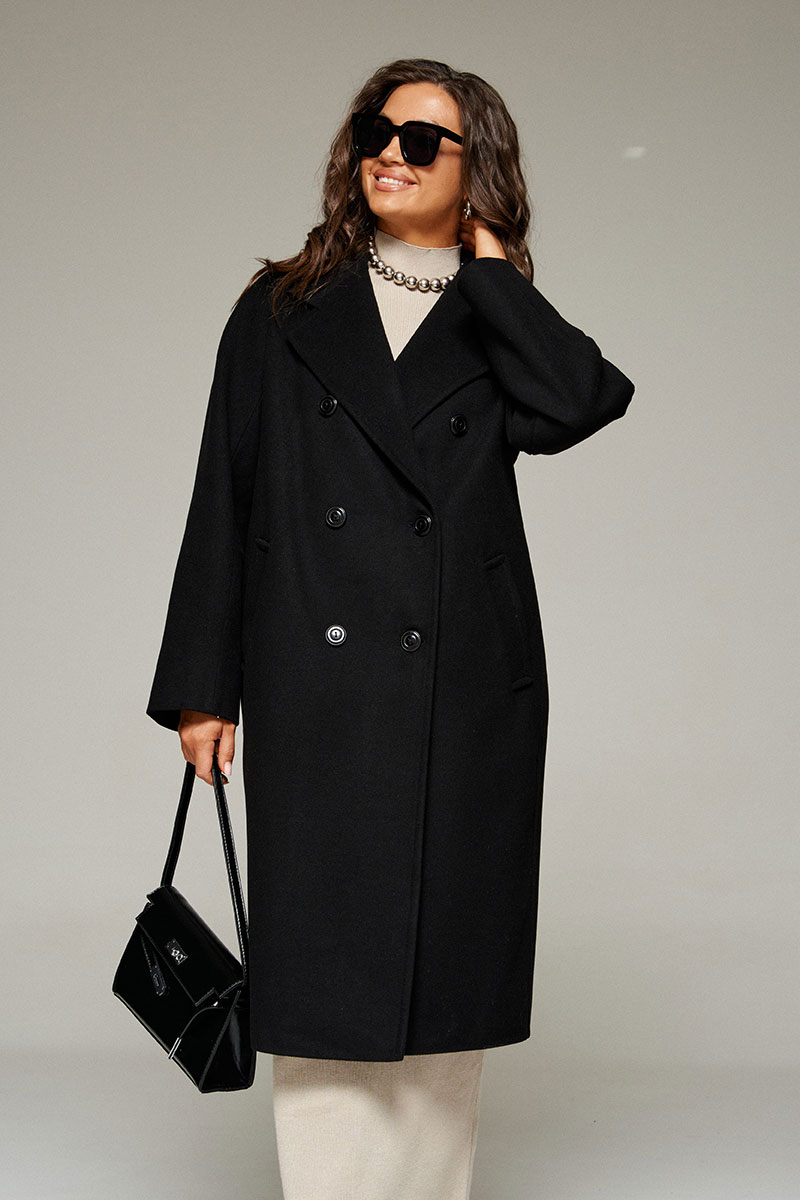 Пальто выполнено из шерстяной ткани, которая обеспечивает теплоизоляцию и защиту от ветра и влаги, подходит для межсезонья и теплой зимы. Двубортное, на подкладке. Изделие рассчитано на температурный режим от +10 до -5 градусов. Модель прямого силуэта, чуть расширенная к низу, покроя «летучая мышь»; предназначена для повседневного использования.