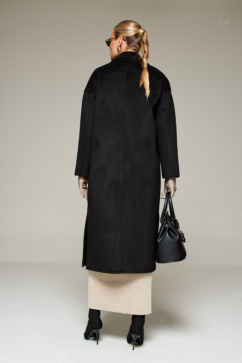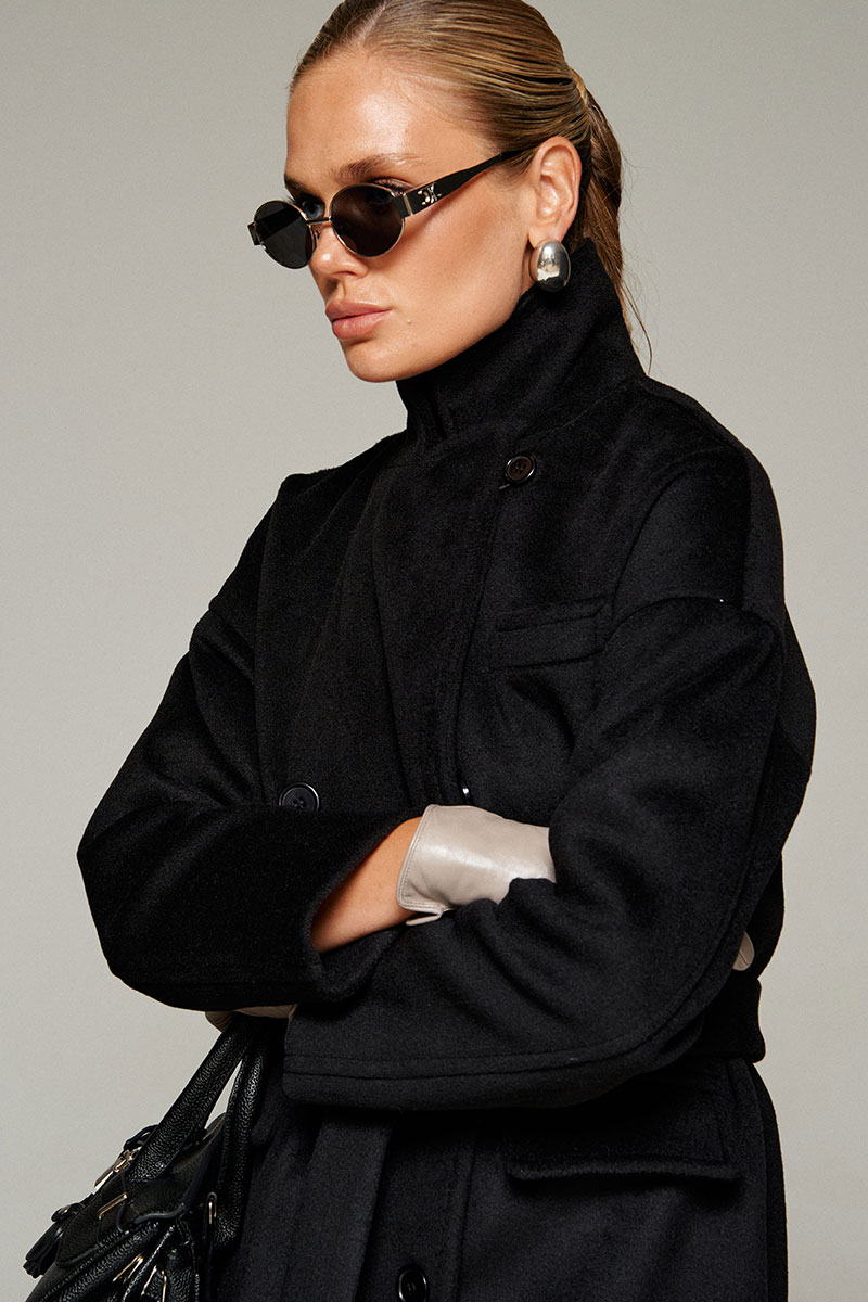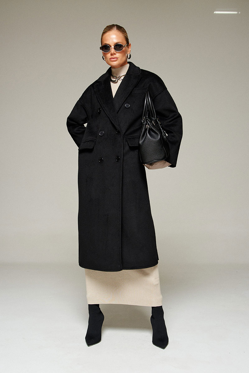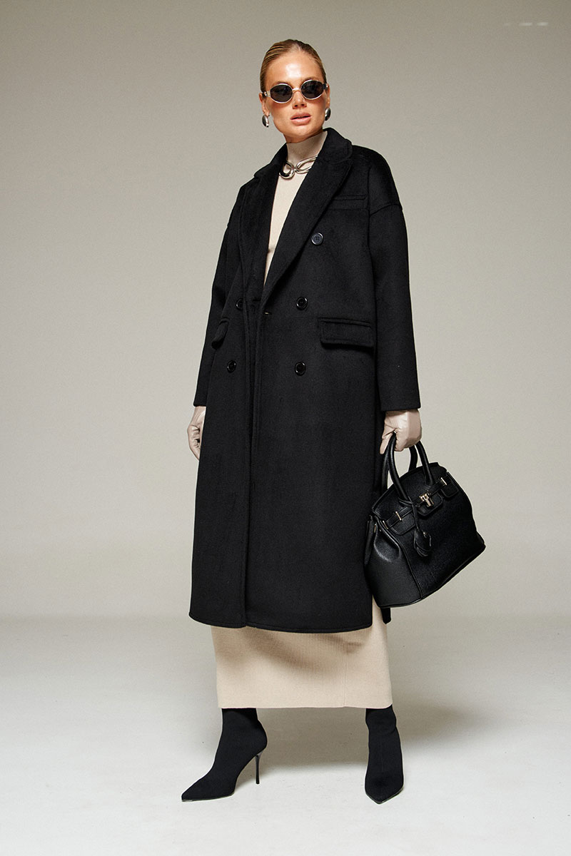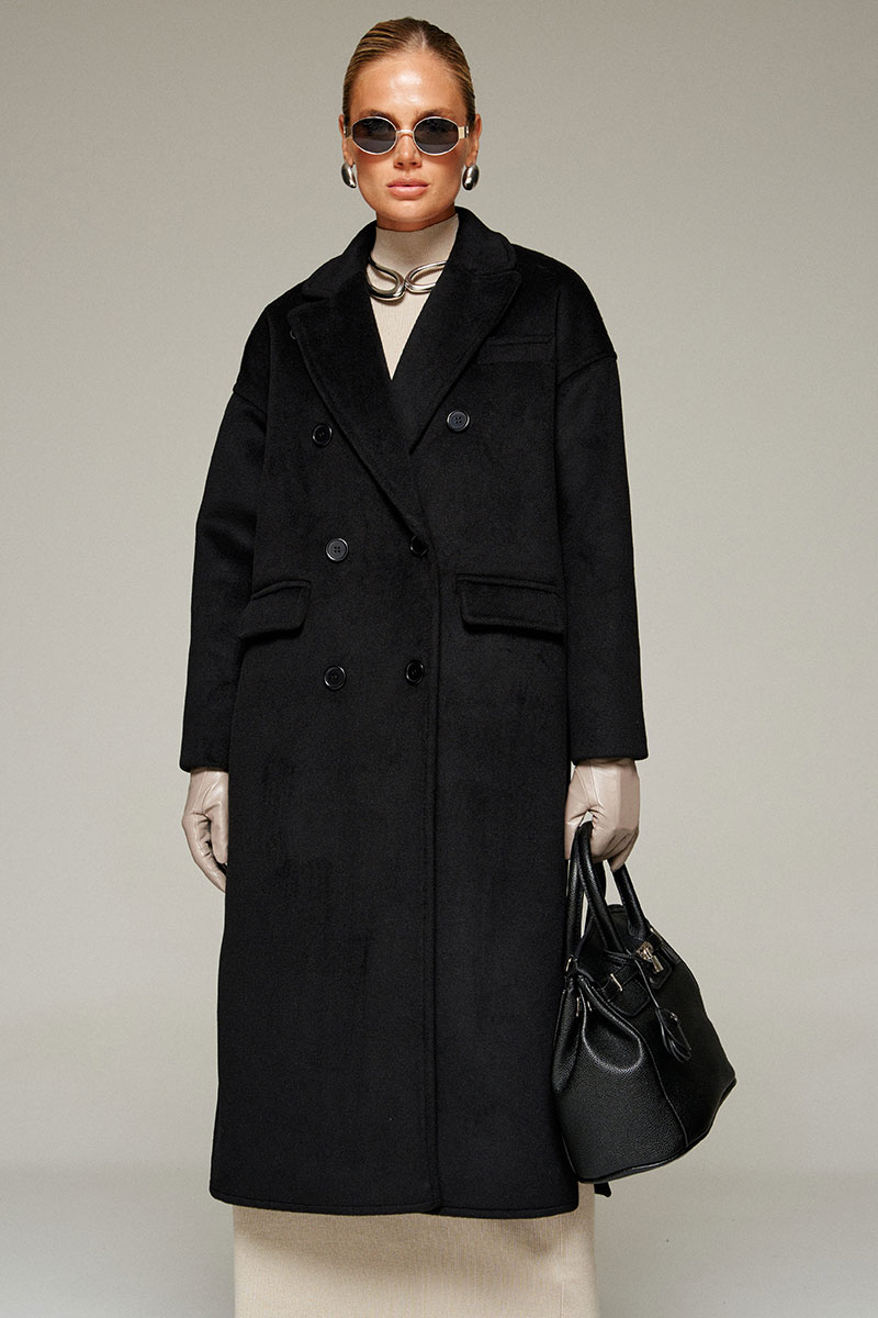 Пальто выполнено из шерстяной ткани, которая обеспечивает теплоизоляцию и защиту от ветра и влаги, подходит для межсезонья и теплой зимы. Двубортное, на подкладке.  Изделие рассчитано на температурный режим от +10 до -5 градусов. Модель прямого силуэта с удлиненной линией плеча, предназначена для повседневного использования.