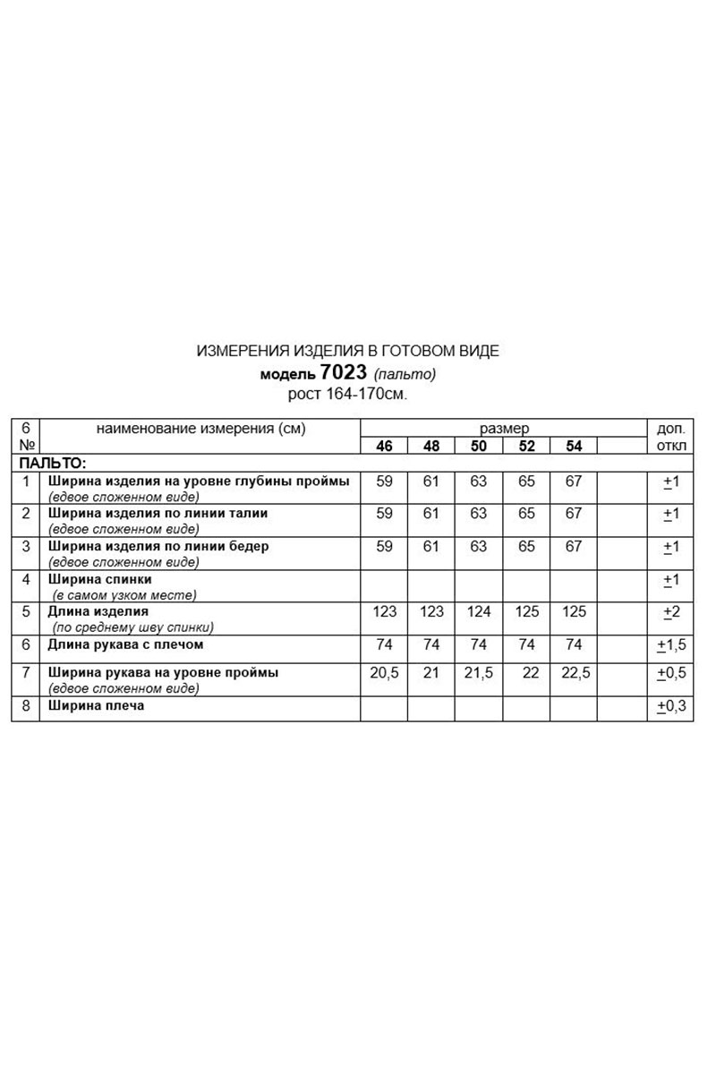 Длина рукава (+плечо) = 74 см. (+1см.)