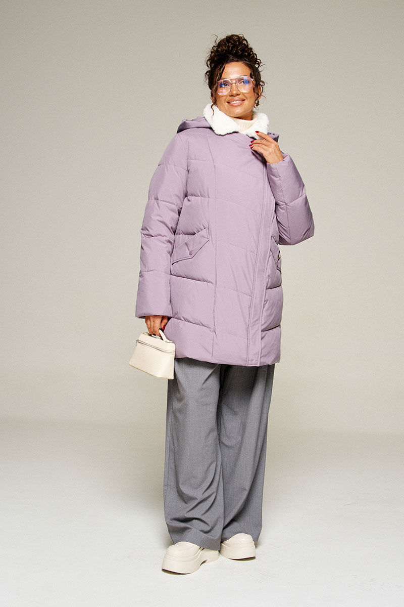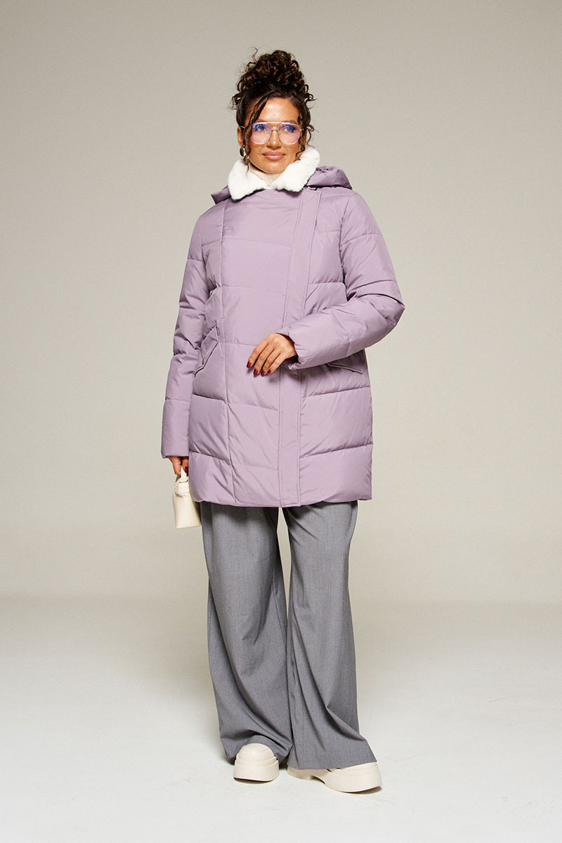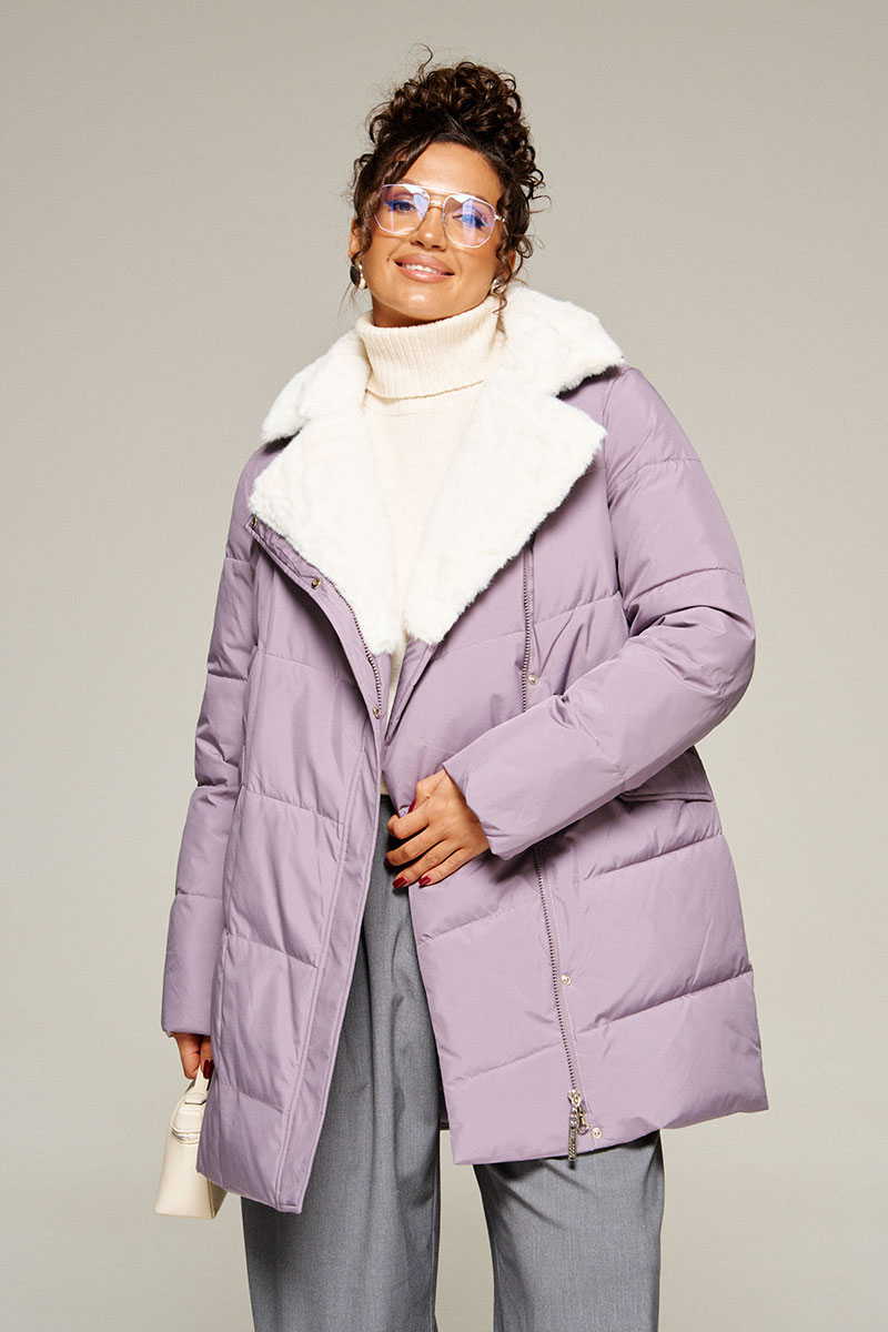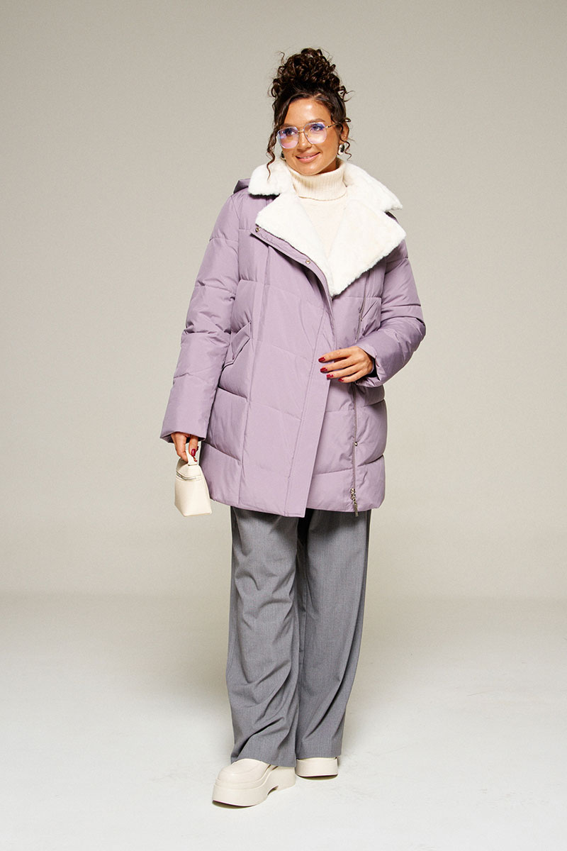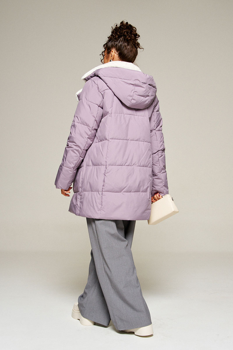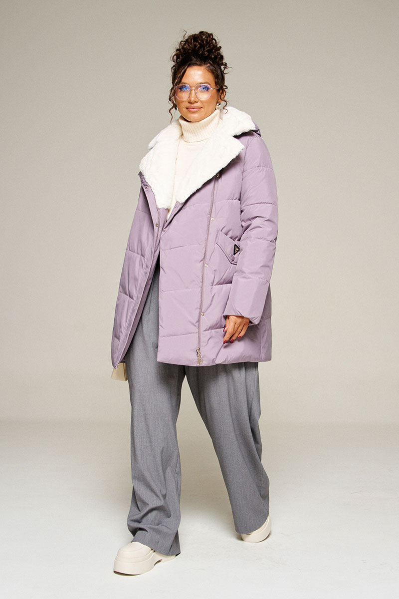 Воротник пиджачного типа с возможностью застегивания до верха. Внутренняя часть воротника и лацканы обработаны искусственным мехом.