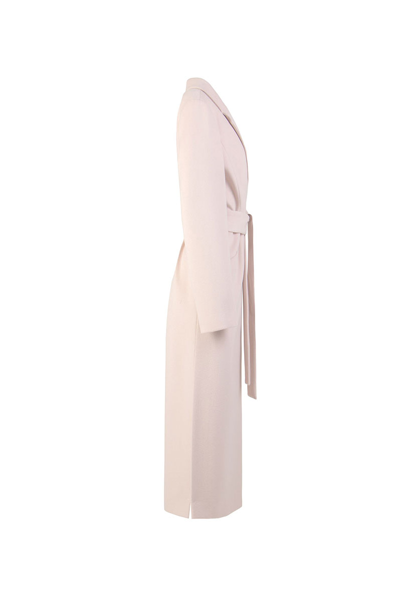 Отложной воротник с лацканами придаёт образу классическую строгость и благородство, а двухшовные длинные рукава обеспечивают идеальную посадку по руке. Это универсальное пальто станет незаменимым элементом гардероба в прохладные весенние и осенние дни.