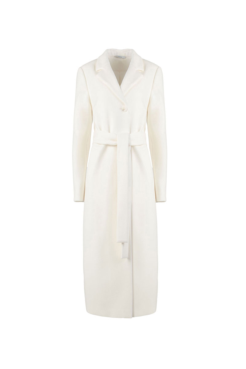 На передней части пальто — аккуратные карманы-листочки, а застежка представлена тремя петлями и пуговицами, подчеркивающими классический стиль изделия. Отложные воротник и лацканы придают образу завершенность и утонченность.