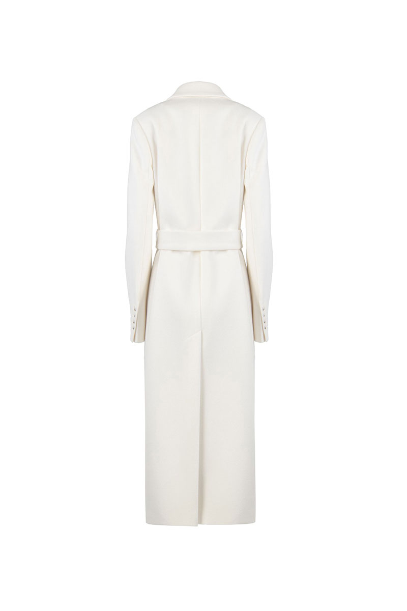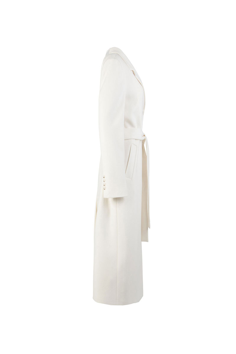Длинные двухшовные рукава украшены в области локтя отлетной шлицей с четырьмя петлями и пуговицами, что добавляет деталям изысканность и функциональность. В комплекте идет пояс, позволяющий подчеркнуть талию и создать более женственный силуэт.