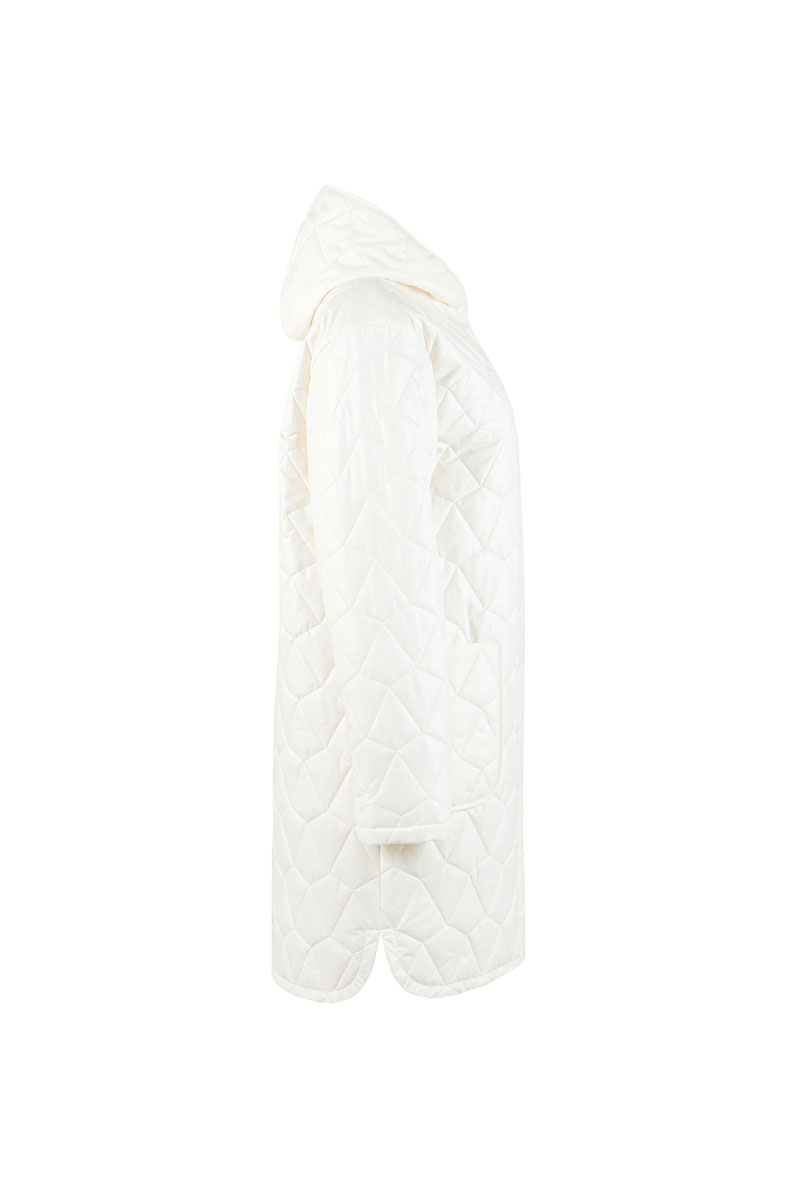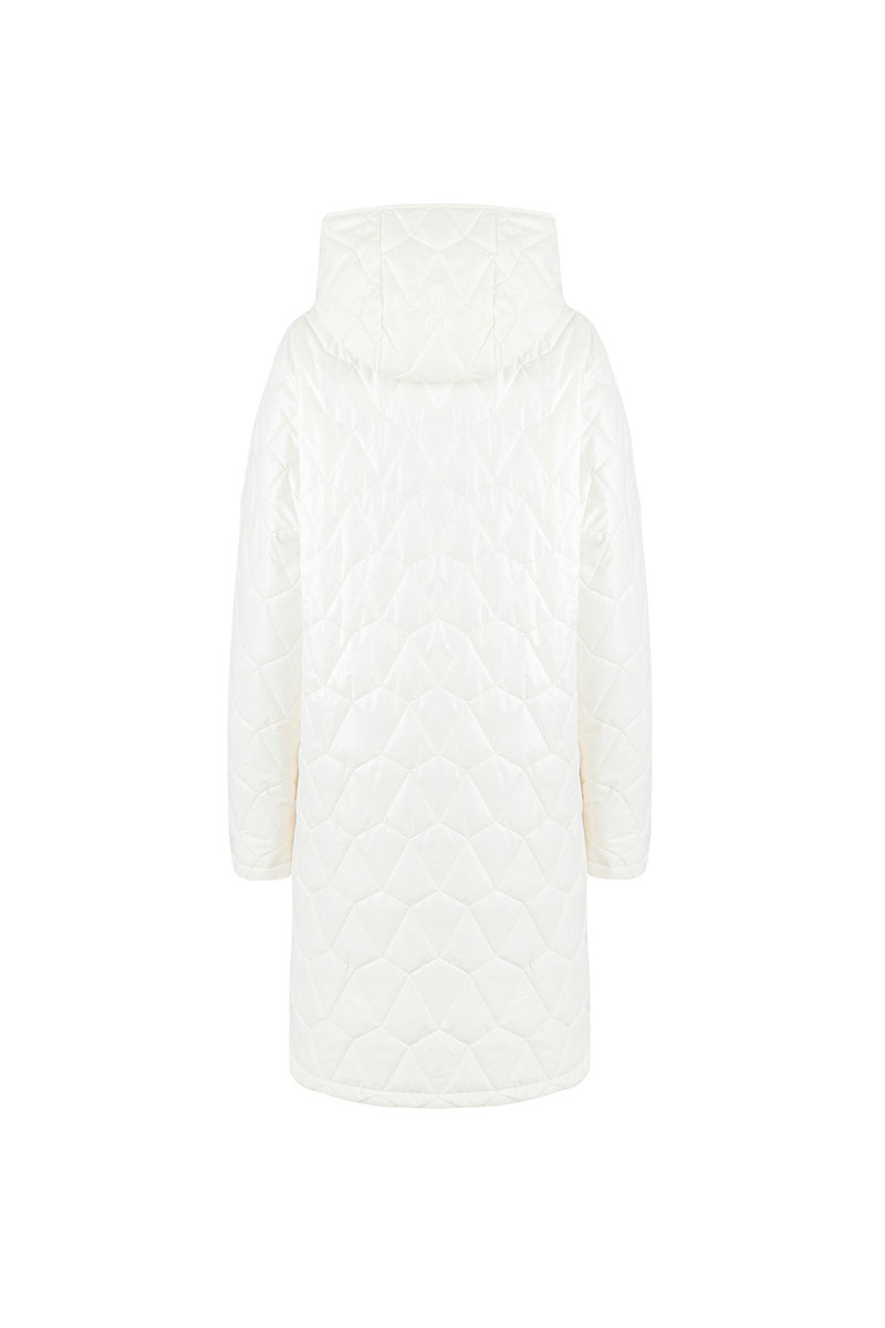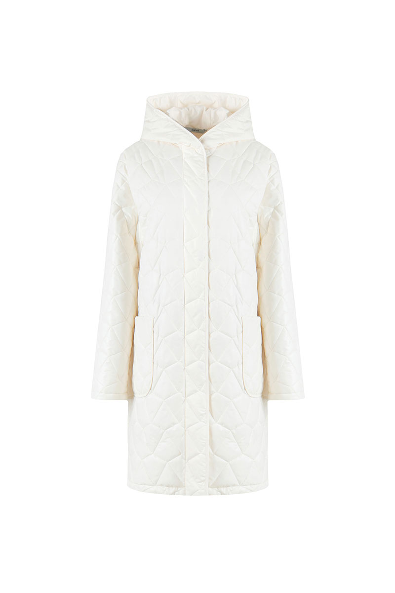 Пальто женское плащевое утепленное, стеганое на утеплителе ISOSFT 120 гр. Прямого силуэта, на подкладке, с капюшоном, длиной до середины колена. Застежка на потайные пробивные кнопки. Перед с накладными карманами. Рукав длинный, одношовный.