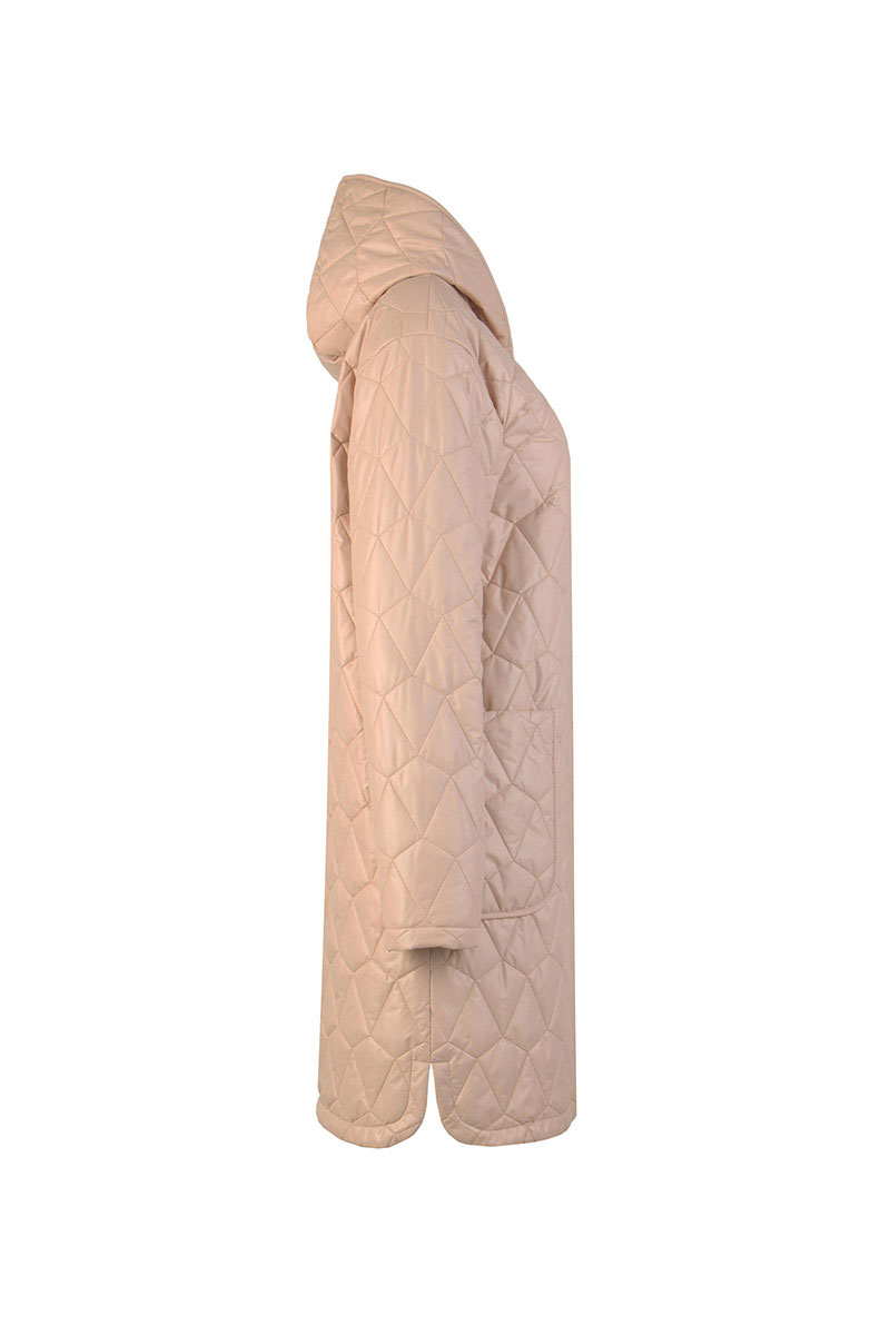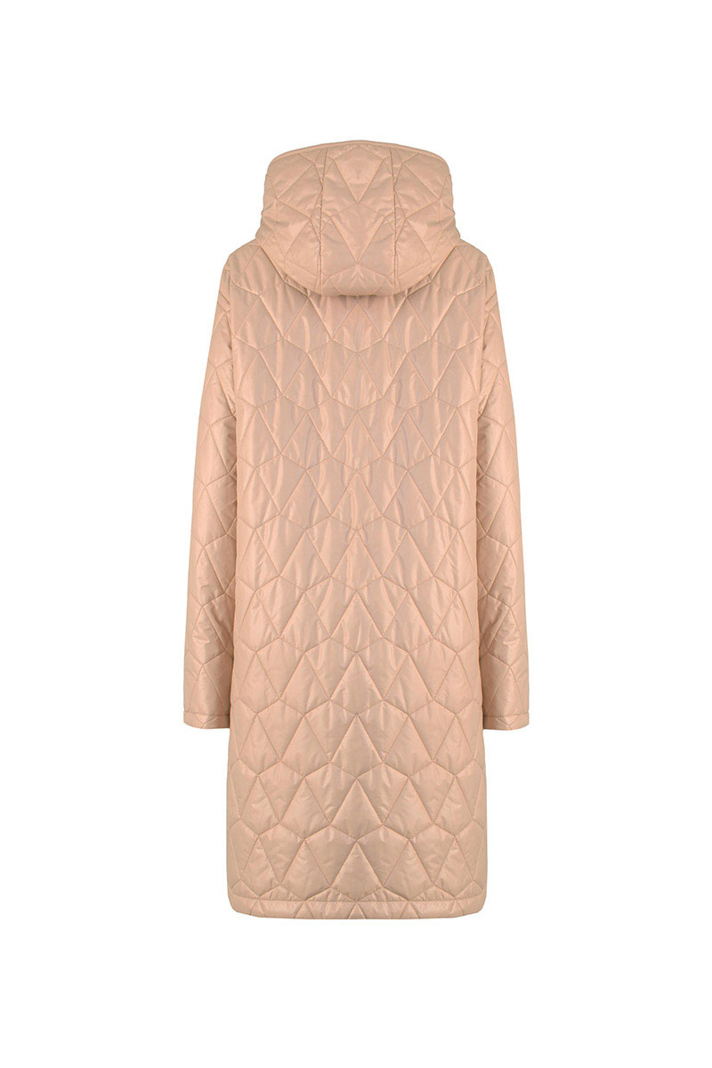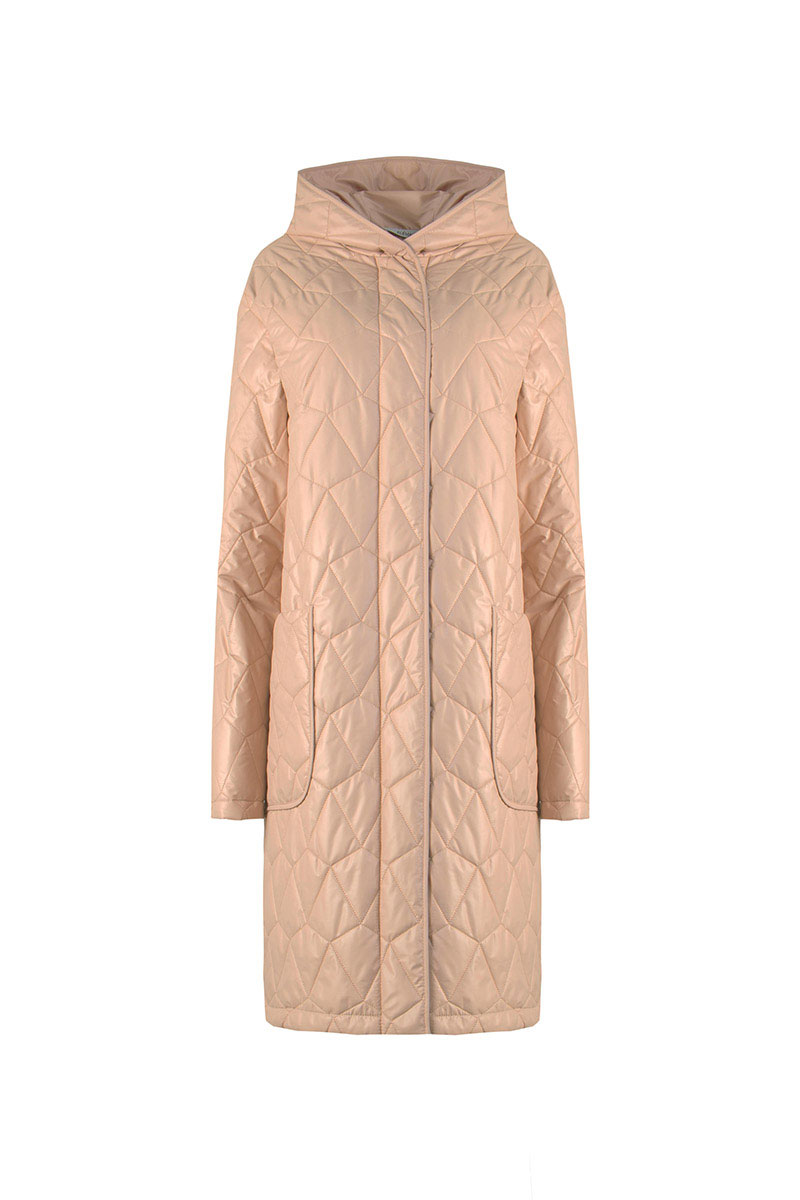 Пальто женское плащевое утепленное, стеганое на утеплителе ISOSFT 120 гр. Прямого силуэта, на подкладке, с капюшоном, длиной до середины колена. Застежка на потайные пробивные кнопки. Перед с накладными карманами. Рукав длинный, одношовный.