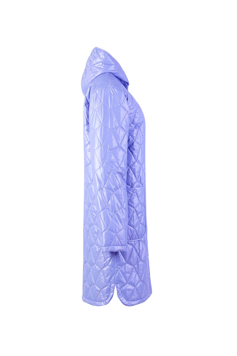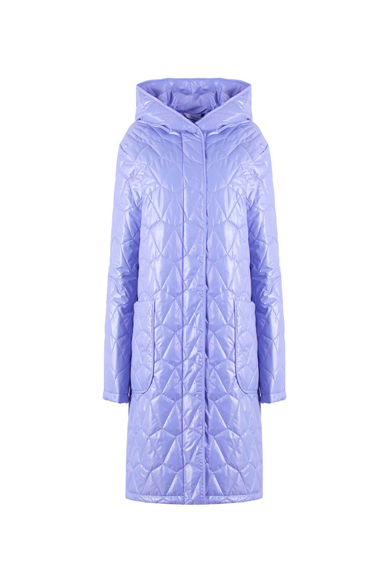 Пальто женское плащевое утепленное, стеганое на утеплителе ISOSFT 120 гр. Прямого силуэта, на подкладке, с капюшоном, длиной до середины колена. Застежка на потайные пробивные кнопки. Перед с накладными карманами. Рукав длинный, одношовный.