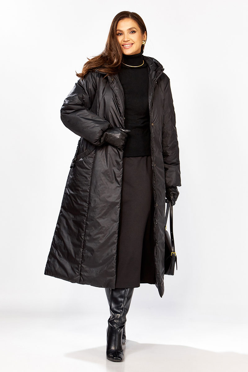 Зимнее стеганое пальто из ткани лакке - союз блеска и практичности. Элегантное, стильное, сочетающее себе комфорт и удобство. А-образный крой мягко формирует линию силуэта, создавая женственный и утончённый образ.