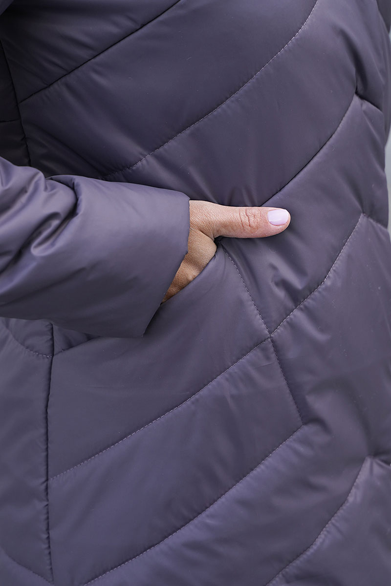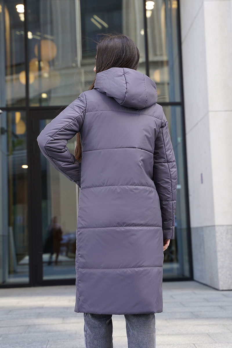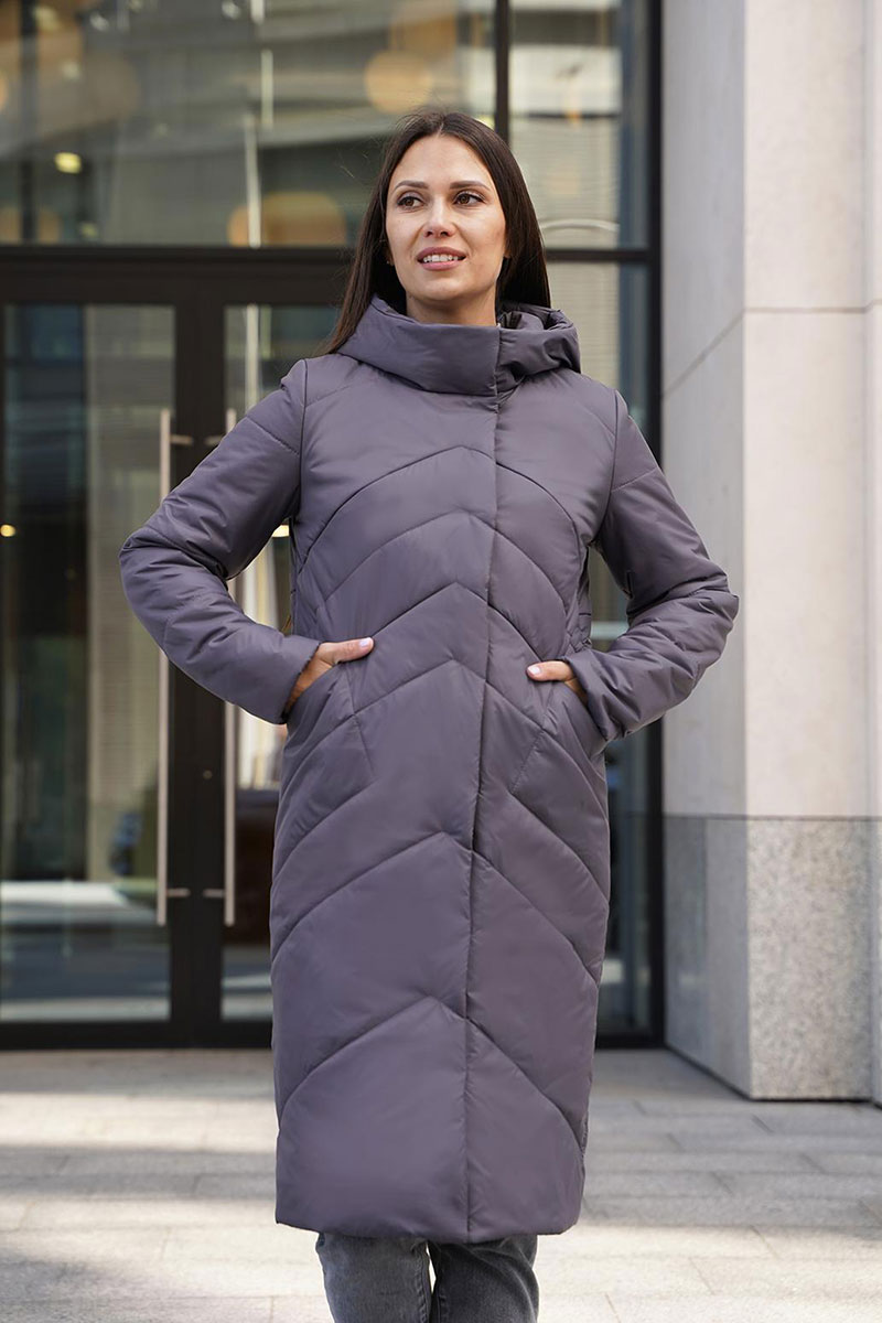 Женское удлиненное пальто на синтепоне полуприлегающего силуэта, отличный выбор для холодного времени года. Пальто с капюшоном со стойкой обеспечивает дополнительную защиту от ветра и холода, а оригинальная стежка придает изделию стильный и современный вид. Прорезные карманы не только удобны, но и добавляют функциональности. Такое пальто можно сочетать с различными нарядами: от джинсов и свитеров до более строгих комплектов с платьями или юбками. Оно отлично подойдет как для повседневной носки, так и для более формальных случаев.