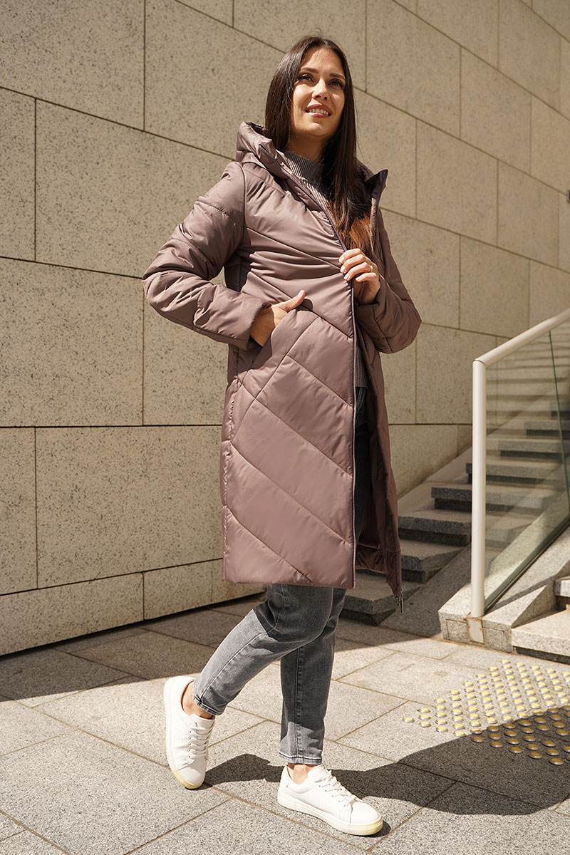 Элегантное и современное пальто с видовой витой молнией придает образу динамичность и изящество, создавая эффект изогнутых линий, а оригинальный карман в шве добавляет уникальности и аккуратности к силуэту. Косая стежка не только служит декоративным элементом, подчеркивающим структуру изделия, но и обеспечивает дополнительную прочность и теплоизоляцию. Такое пальто станет не только стильным акцентом в гардеробе, но и практичной вещью для прохладной погоды, гармонично сочетая в себе оригинальность и функциональность!