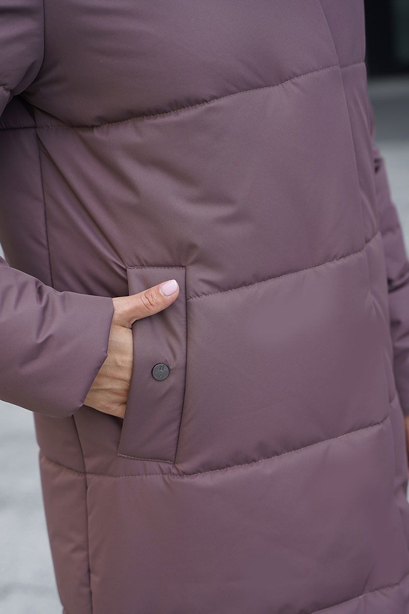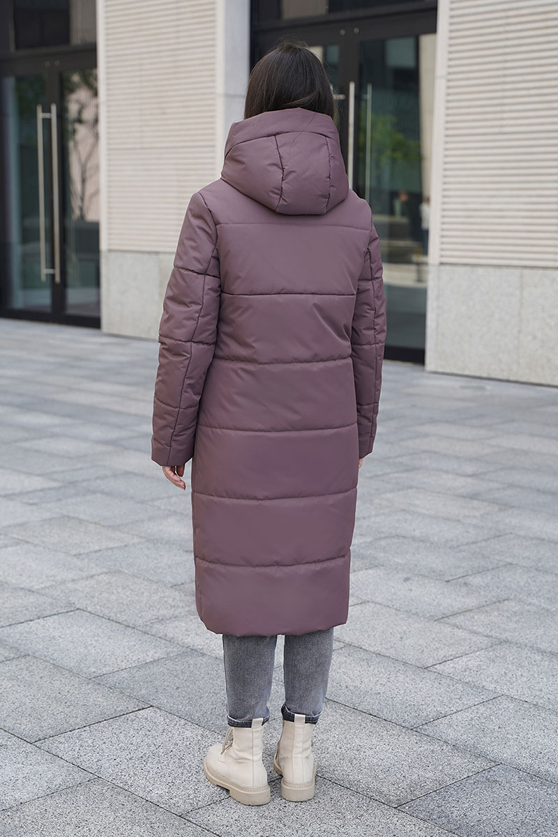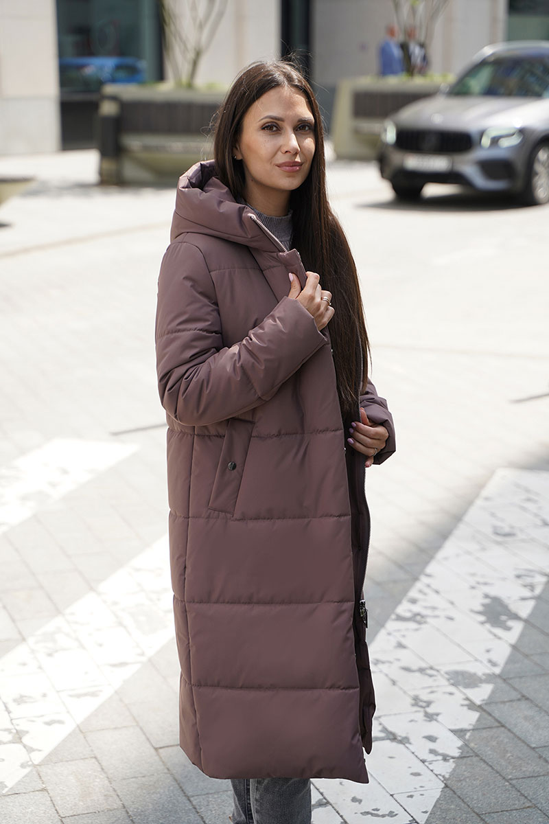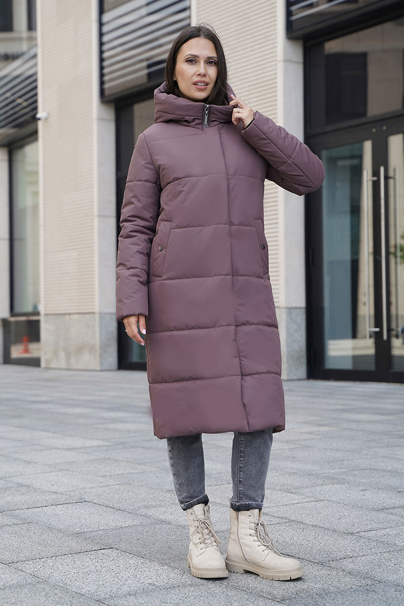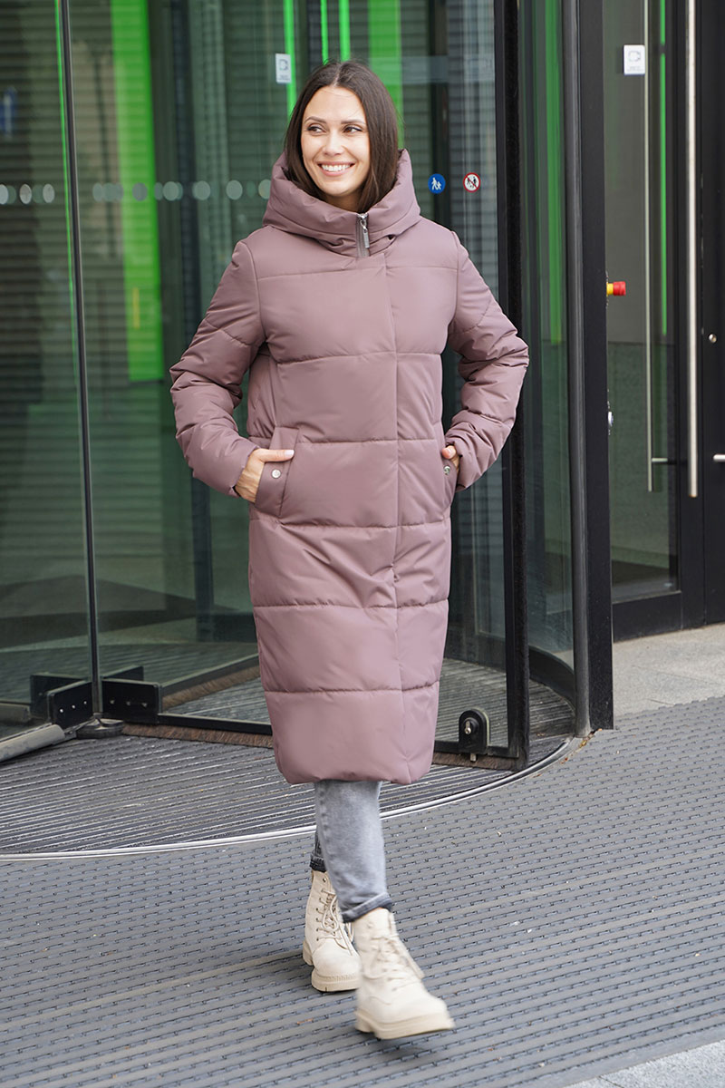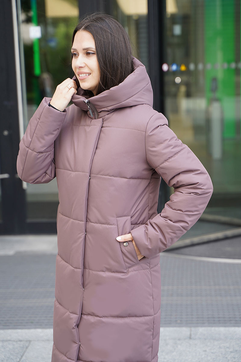 Стильное зимнее пальто, сочетающего функциональность и элегантность. Плотная ткань с горизонтальной стежкой создает интересную текстуру, а утеплитель обеспечит тепло в холодную погоду. Цельнокроенная планка с потайными кнопками и молнией с тракторным звеном придают пальто современный и аккуратный вид. Карманы-листочки застегиваются на видовую кнопку и добавляют нотки изящества и классики. Такое пальто — идеальный выбор для зимних прогулок и городских будней, сочетая практичность с стилем.