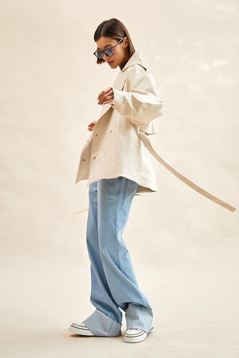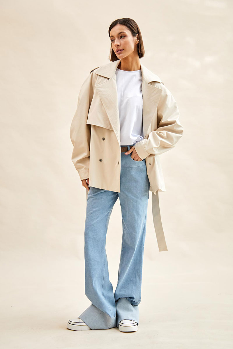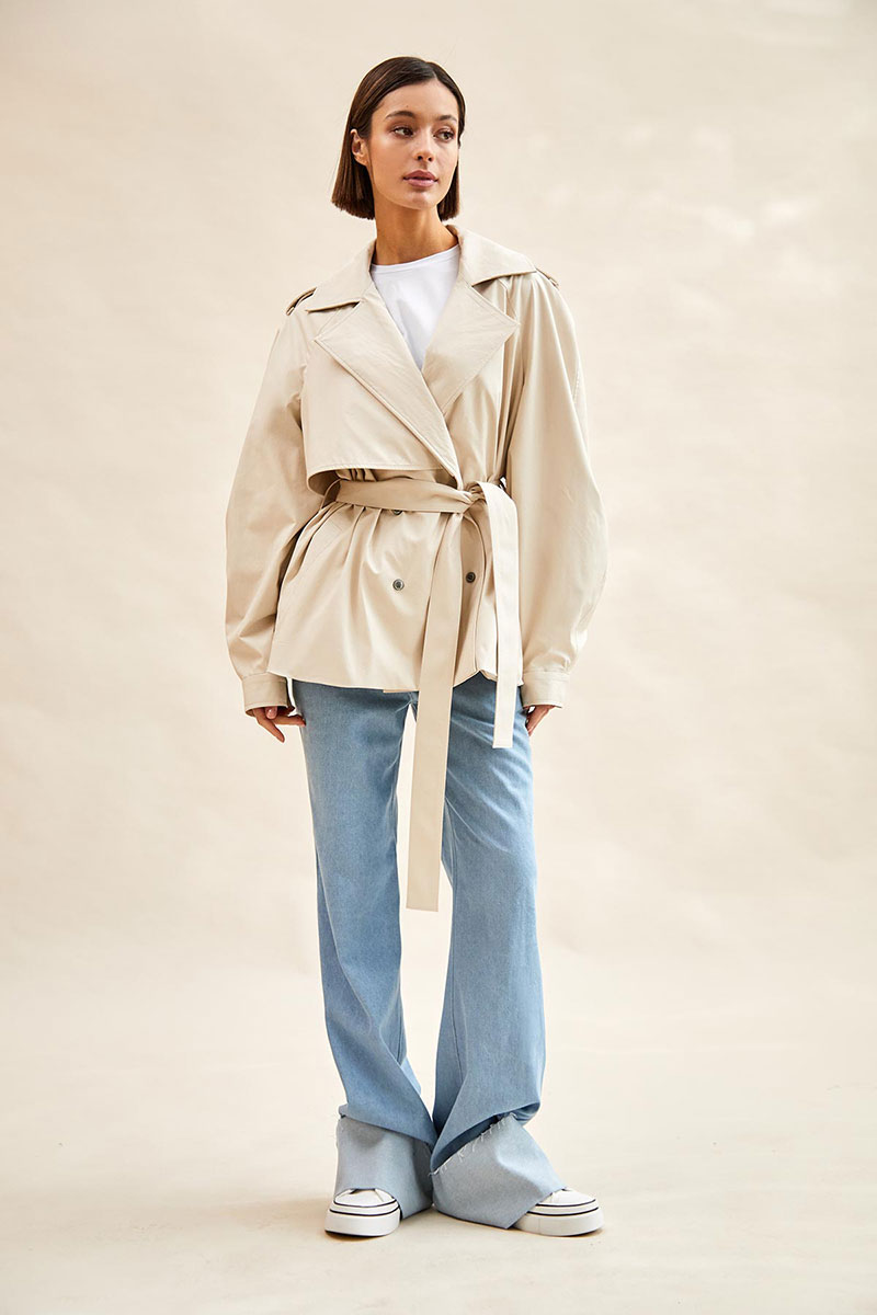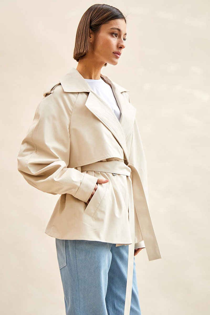 Тренч укороченный из экокожи: