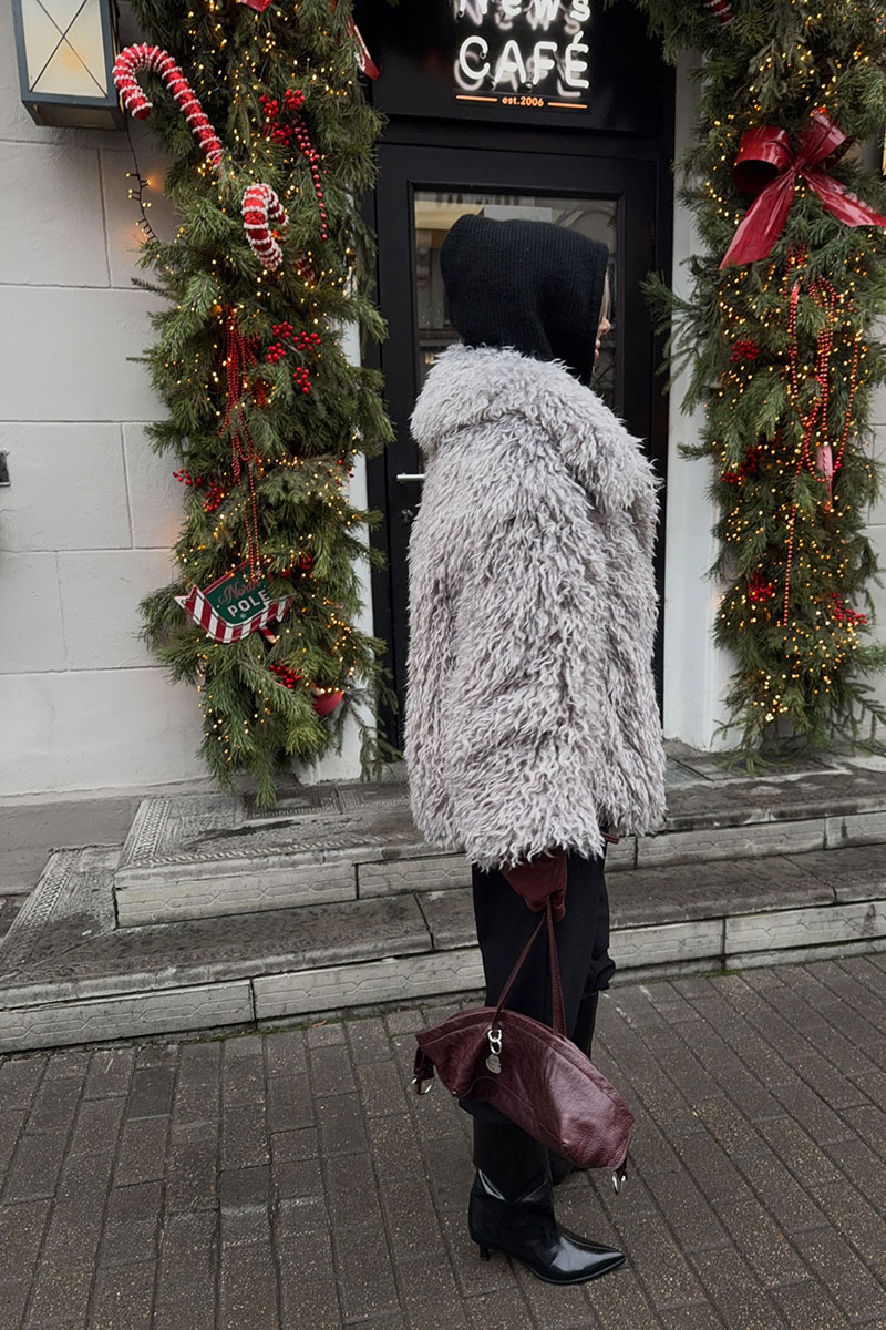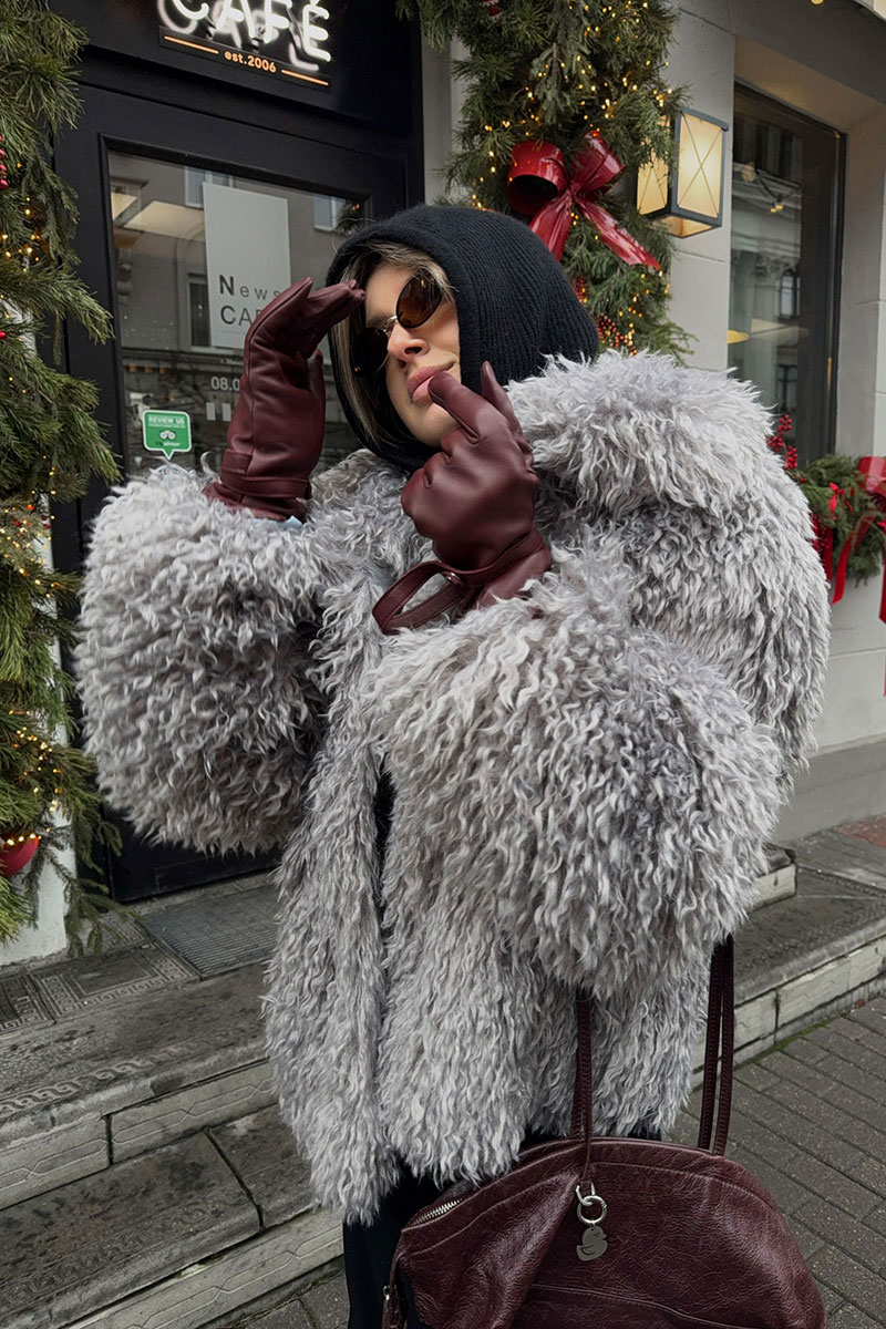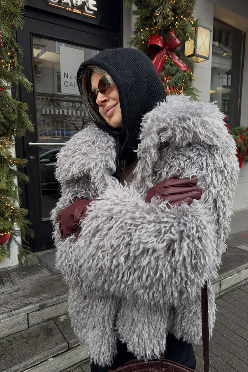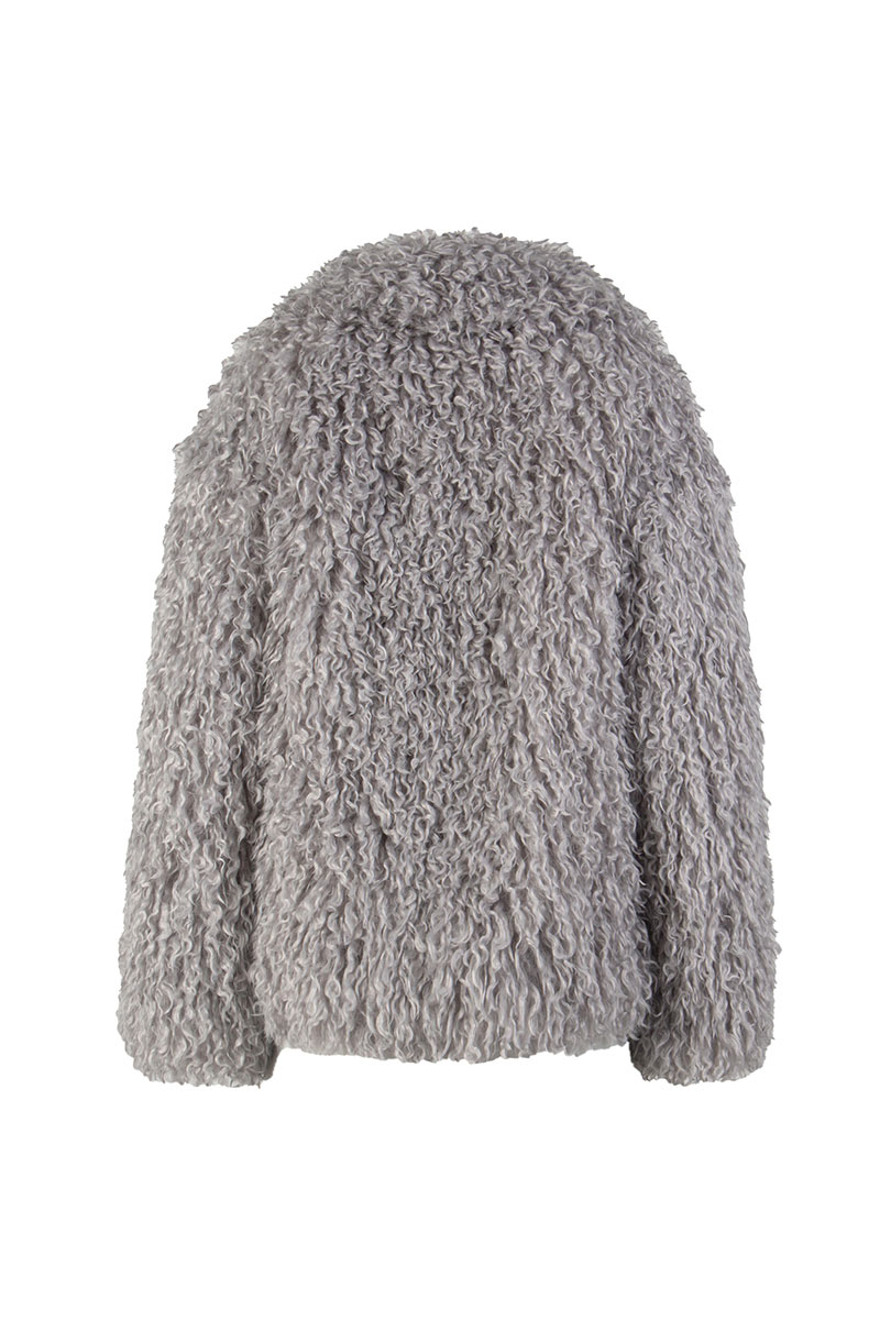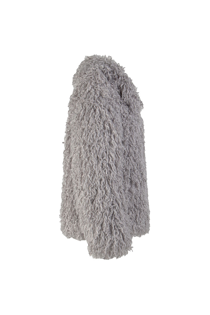 Пальто женское демисезонное из искусственного меха, однобортное, прямого силуэта, длиной до середины бедра, на утепленной подкладке (утеплитель 60г). Застежка на 4 пришивные кнопки. Перед с функциональными карманами «щель». Рукав длинный, одношовный. Воротник и лацкана отложные.