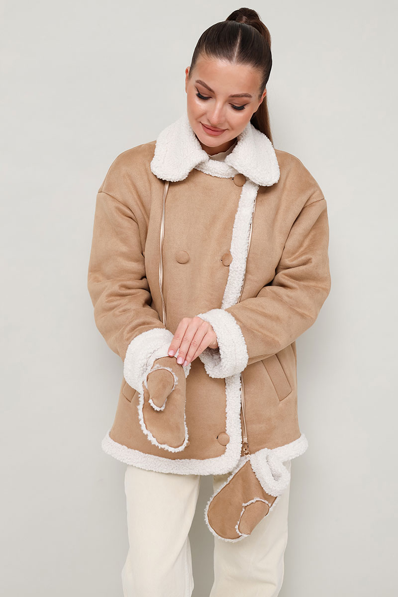 Дубленка декорирована искусственным мехом, который придает образу благородную мягкость и уют.Рукавицы из искусственного меха с отложными манжетами. Стильный и акцентный аксессуар, который гармонично дополнит образ с дубленкой. В комплекте шнур с креплением на карабин.
