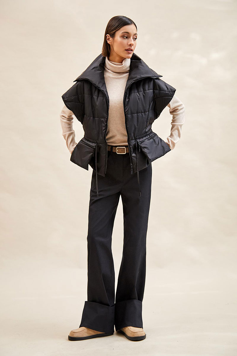 - по талии наружная кулиска с тонкой завязкой для большего приталивания;